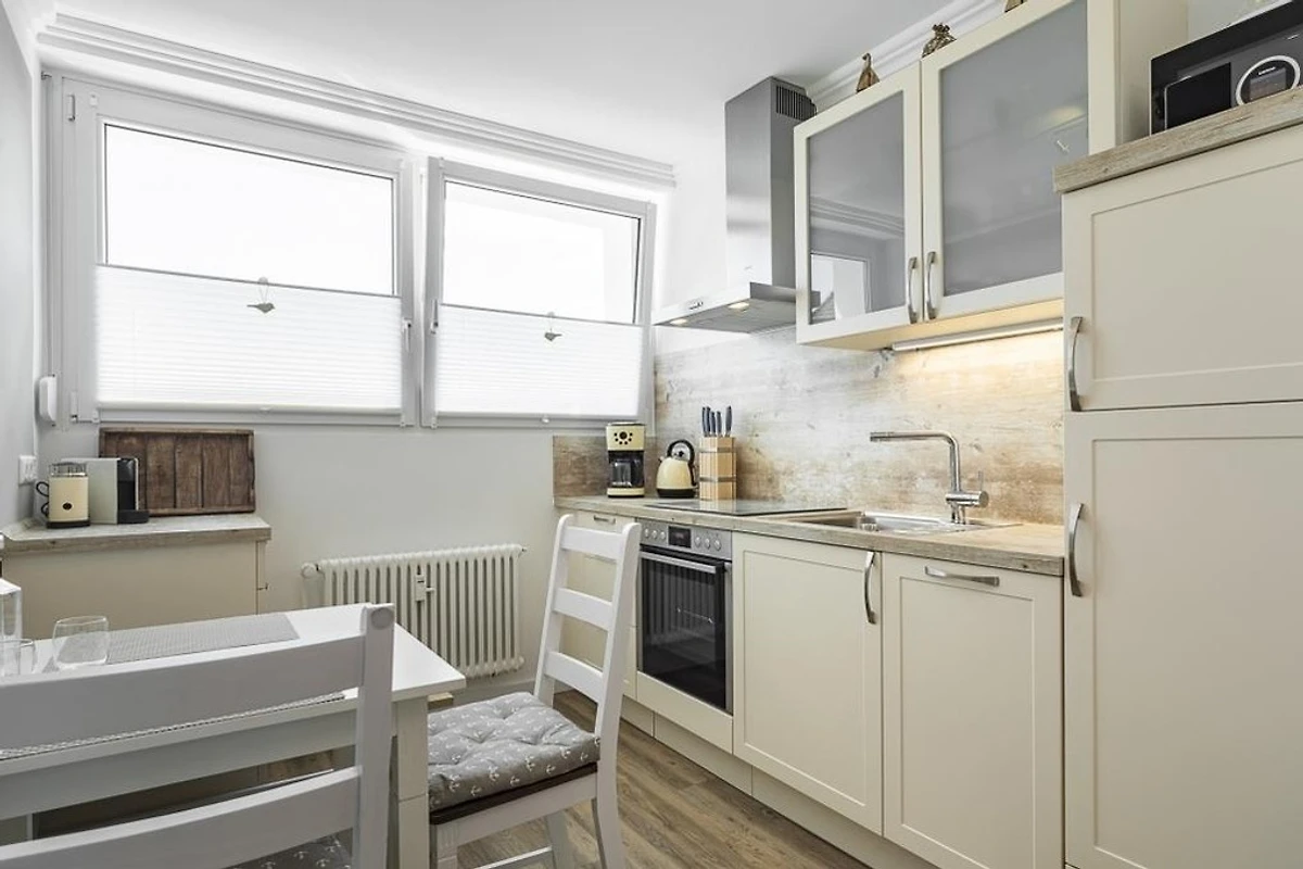 Die Wohnung ist hell und freundlich eingerichtet – Wohlfühlfaktor garantiert. W-LAN sowie ein kostenloser Strandkorb (saisonbedingt, 15.05. - 15.09., gegenüber am Strand) runden diese Ferienwohnung ab. Ein Fahrradkeller befindet sich im Hause, dieser ist nur über die Kellertreppe zu erreichen! Ein Kinderreisebett inkl. Matratze sowie ein Kinderhochstuhl stehen unseren kleinen Gästen kostenlos zur Verfügung.