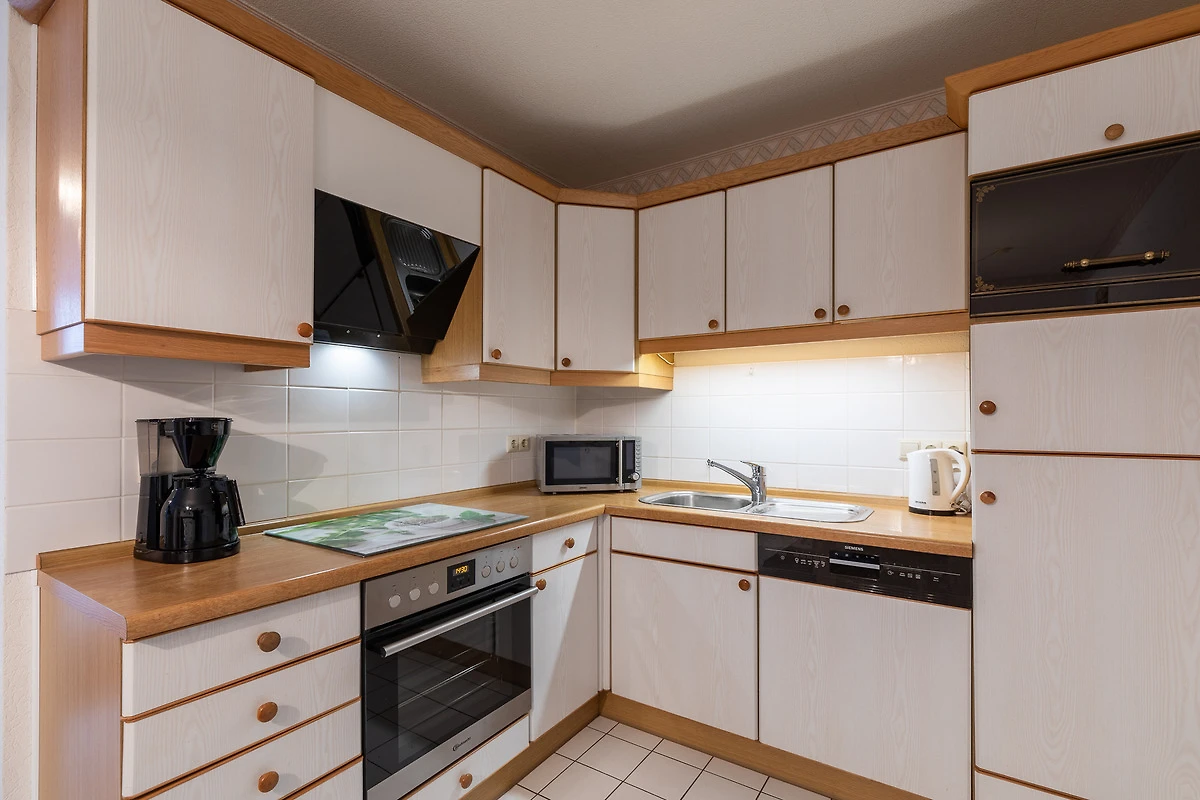 Ferienwohnung mit einer Grösse von ca. 70 m² Wohnfläche ist komplett bis zu 4 Personen ausgestattet. 1 Schlafzimmer mit Doppelbett, Kleiderschrank, TV und Zugang zum Balkon, 1 Schlafzimmer mit Kleiderschrank und einem Bett (1,40mx2,00m), grosses Wohnzimmer mit kompletter Einbauküche (Backofen, Cerankochfeld, Dunstabzugshaube, Mikrowelle Geschirrspüler, Toaster, Wasserkocher, Eierkocher), Essplatz, gemütliche Sofa-Ecke, TV, Mini-Stereo Anlage und direktem Zugang zum Balkon, 1 Bad mit Dusche und separaten WC, Nichtraucherwohnung, keine Haustiere, PKW-Stellplatz direkt am Haus.