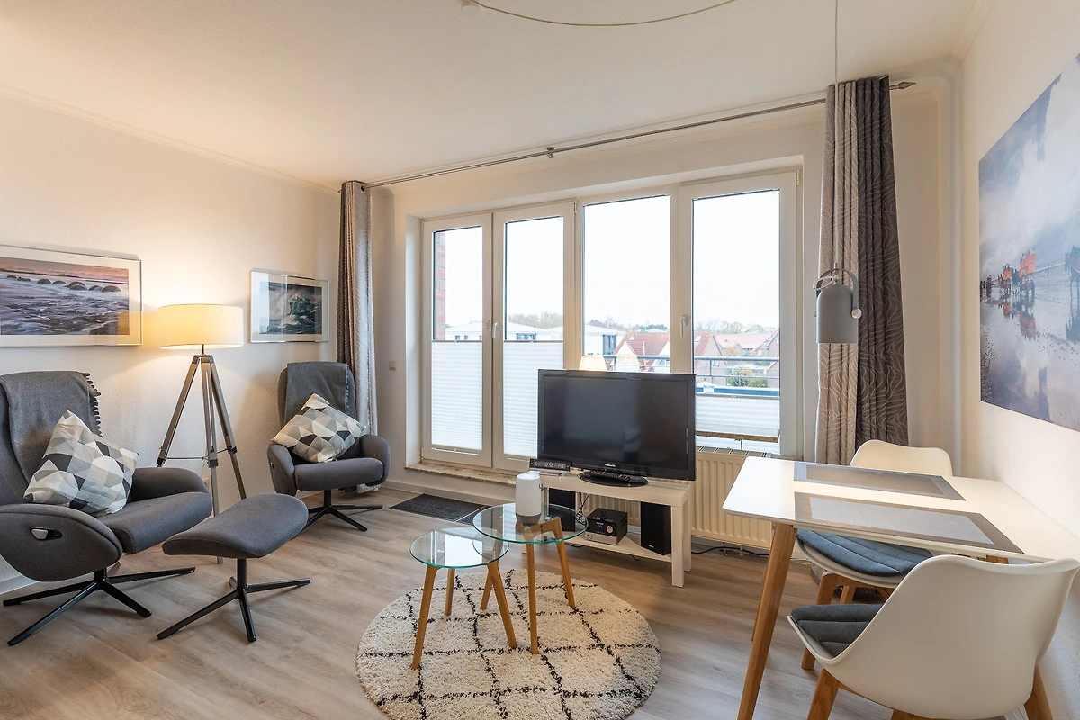 Die Wohnung 447, Lütt Utkiek, im Haus Knechtsand befindet sich in einer kinderfreundlichen Ferienanlage. In nur ca.750 Metern erreichen Sie die Nordsee mit dem Sandstrand und die Promenade.