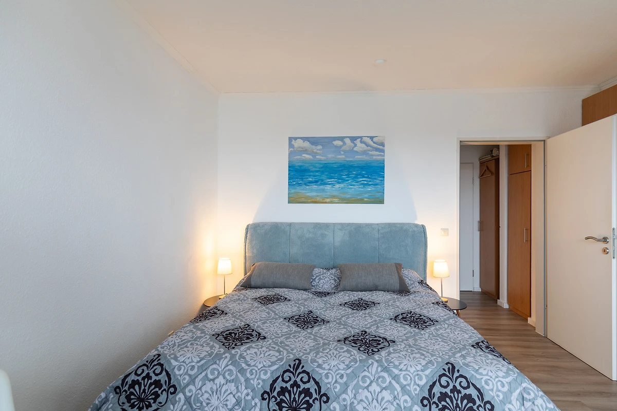 Die Ferienwohnung mit einer Grösse von ca. 35 m² Wohnfläche ist bis zu 2 Personen ausgestattet. 1 Wohnzimmer mit 2 Relax Sessel, Küchenzeile (Cerankochfeld, Backofen, Dunstabzugshaube, Kühlschrank, Wasserkocher, Kaffeemaschine, Nespresso Maschine, Toaster), Esstisch mit 2 Stühlen, direktem Zugang zum Balkon, 1 Doppelbett (160cm x 200cm) mit zwei Einzelmatratzen (80cm x 200cm), Bad mit WC und Dusche, Nichtraucherwohnung, PKW-Stellplatz direkt am Haus.
