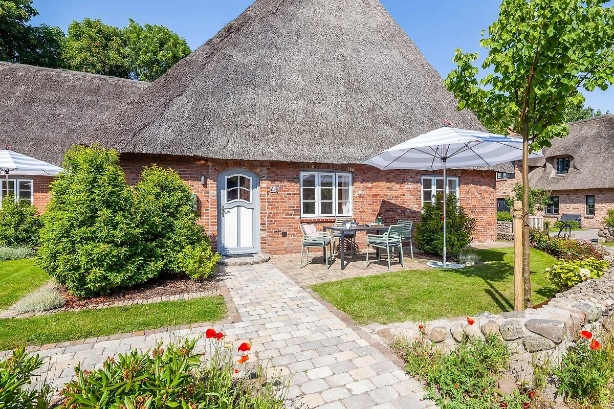 Urlaub unter Reet – geniessen Sie ihre Auszeit in unserem Hus Strungud in idyllischer Lage im Dorfkern von Alkersum. Das historische Friesenhaus wurde bereits Anfang des 18. Jahrhunderts errichtet und zählt damit inselweit zu den ältesten Zeitzeugen.