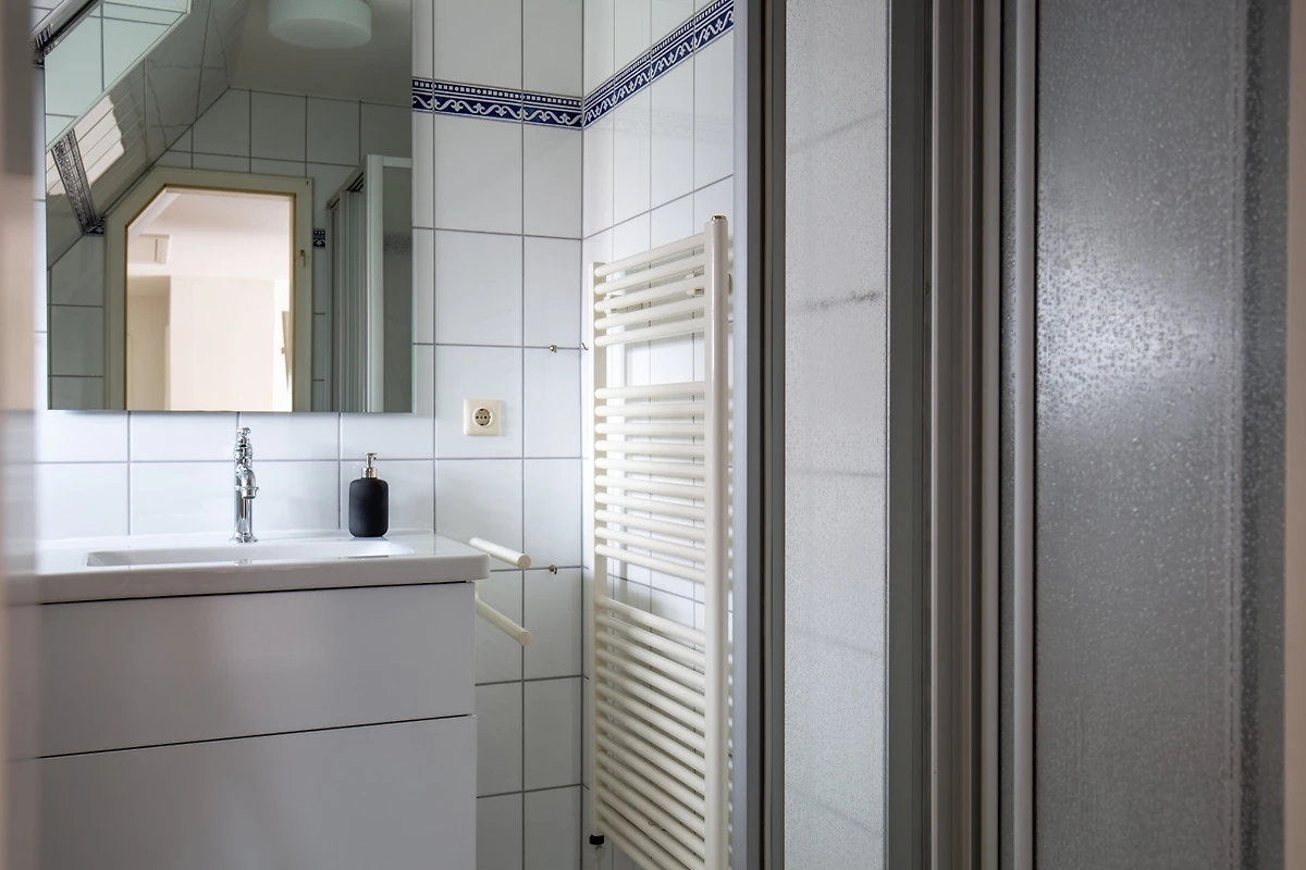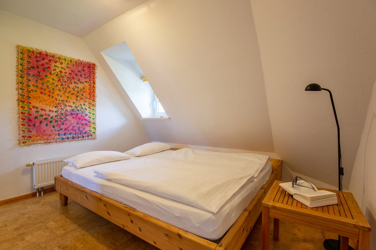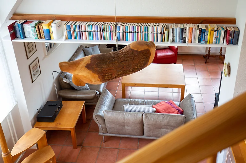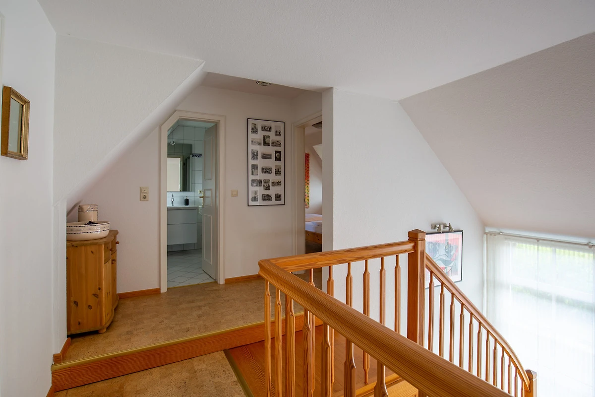 Über eine offene Holztreppe gelangt man in den Galeriebereich mit 3 Schlafzimmern, insgesamt 6 Schlafplätzen und 2 weiteren Bädern.