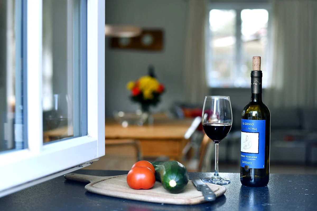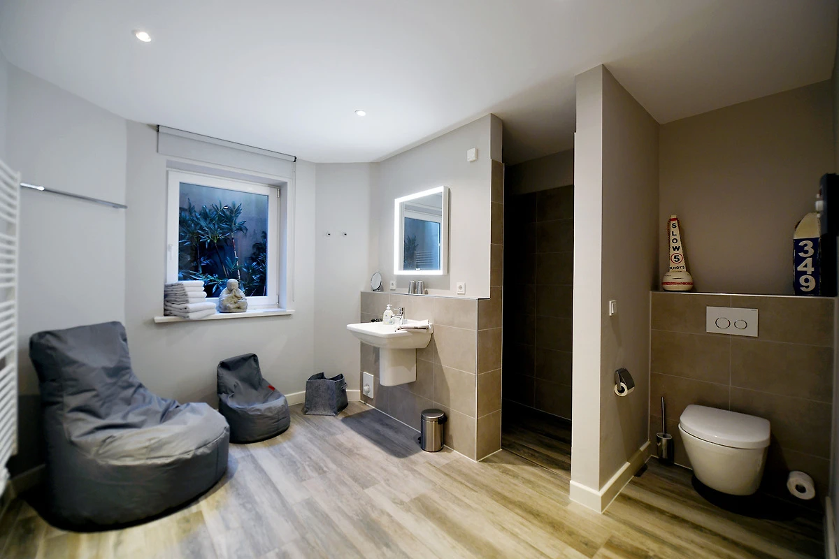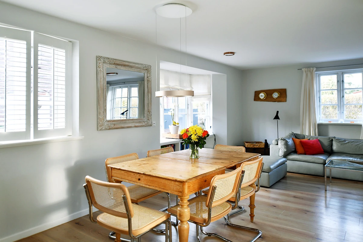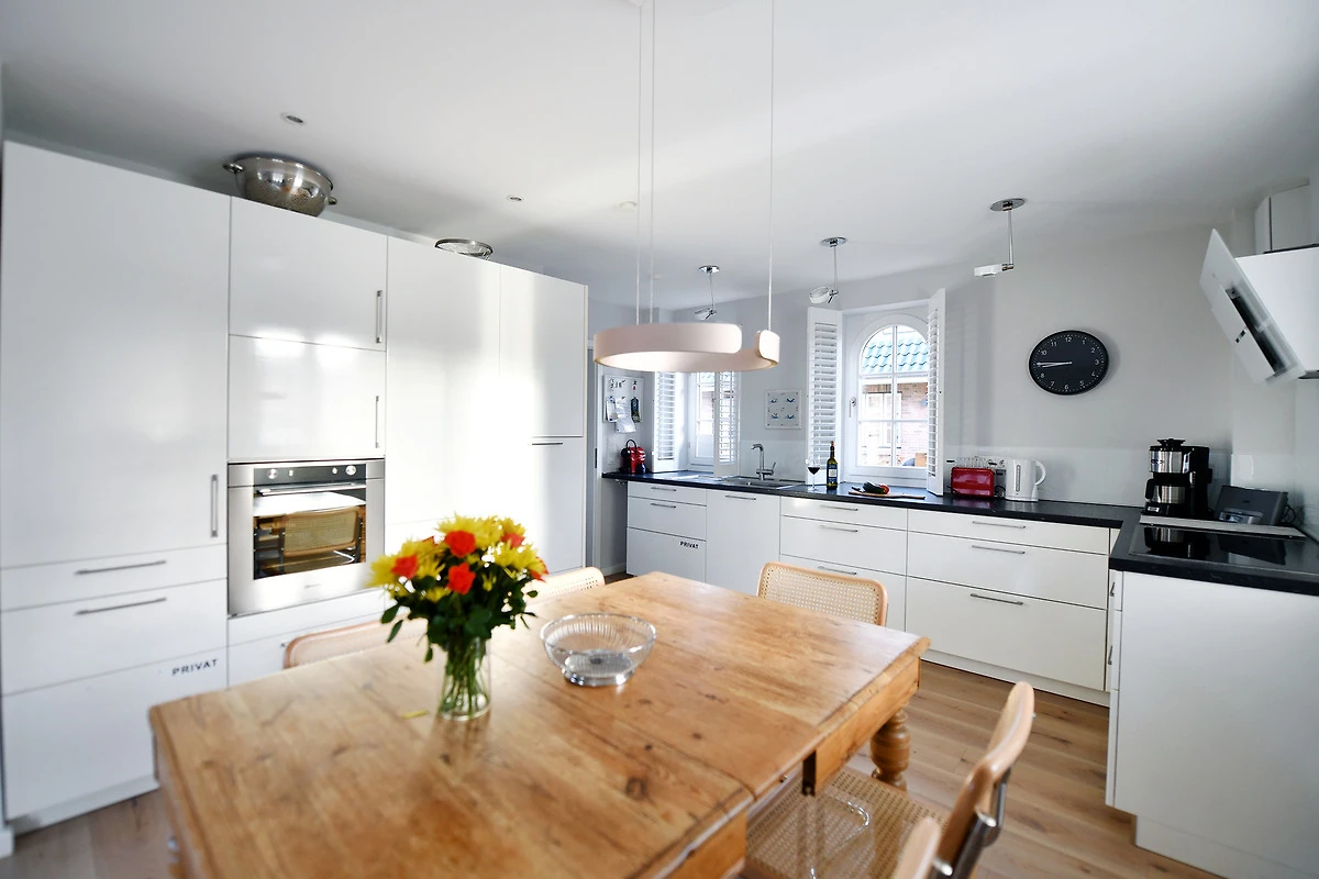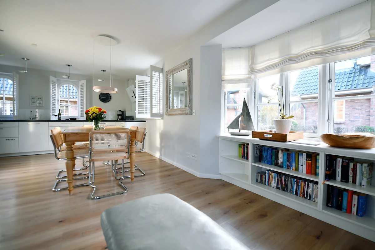 Die Strandhütte ist modern und zeitlos eingerichtet. Sie können sich z. B. auf einen schönen, offenen, kommunikativen Koch- und Essbereich mit einer modernen Einbauküche - mit Induktionsherd - freuen. Dazu auf einen grosszügigen, komfortablen Wohnbereich mit einem antiken Kaminofen. Und auf bequeme Boxsprint-Betten in den beiden Schlafzimmern im OG. Ausserdem erwarten Sie in der Strandhütte: Insgesamt 3 elegante Duschbäder, eine Wellness-Oase im UG sowie zwei sonnige Terrassen mit einem Luxus-Strandkorb und Garten. Wallbox am Parkplatz.
