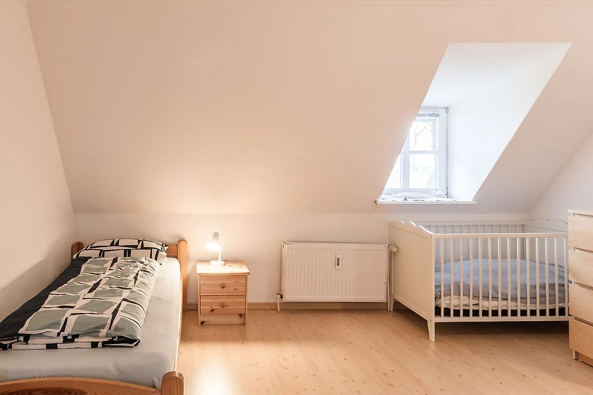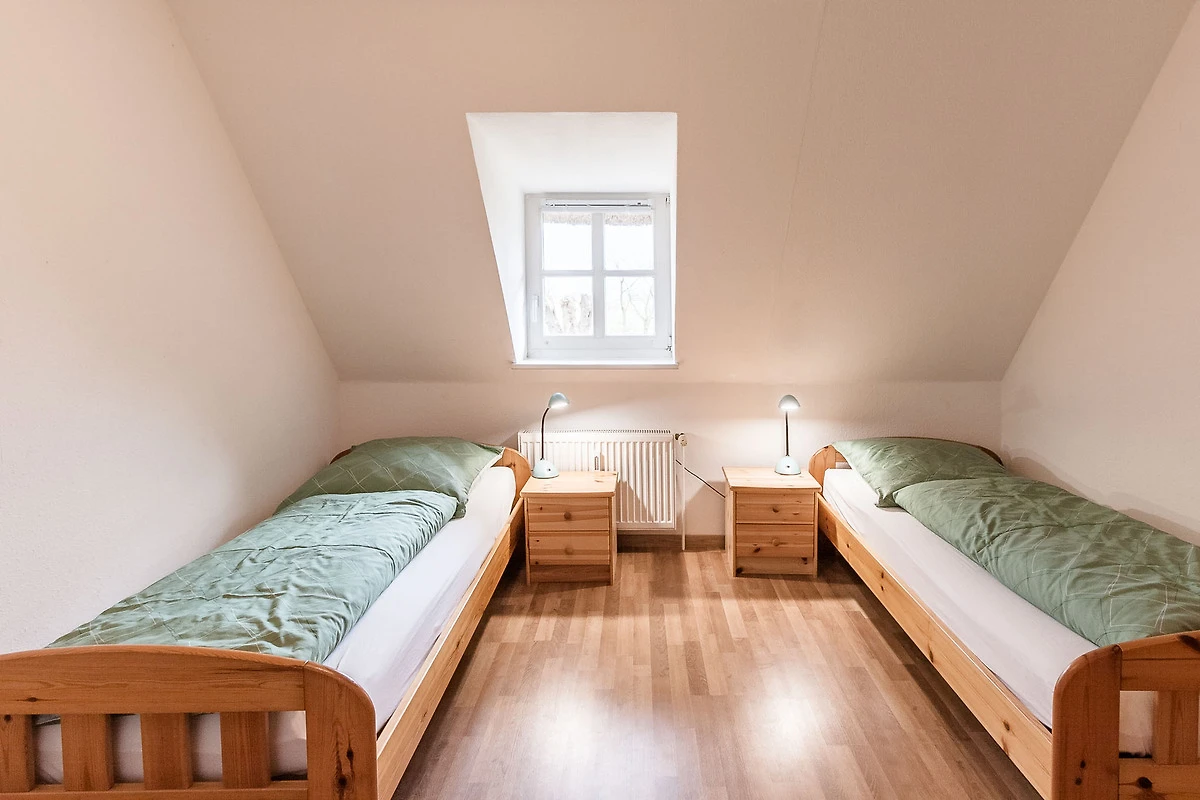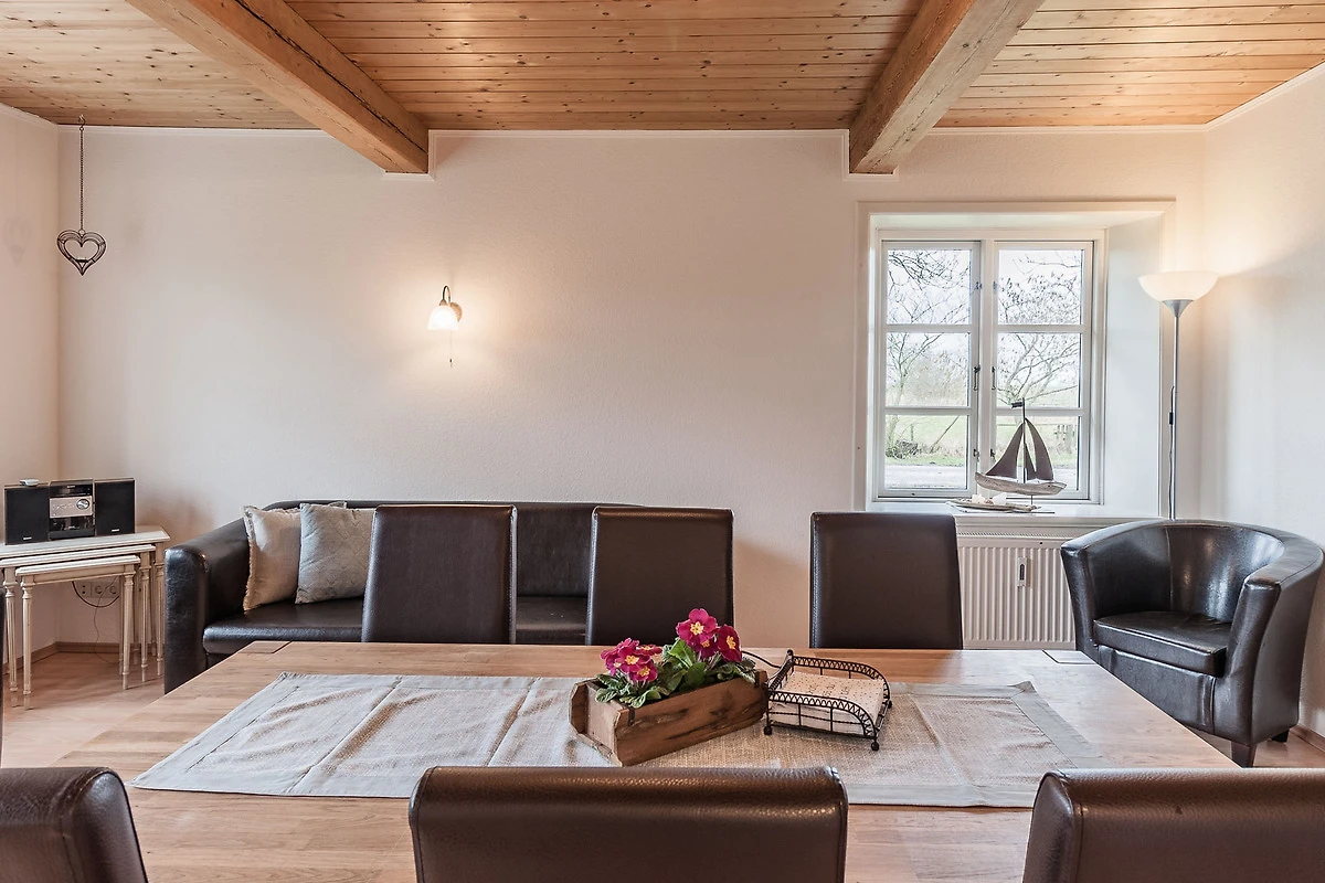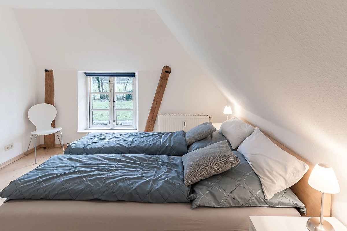Das Eider-Domizil Nr. 2 ist in dem historischen Reethaus "Machta" untergebracht und verfügt über einen gemeinsamen Eingangs- und Aufenthaltsbereich mit Kaminofen und einer grosszügig möblierten Terrasse. Die Ferienwohnung erstreckt sich über 145 m² und zwei Etagen. Sie bietet vier separate Schlafzimmer (2x Doppelbett, 4x Einzelbetten und 2 Babybetten) und kann bis zu 8 Erwachsene und 2 Babys beherbergen.