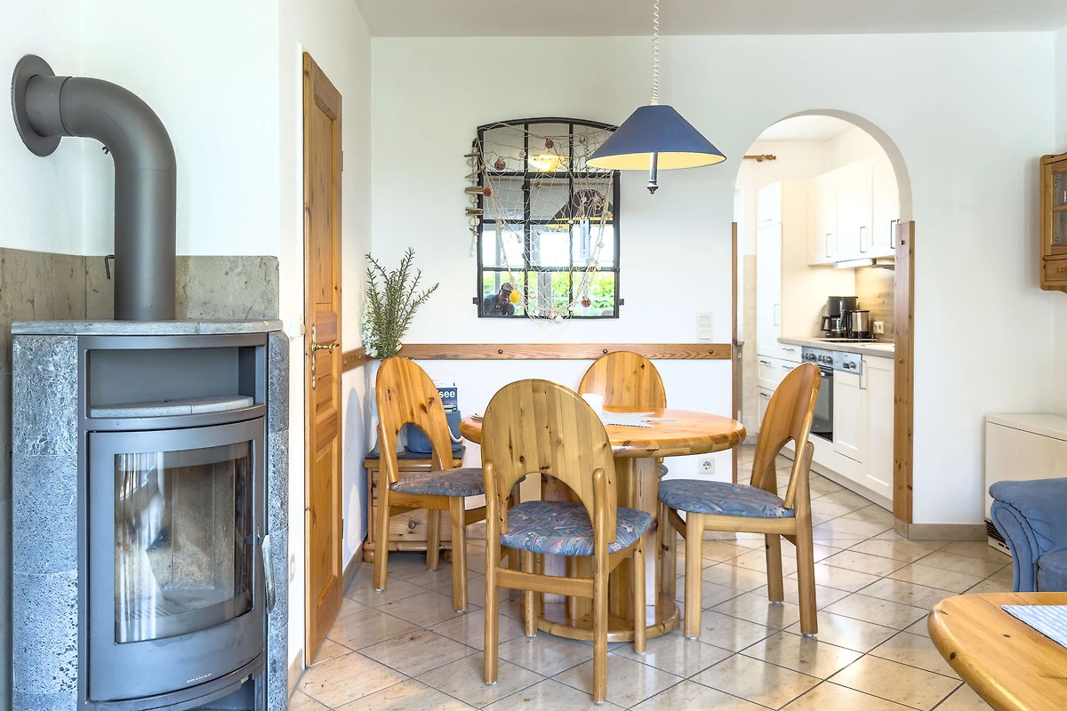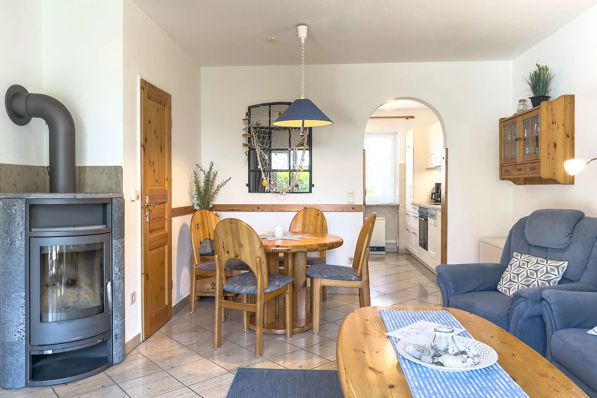 Wenige Gehminuten von Deich und Strand entfernt erwartet Sie unser Ferienhaus im Friesenstil mit einem grossen Wohn-/Essbereich, Küche, Duschbad, Gäste-WC und 2 Schlafzimmern für 4-5 Personen ausreichend Platz. Im Wohnzimmer lädt eine bequeme Sitzgarnitur zum Verweilen am Kamin ein. Das Holz ist nicht im Preis enthalten.+