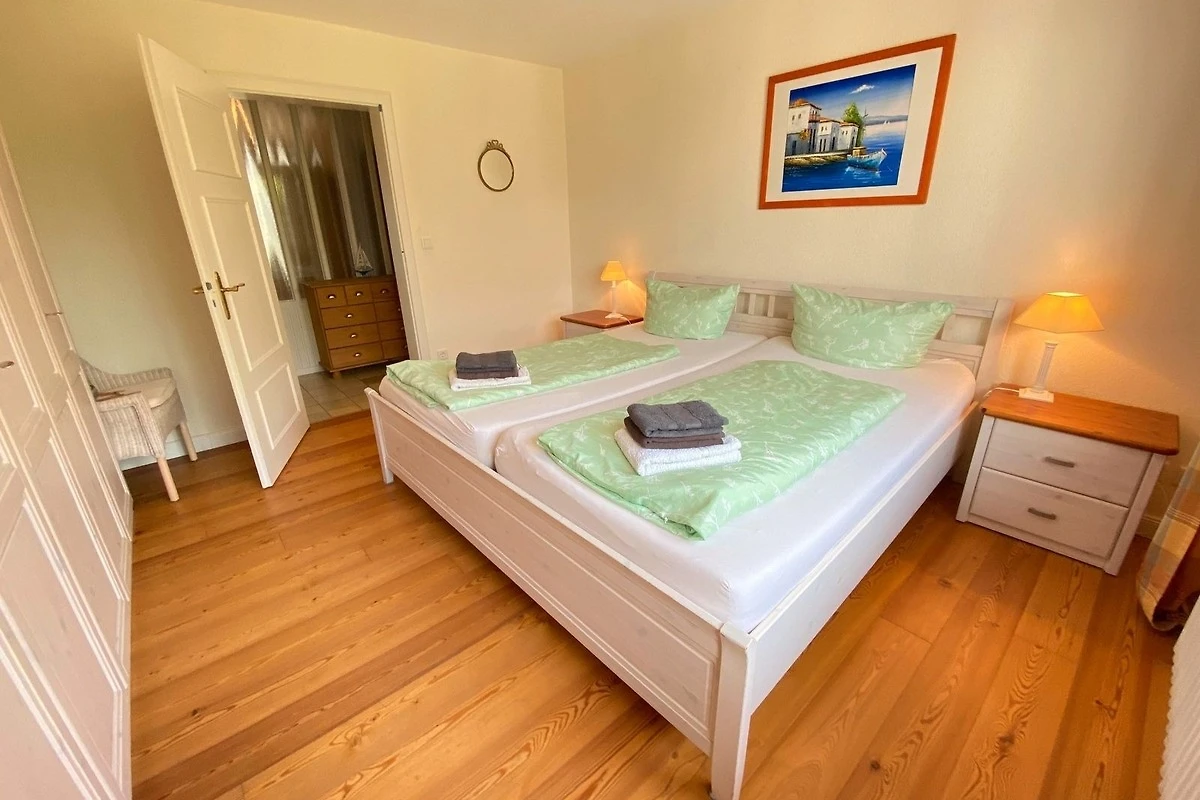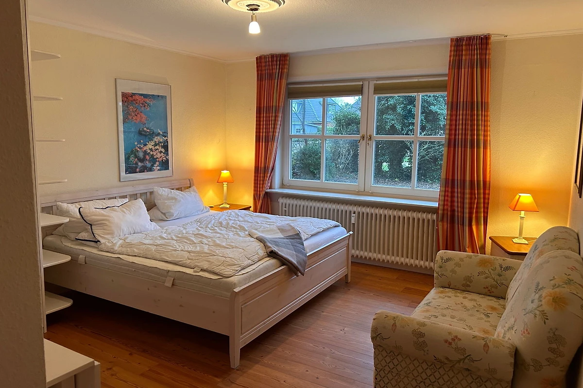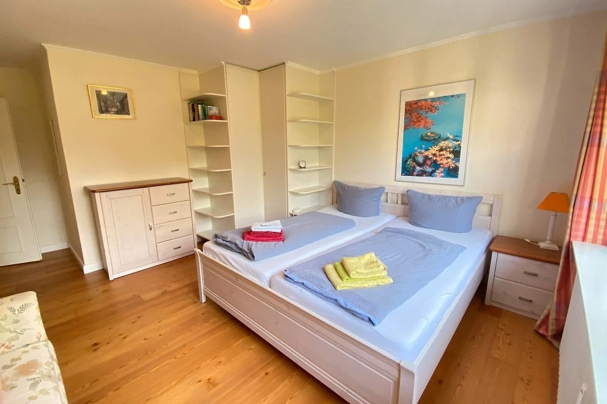Trotz der sehr ruhigen Lage befindet sich die Gartensuite angenehm zentral: Strand, Promenade und das Zentrum von Wyk sind in wenigen Minuten erreichbar. Einkaufsmöglichkeiten, Bäckereien und Restaurants liegen ganz in der Nähe – ideal für einen Urlaub ohne lange Wege. Auch Fahrradfahrer sind willkommen, ein Stellplatz ist vorhanden. WLAN steht selbstverständlich zur Verfügung, und auch Ihr Haustier darf Sie hier gern begleiten.