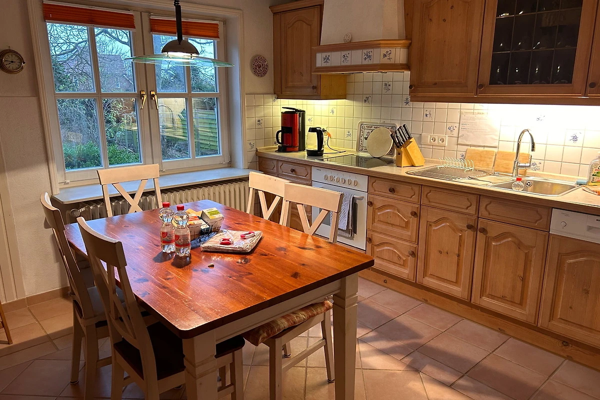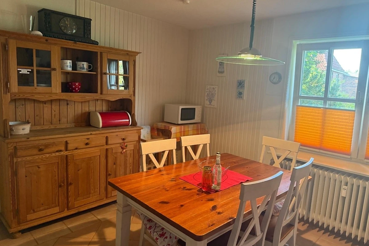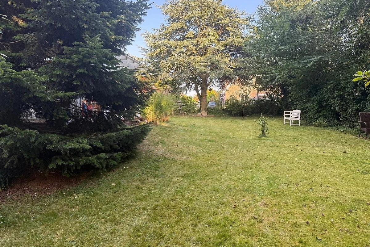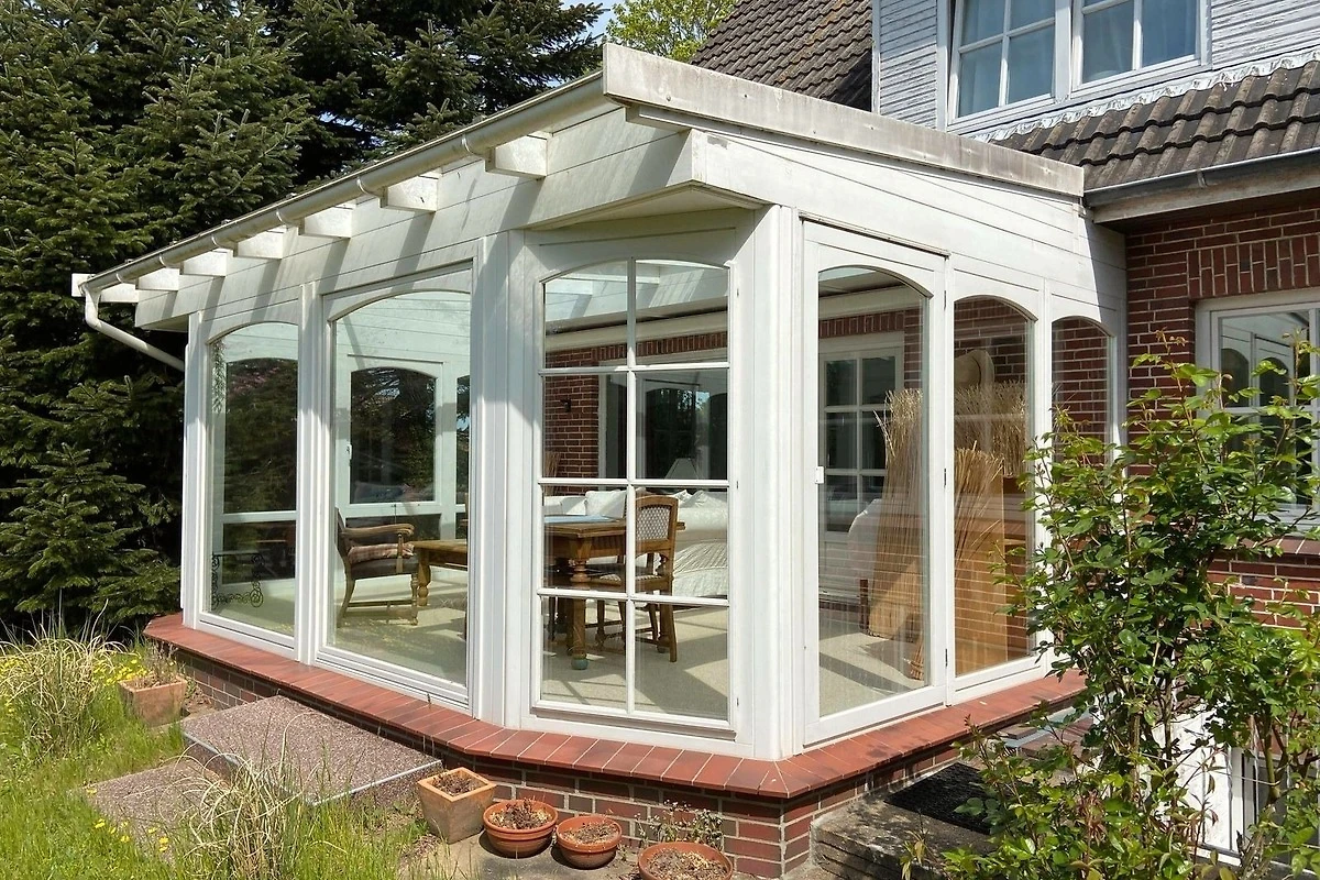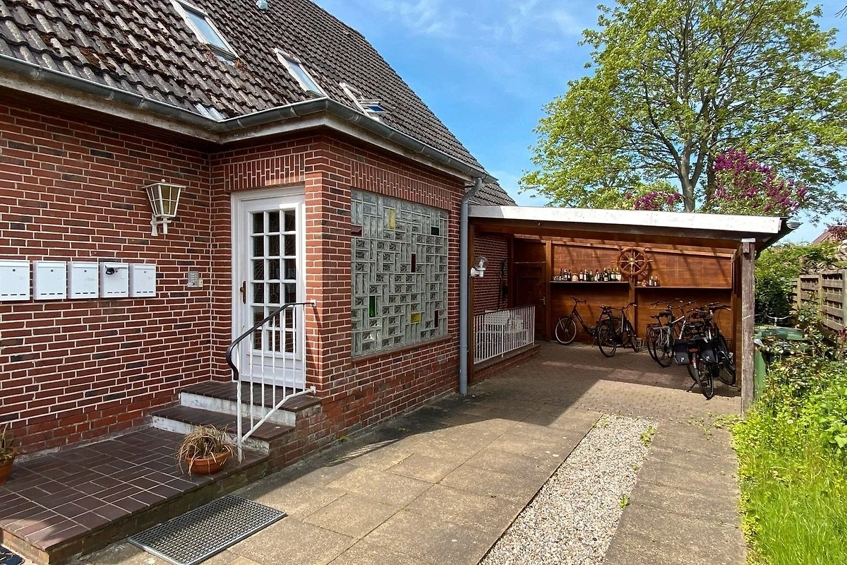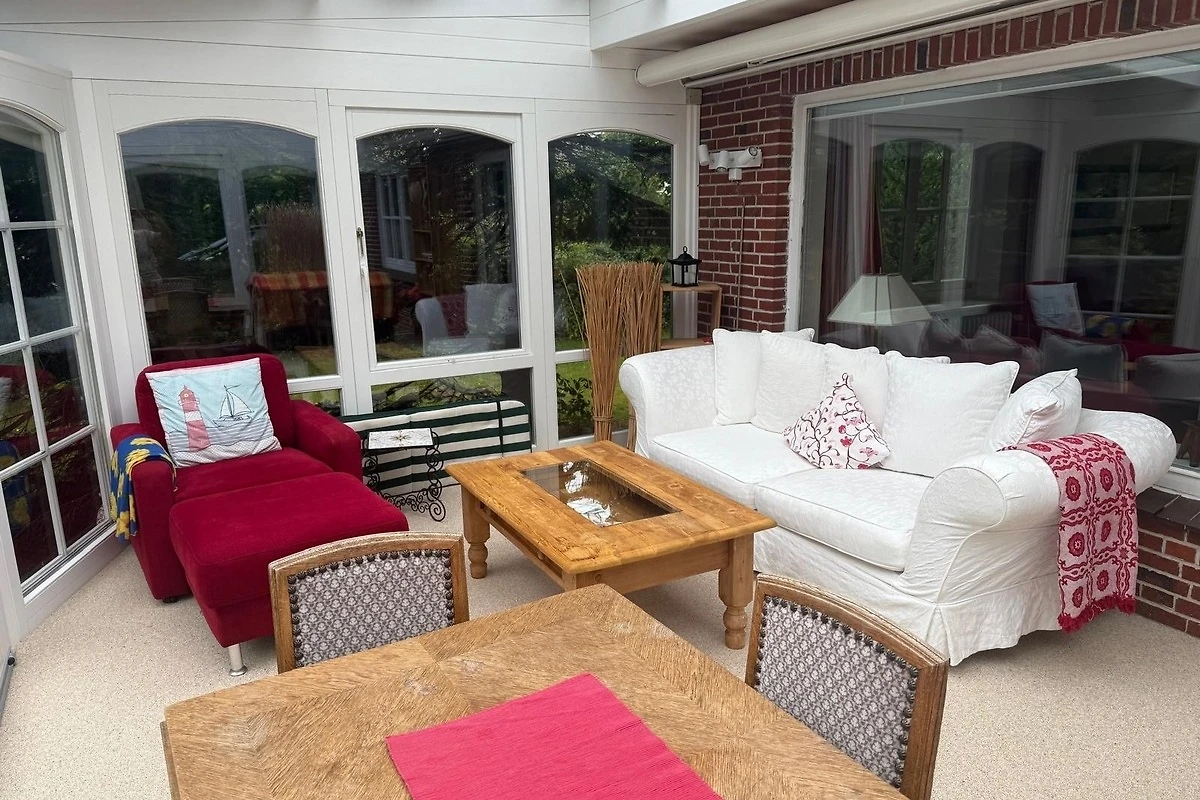 Herzstück der Wohnung ist der helle Wintergarten mit direktem Zugang zum naturbelassenen Garten. Hier beginnt der Tag mit einem Kaffee im Grünen und endet mit entspannten Stunden inmitten frischer Nordseeluft. Der Garten lädt zu Ruhe, Entschleunigung und kleinen Auszeiten ein.