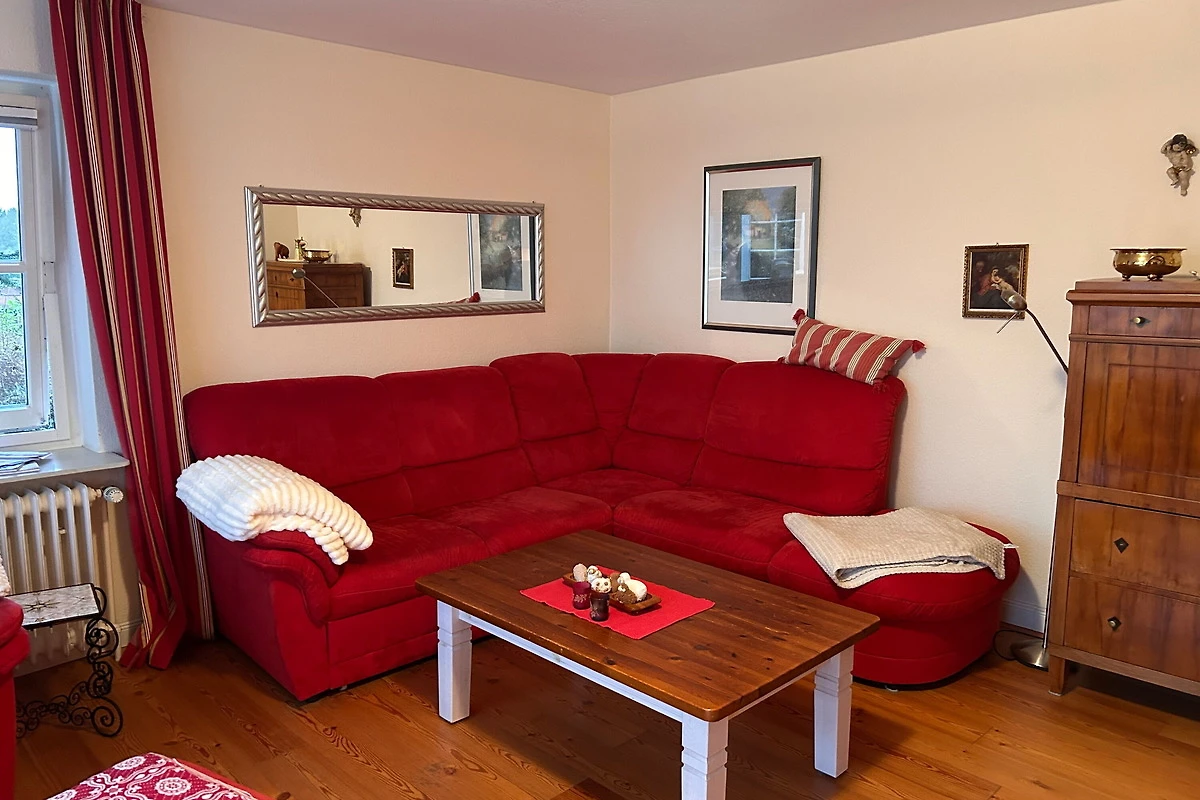 Besonders gemütlich präsentiert sich die grosse Wohnküche, die viel Raum für gemeinsame Kochabende, lange Gespräche und entspanntes Beisammensein bietet. Die zwei grosszügigen Schlafzimmer überzeugen mit ihrem Blick ins Grüne und sorgen für erholsame Nächte in ruhiger Umgebung. Das schöne Badezimmer rundet den Wohnkomfort ab.