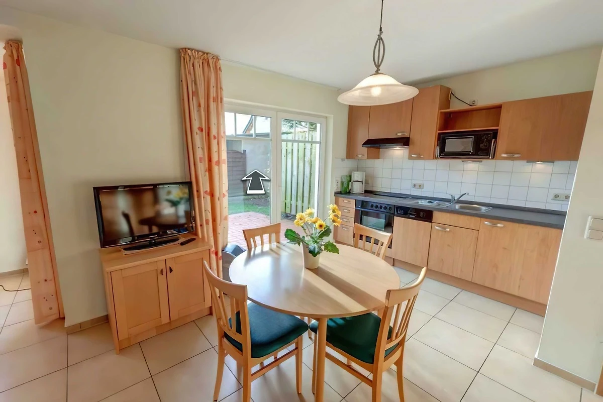 Die Kategorie I Wohnungen befinden sich im Erdgeschoss eines Hauses. Sie bieten eine Fläche von 64 m² und verfügen über zwei separate Schlafzimmer, davon eins mit einem Doppelbett und eins mit zwei Einzelbetten. Im Wohnzimmer gibt es zudem eine Schlafcouch, wodurch insgesamt ausreichend Platz für 4-5 Personen geboten wird. Beide Wohnungen haben eine Terrasse mit Südwest Ausrichtung. Ein kostenloser PKW-Stellplatz und die Nutzung von W-LAN sind inbegriffen. Im Haus gibt es auch einen Hauswirtschaftsraum, in dem gegen Gebühr eine Waschmaschine und ein Trockner zur Verfügung stehen.