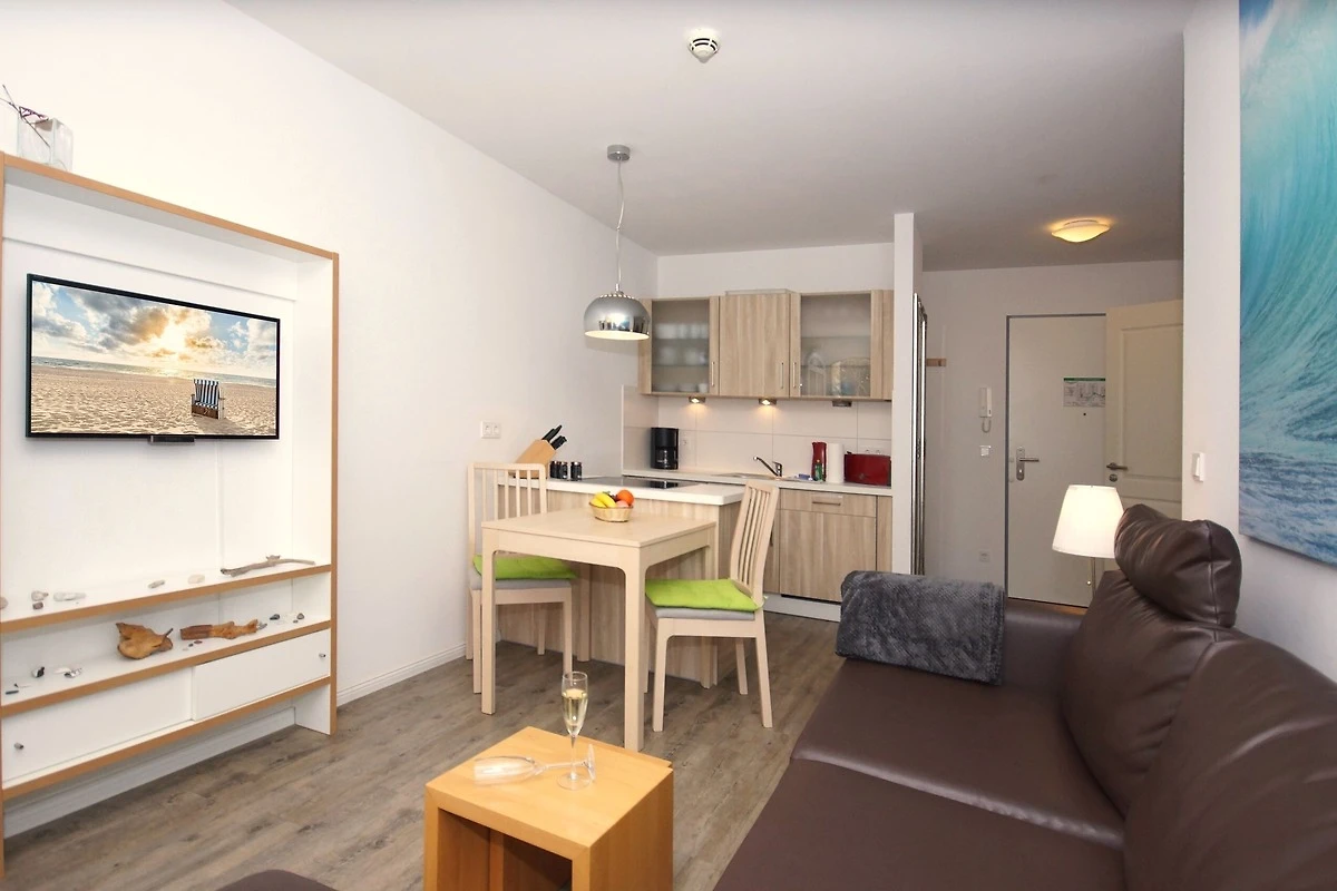 Die Ausstattung der Ferienwohnung umfasst unter anderem eine Fahrradunterstellmöglichkeit sowie einen Parkplatz für Ihr Auto. Ausserdem steht Ihnen WLAN/Internet zur Verfügung, damit Sie auch im Urlaub immer online bleiben können. Für die Zubereitung von Kaffee steht eine klassische Filterkaffeemaschine bereit. Zur Entspannung lädt die zur Wohnung gehörende Sauna ein. Auch ein Geschirrspüler ist vorhanden, um Ihnen den Aufenthalt so angenehm wie möglich zu gestalten. Die Wohnung ist komplett rauchfrei und ein Hund darf gegen Aufpreis gerne mitgebracht werden. Geniessen Sie die frische Luft auf dem Balkon und nutzen Sie auch das Schwimmbecken im Haus, um an heissen Tagen eine Abkühlung zu finden. Für zusätzliche Entspannung steht Ihnen auch eine Gemeinschaftssauna zur Verfügung.
