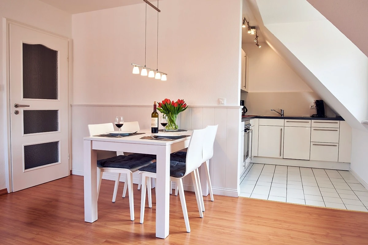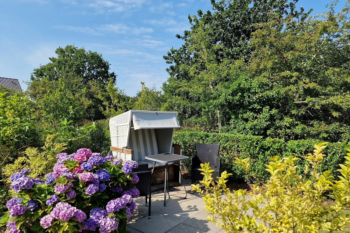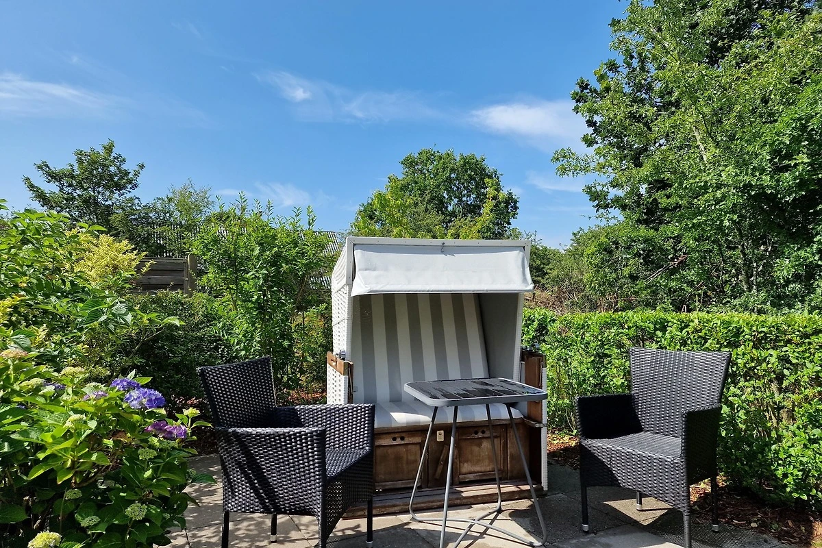 Die Wohnung befindet sich im Obergeschoss und verfügt über eine Terrasse mit Strandkorb und Blick ins Grüne. Im Wohnbereich gibt es eine voll ausgestattete Küche, eine gemütliche Schlafcouch, ein Duschbad und 1 Schlafzimmer. Zur Wohnung gehört ein PKW-Stellplatz, Ihre Fahrräder können Sie direkt am Haus abstellen.