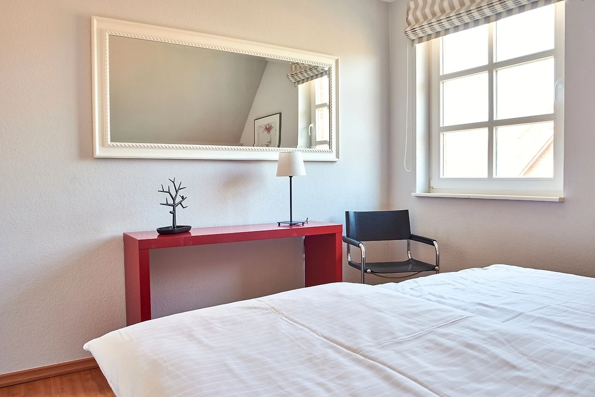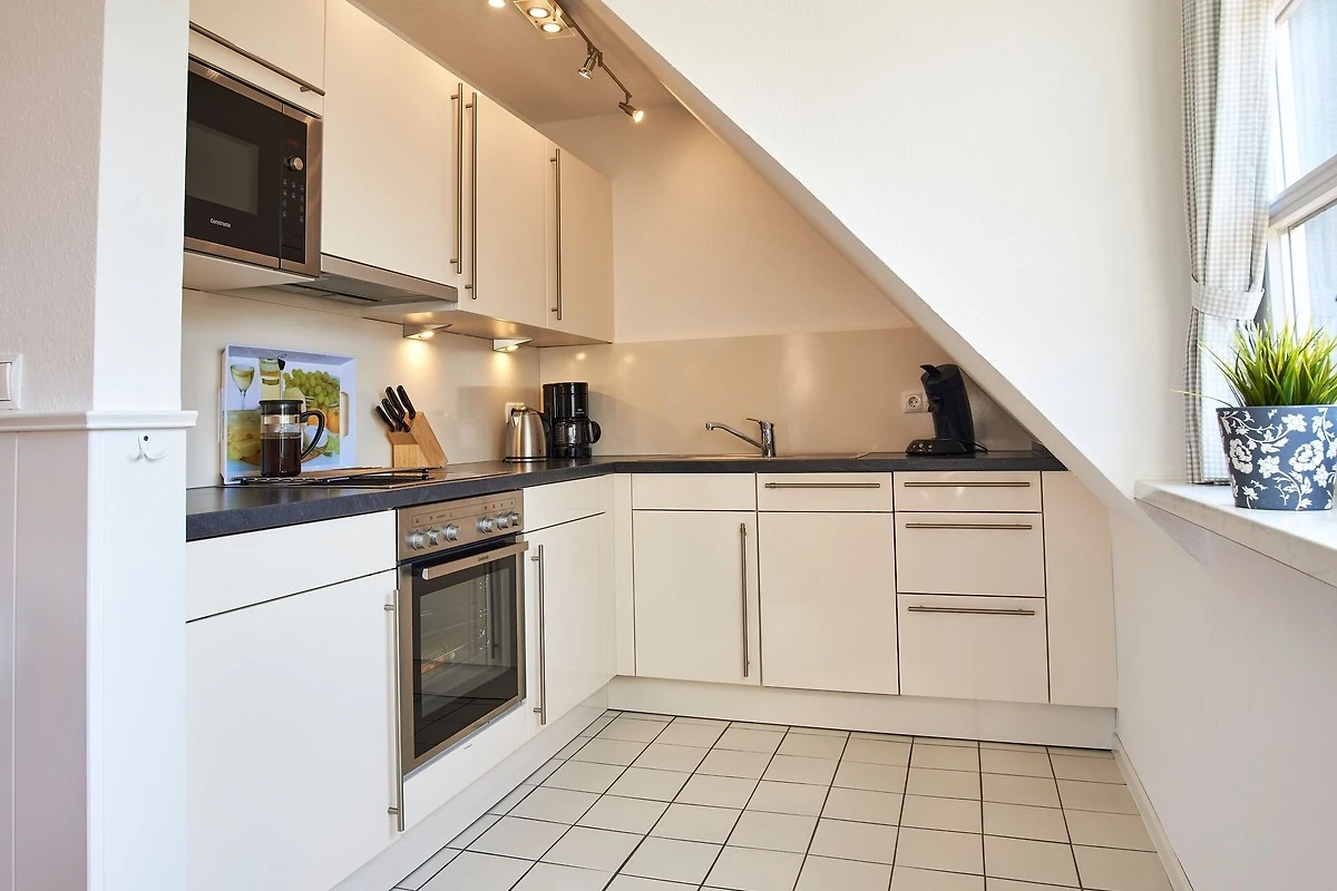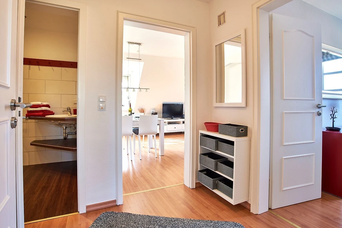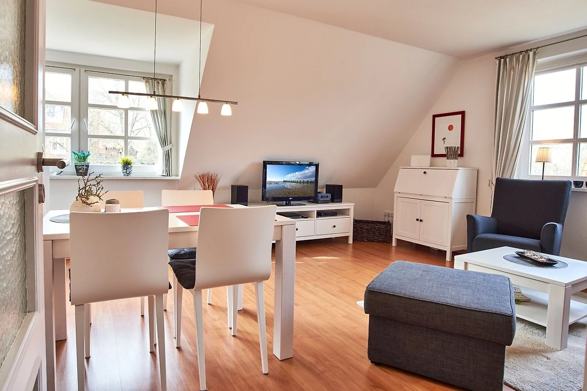 Die Wohnung befindet sich im Obergeschoss und verfügt über eine Terrasse mit Strandkorb und Blick ins Grüne. Im Wohnbereich gibt es eine voll ausgestattete Küche, eine gemütliche Schlafcouch, ein Duschbad und 1 Schlafzimmer. Zur Wohnung gehört ein PKW-Stellplatz, Ihre Fahrräder können Sie direkt am Haus abstellen.