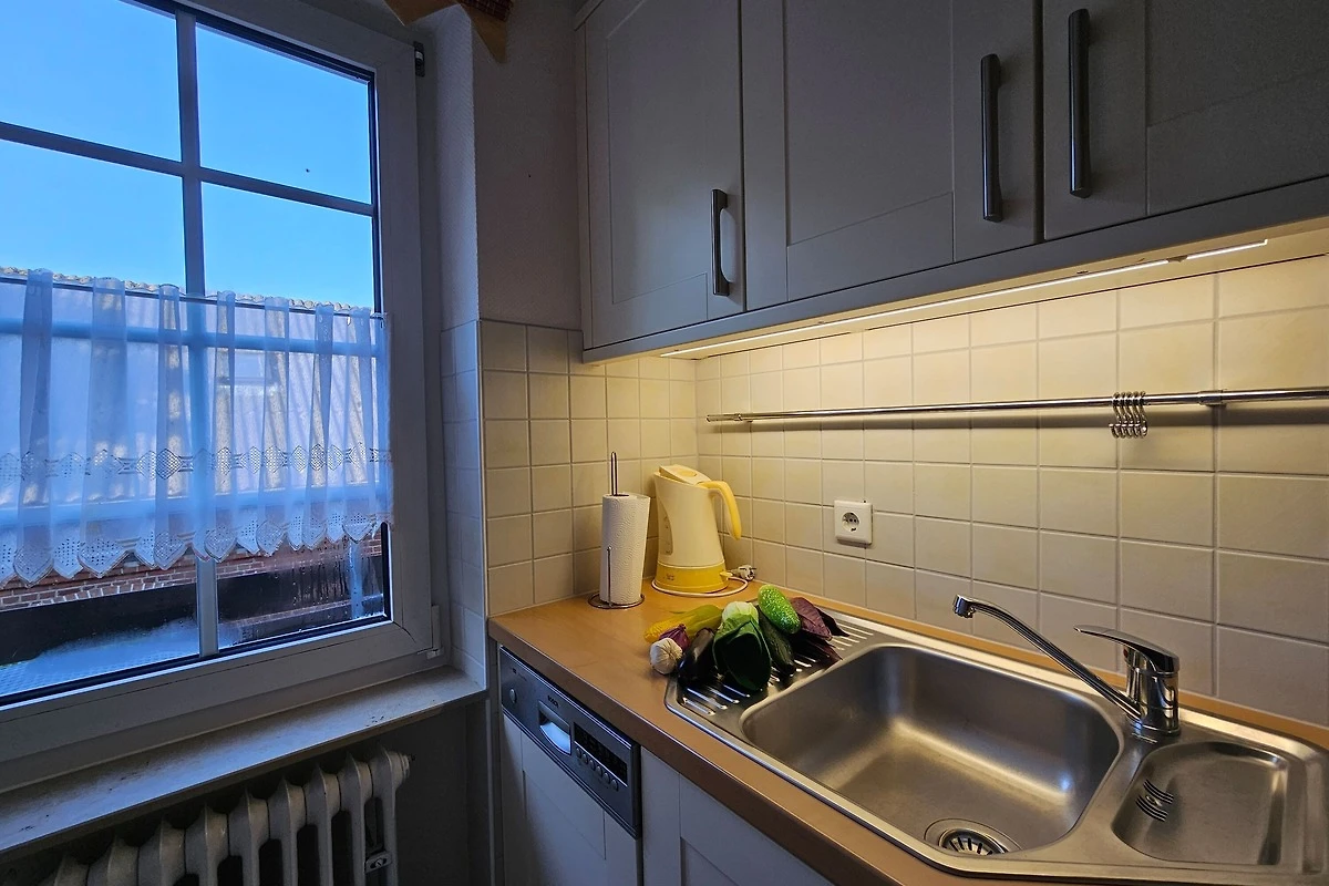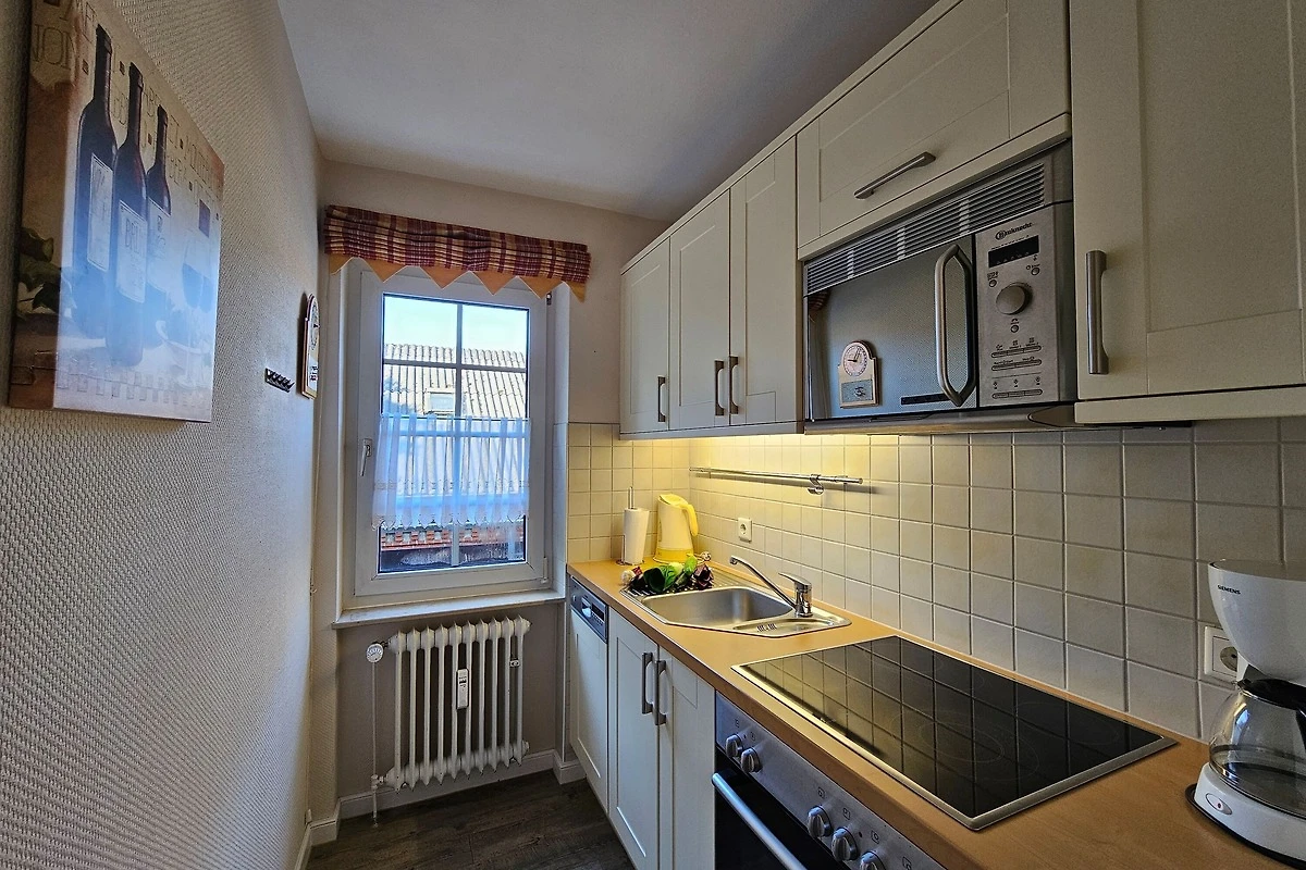 Die Wohnung befindet sich im Obergeschoss und verfügt über 2 Balkone (zur Friedrichstrasse und seitlich) mit Blick zur Mühle. Im Wohnbereich gibt es eine gemütliche Couch, ein Duschbad und 1 Schlafzimmer. Zur Wohnung gehört ein PKW-Stellplatz hinter dem Haus (etwas beengte Parksituation), Ihre Fahrräder können Sie hinter dem Haus abstellen.