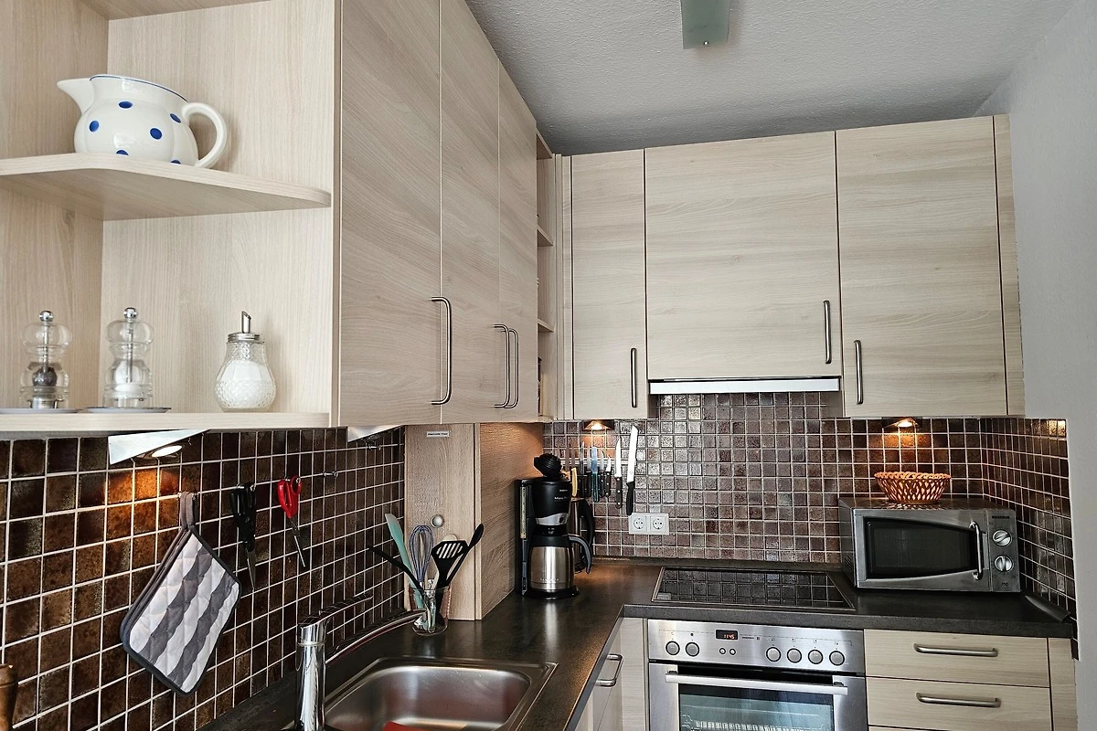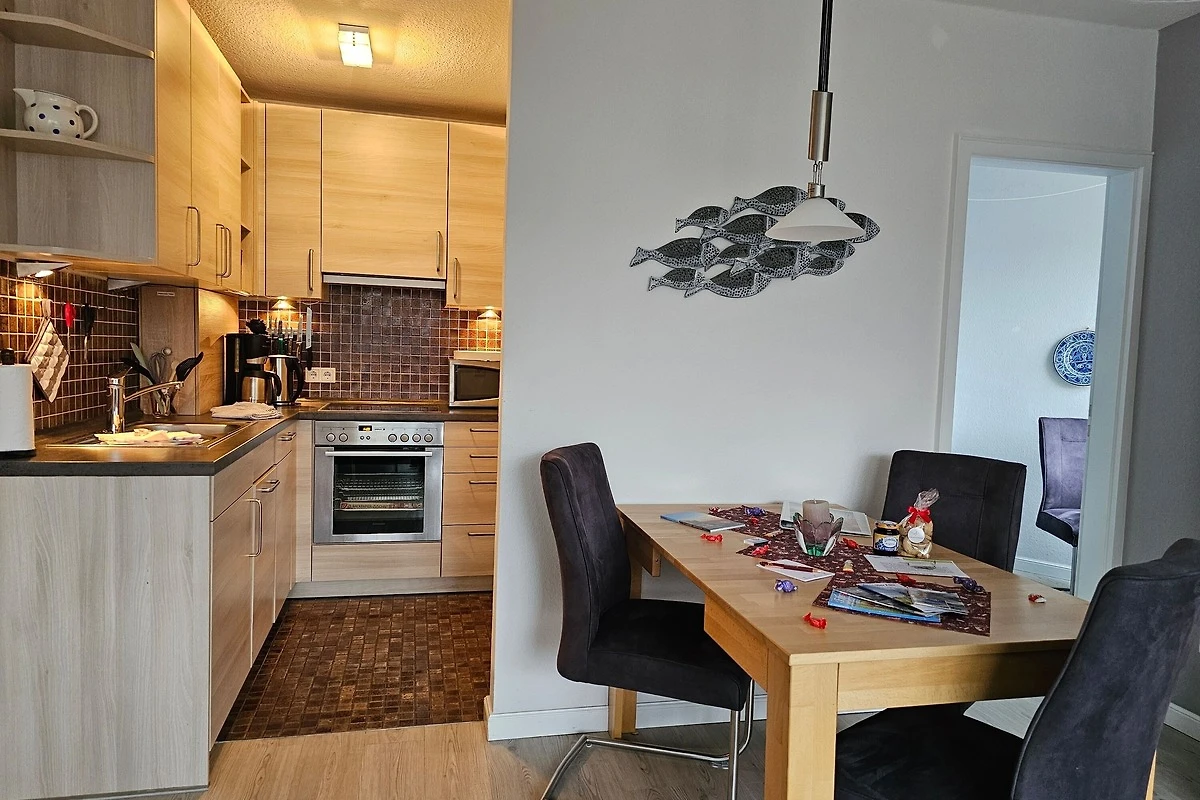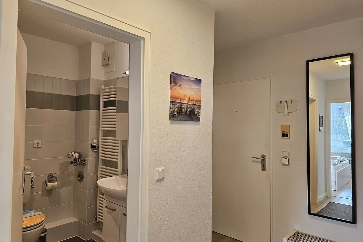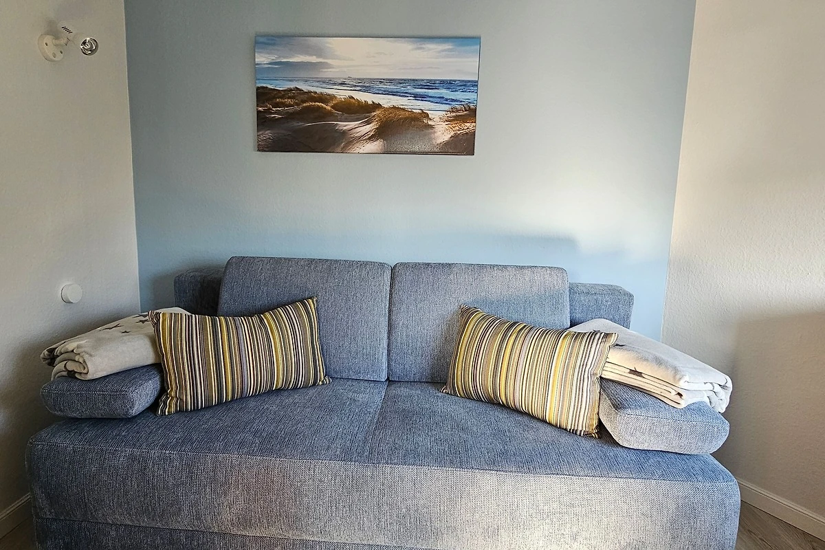 Die sehr gemütlich eingerichtete Ferienwohnung befindet sich am Südstrand im Haus Flora im 2. Stock (Fahrstuhl vorhanden) und ist ca. 60 m² gross. Sie ist sehr gut geeignet für 2 - 3 Personen und verfügt über ein Schlafzimmer mit Doppelbett sowie ein kleines Schlafzimmer mit einer komfortablen Schlafcouch für 1 Person. Ein grosser Balkon lädt zum Entspannen ein - im Sommer mit Blick ins Grüne. In der Winterzeit können Sie durch Bäume das Meer sehen.