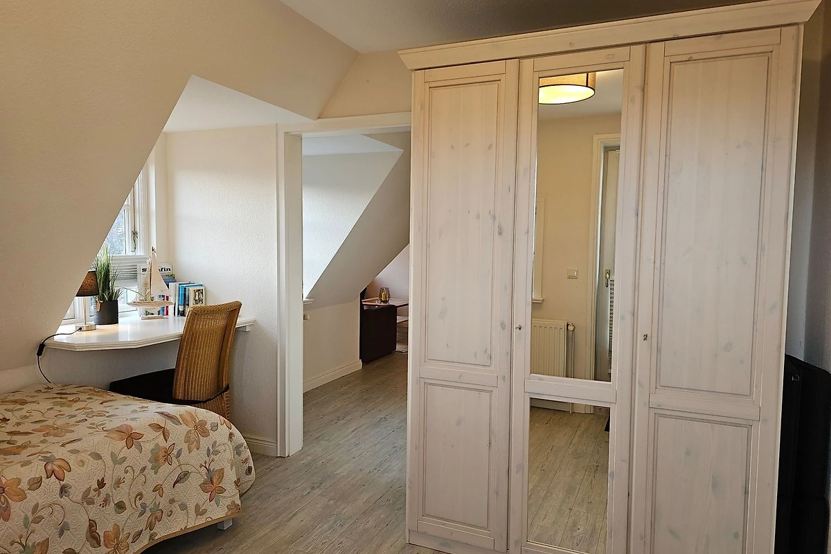 Die Ferienwohnung "Inselperle" in Wyk auf Föhr bietet auf 85 m² Platz für maximal 4 Personen. Sie befindet sich in der 1. Etage und verfügt über 3 Schlafzimmer sowie 2 Badezimmer.