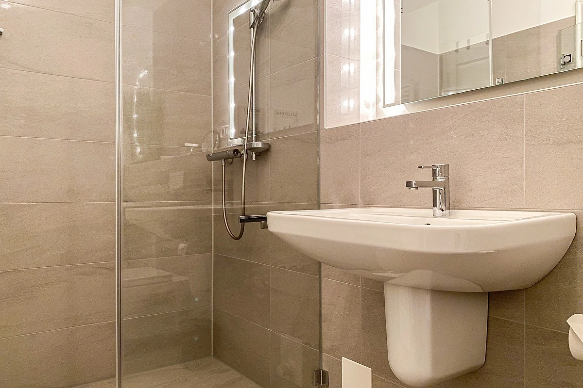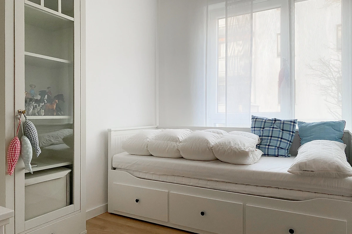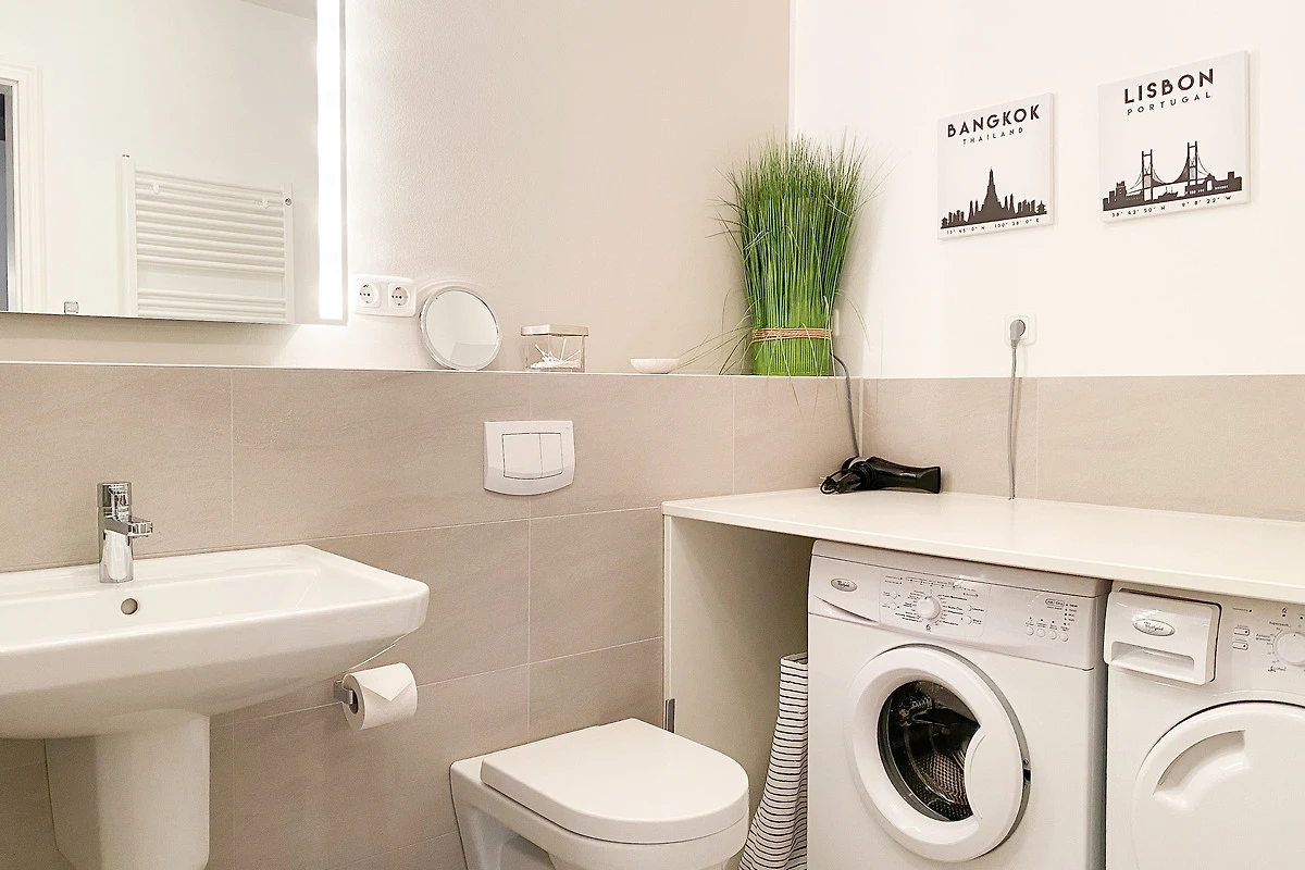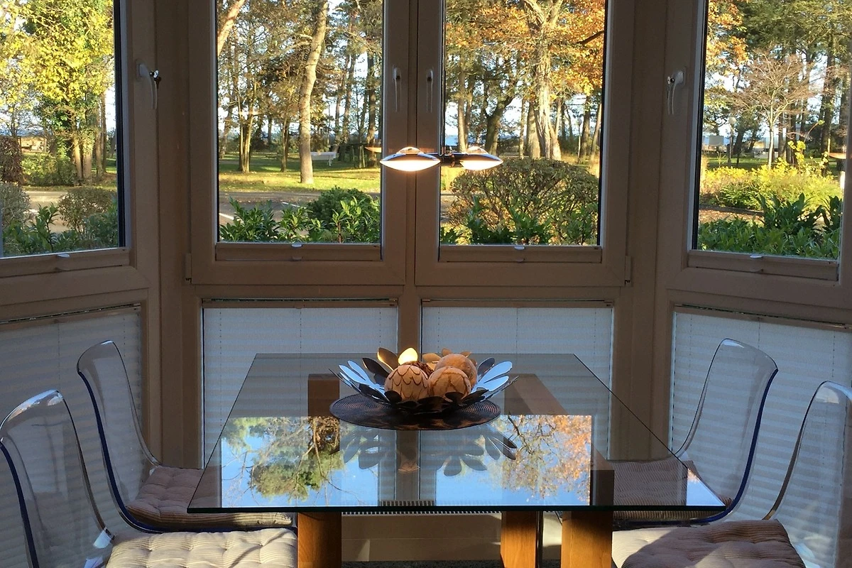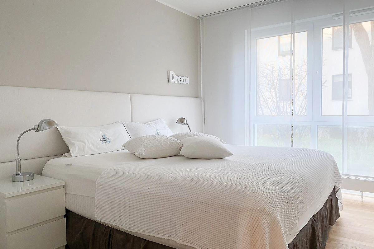 Die moderne, geschmackvoll eingerichtete Wohnung verfügt über einen grosszügigen Wohnbereich mit angrenzendem Essbereich und schönem Blick durch den gegenüberliegenden Park bis zur Ostsee. Die Räumlichkeiten sind hell und freundlich dank bodentiefer Fensterelemente, die alle mit elektrischen Aussenjalousien versehen sind. Die offene, hochwertige Einbauküche ist bestens ausgestattet und verfügt über alle technischen Geräte. Es stehen zwei separate Schlafzimmer zur Verfügung. Eines ist mit einem komfortablen Doppelbett (180x200) ausgestattet, das Kinderzimmer verfügt über zwei Einzelbetten. Im modernen Bad mit grosszügigem, ebenerdigen Duschbereich und Fussbodenheizung sind auch Waschmaschine und Trockner untergebracht. Ein separates Gäste WC steht ebenfalls zur Verfügung. Zwei grosse Terrassen, ausgestattet mit Gartenmöbeln und Strandkorb, eignen sich hervorragend zum Entspannen.