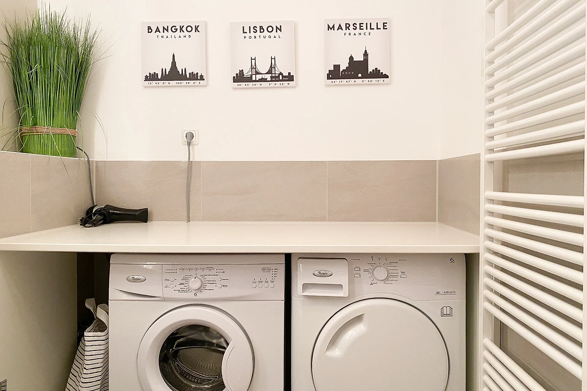 Das Haus am Meer verfügt über einen Fahrstuhl und eine Tiefgarage (Einfahrtshöhe 2 m), in der ein Stellplatz reserviert ist. Ein Fahrradkeller, Münzwaschmaschine und -Trockner sind vorhanden.