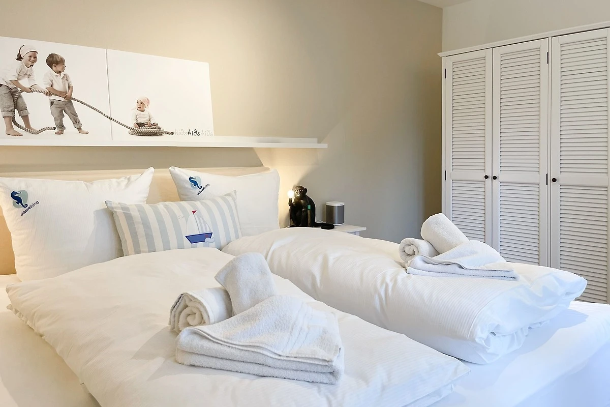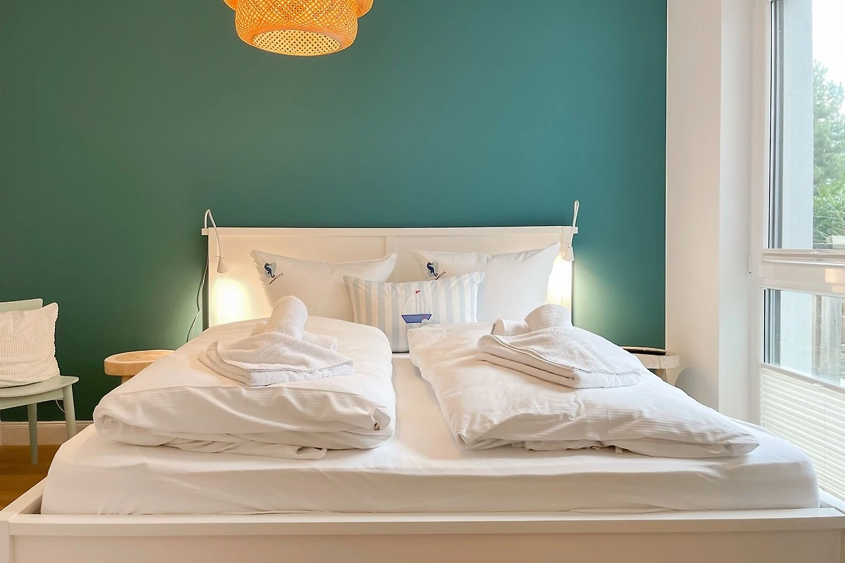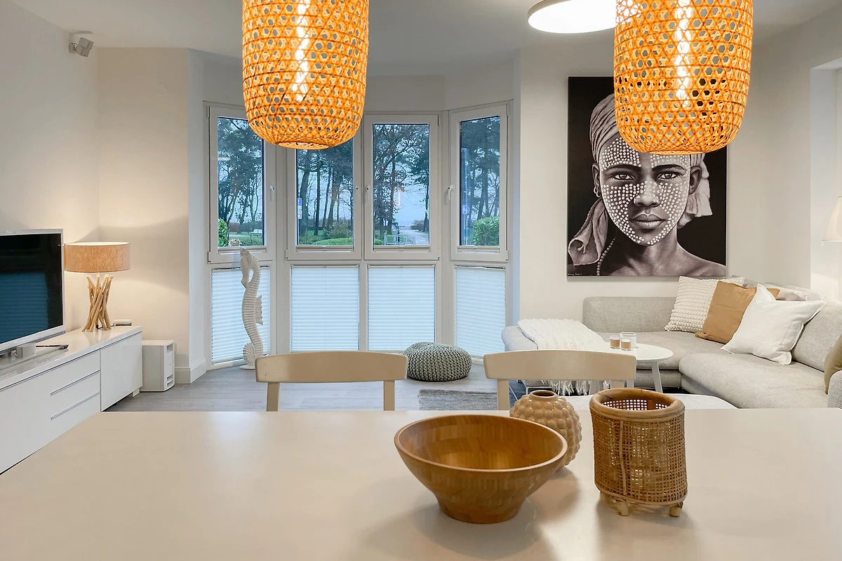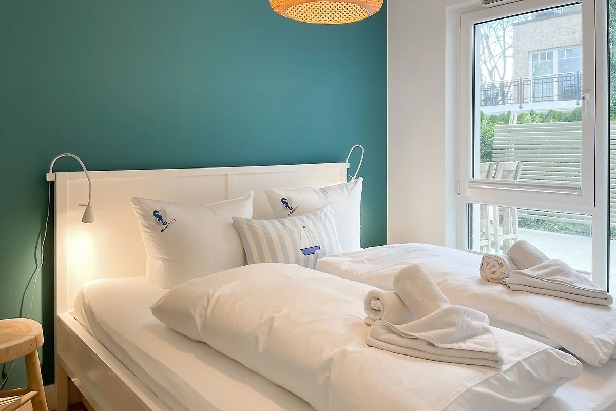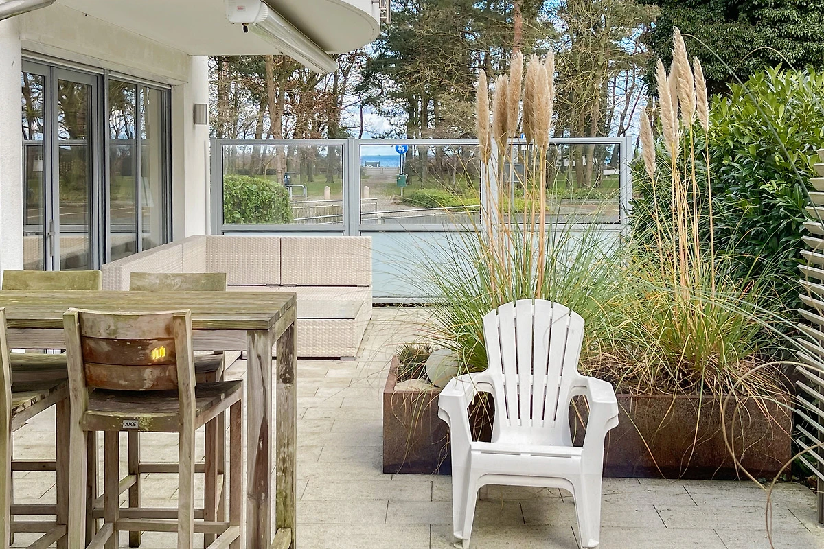 Ein absolutes Highlight dieser Wohnung ist die grosse Terrasse in Südost-Ausrichtung mit gemütlichen Loungemöbeln, Markise und Blick bis auf die Ostsee. Die Terrassentür lässt sich mit dem Hausschlüssel öffnen und dient als privater Eingangsbereich, sodass Sie direkt über die eigene Terrasse und durch den Garten mit wenigen Schritten am Strand sind. Die Ferienwohnung ist äusserst grosszügig geschnitten, gut ausgestattet und geschmackvoll eingerichtet, sodass ein hoher Wohnstandard in einem schönen Ambiente gewährleistet ist. Bodentiefe Fenster sorgen für helle und sonnige Räumlichkeiten und ermöglichen einen schönen Blick bis auf die Ostsee. Alle Fenster sind mit elektrischen Aussenjalousien versehen und die Fussbodenheizung sorgt für ein angenehmes Raumklima. Es erwartet Sie ein grosszügiger Wohnbereich, eingerichtet mit einem gemütlichen Sofa, TV, WLAN und Sonos Anlage. Die offene Luxusküche mit Insel und angrenzendem Essbereich ist bestens ausgestattet und macht Lust auf gemeinsames Kochen.[nbsp] Es stehen zwei separate Schlafzimmer mit Doppelbetten (180x200) und TV zur Verfügung.[nbsp] Das Bad ist sehr hochwertig mit Walk IN Dusche und integrierter Waschmaschine und Trockner. Ein separates Gäste WC ist ebenfalls vorhanden. Das Haus am Meer verfügt über einen Fahrstuhl und eine Tiefgarage (Einfahrtshöhe 2 m), in der ein fester Stellplatz reserviert ist. Ein Fahrradkeller ist vorhanden.