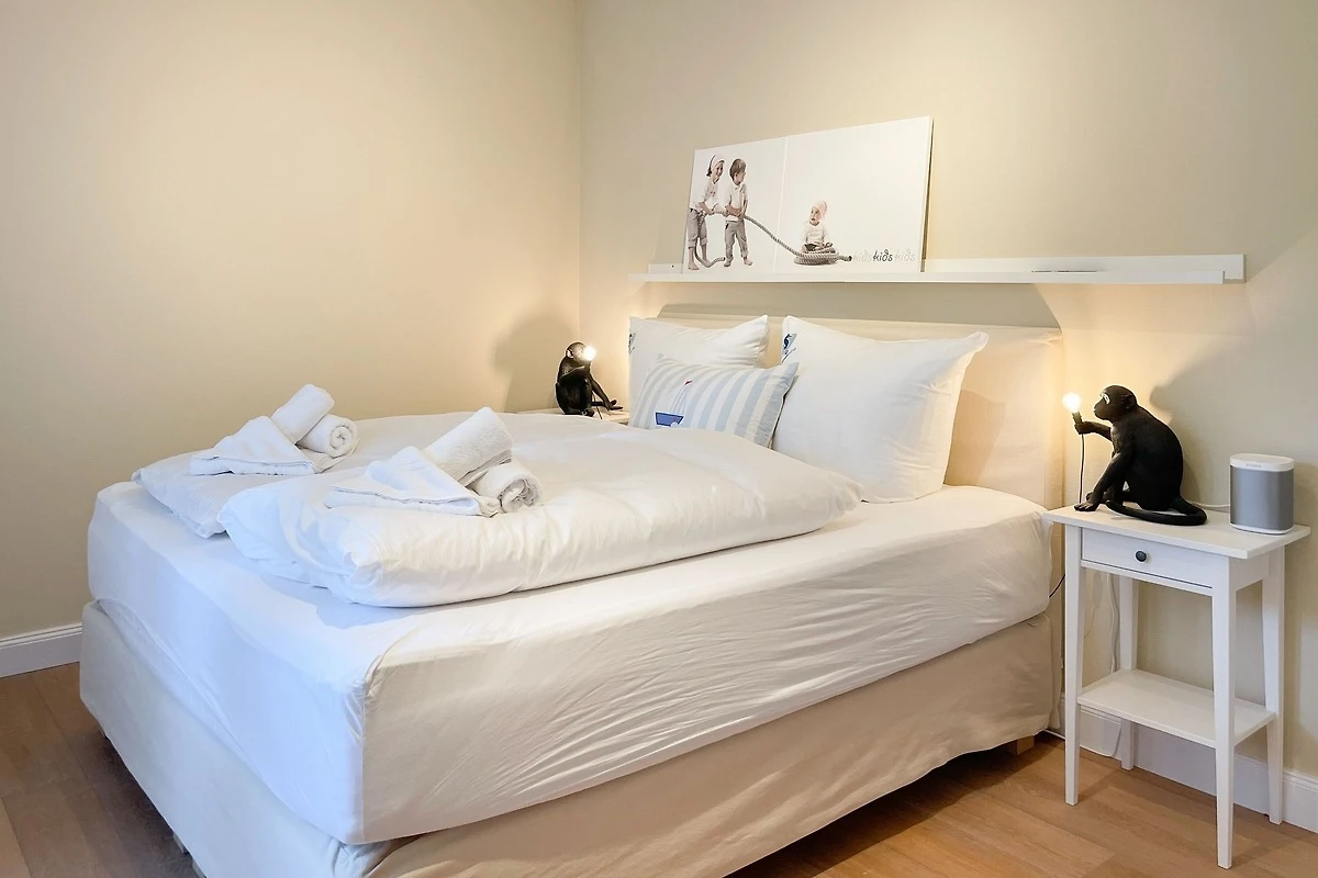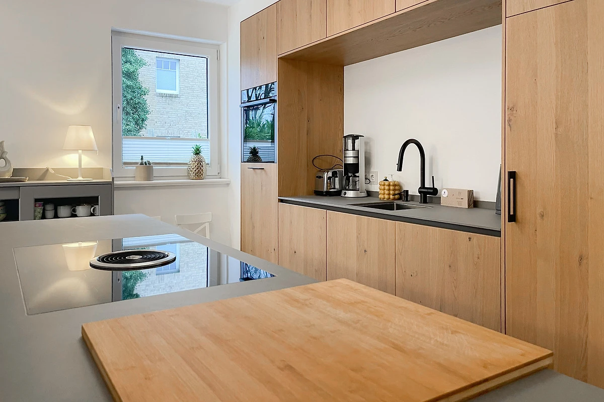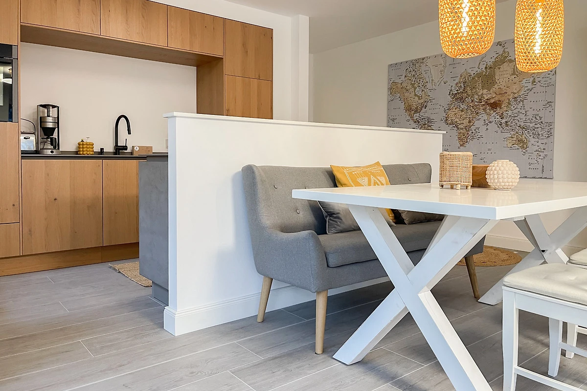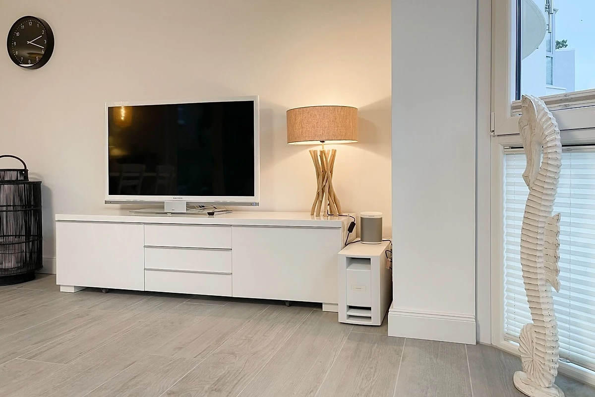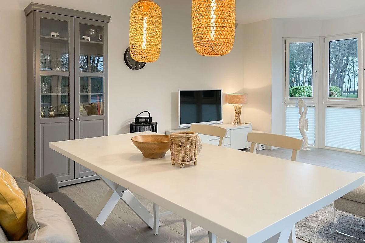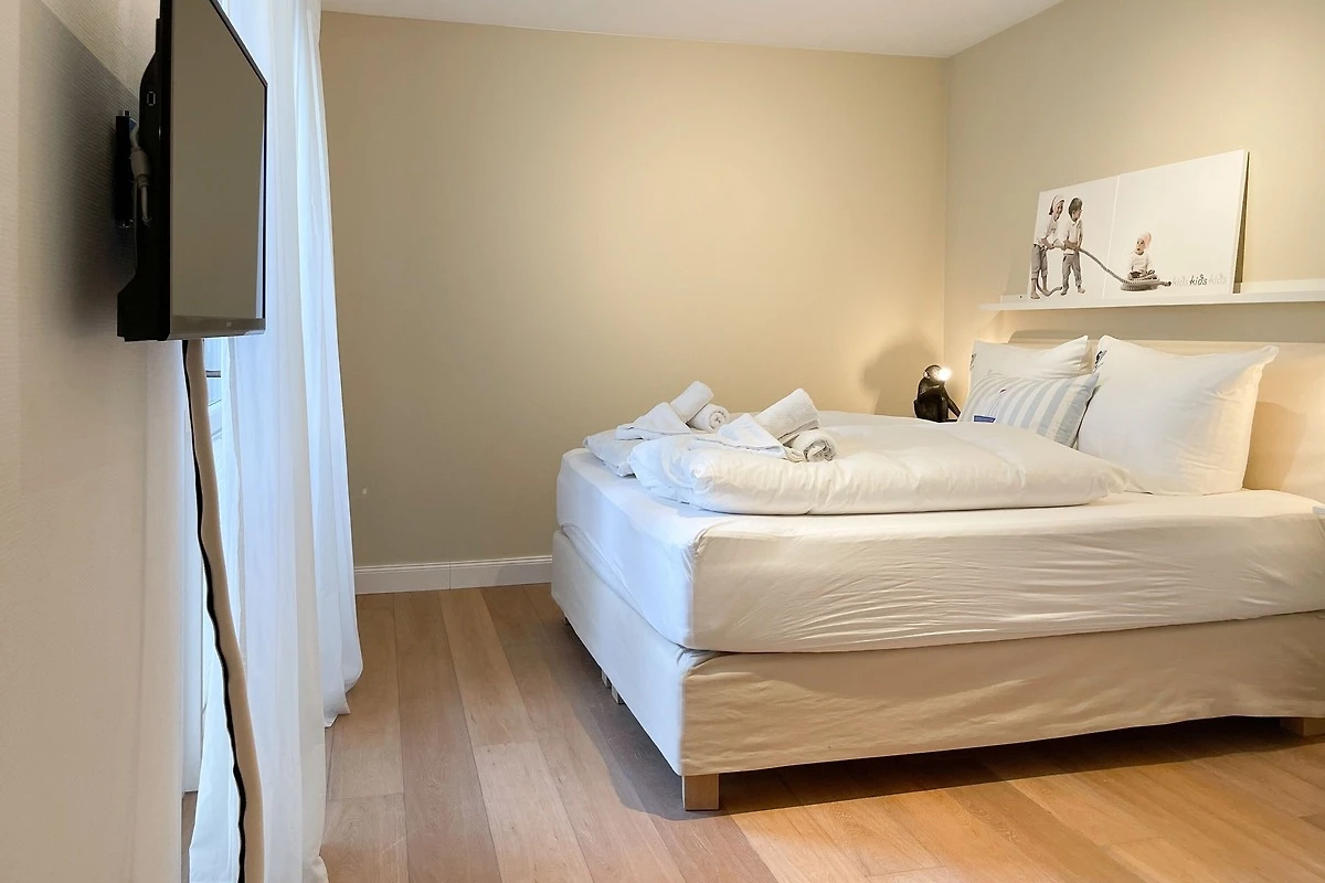 Ein absolutes Highlight dieser Wohnung ist die grosse Terrasse in Südost-Ausrichtung mit gemütlichen Loungemöbeln, Markise und Blick bis auf die Ostsee. Die Terrassentür lässt sich mit dem Hausschlüssel öffnen und dient als privater Eingangsbereich, sodass Sie direkt über die eigene Terrasse und durch den Garten mit wenigen Schritten am Strand sind. Die Ferienwohnung ist äusserst grosszügig geschnitten, gut ausgestattet und geschmackvoll eingerichtet, sodass ein hoher Wohnstandard in einem schönen Ambiente gewährleistet ist. Bodentiefe Fenster sorgen für helle und sonnige Räumlichkeiten und ermöglichen einen schönen Blick bis auf die Ostsee. Alle Fenster sind mit elektrischen Aussenjalousien versehen und die Fussbodenheizung sorgt für ein angenehmes Raumklima. Es erwartet Sie ein grosszügiger Wohnbereich, eingerichtet mit einem gemütlichen Sofa, TV, WLAN und Sonos Anlage. Die offene Luxusküche mit Insel und angrenzendem Essbereich ist bestens ausgestattet und macht Lust auf gemeinsames Kochen.[nbsp] Es stehen zwei separate Schlafzimmer mit Doppelbetten (180x200) und TV zur Verfügung.[nbsp] Das Bad ist sehr hochwertig mit Walk IN Dusche und integrierter Waschmaschine und Trockner. Ein separates Gäste WC ist ebenfalls vorhanden. Das Haus am Meer verfügt über einen Fahrstuhl und eine Tiefgarage (Einfahrtshöhe 2 m), in der ein fester Stellplatz reserviert ist. Ein Fahrradkeller ist vorhanden.