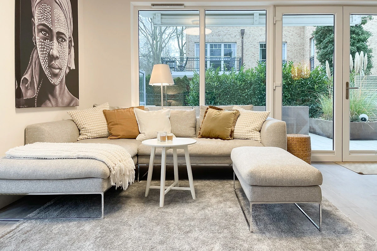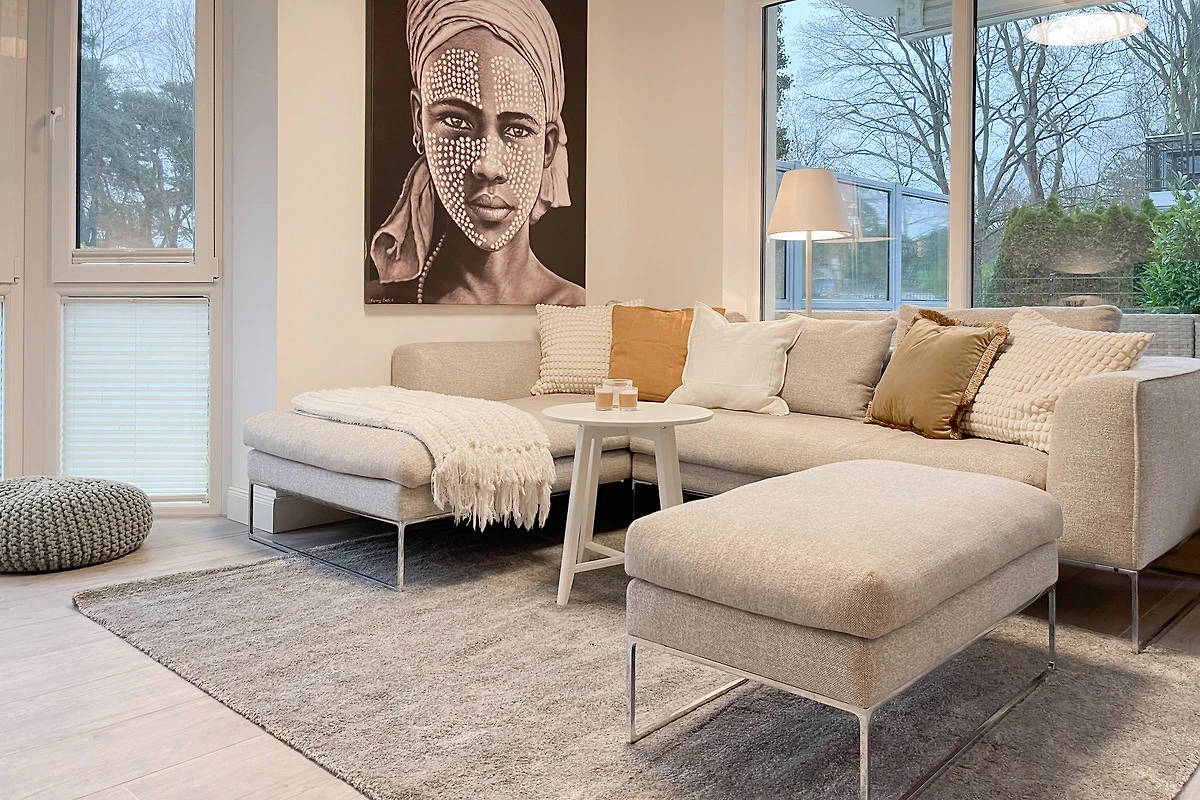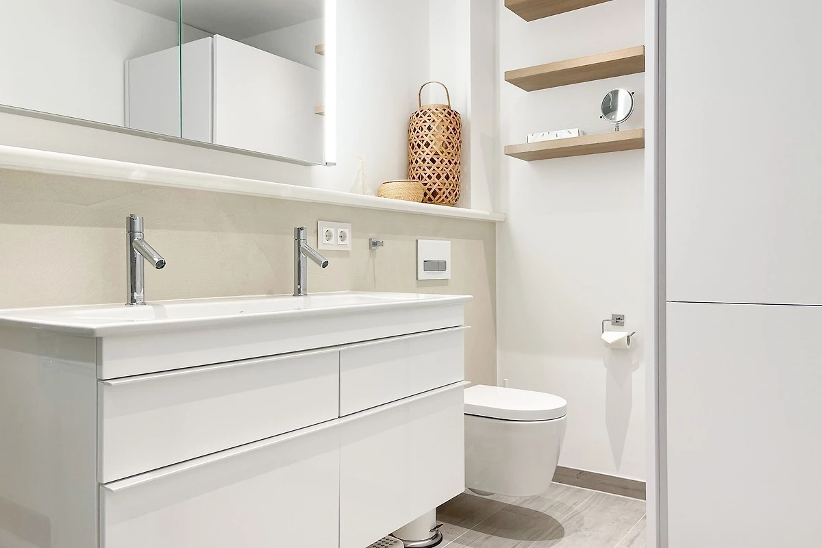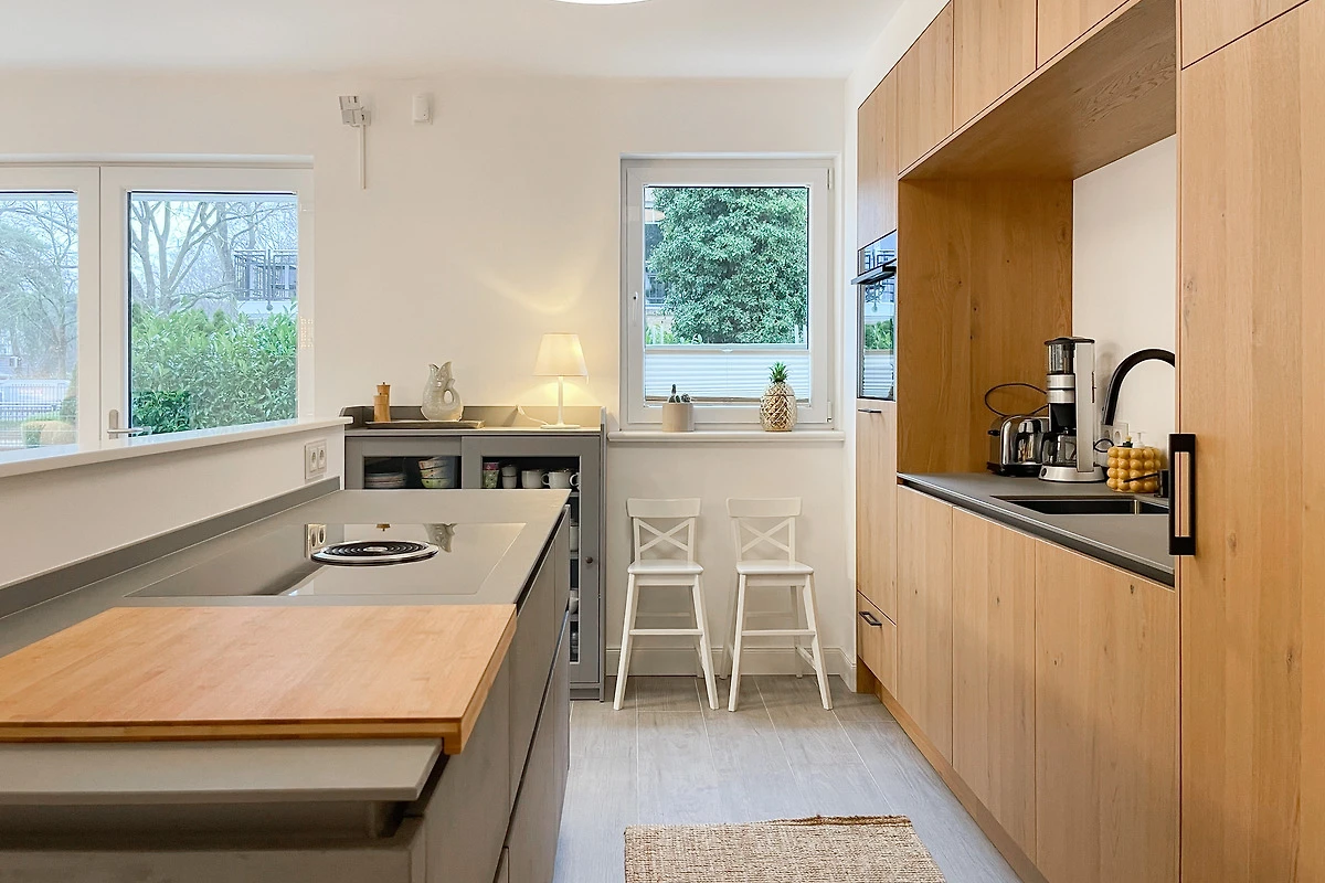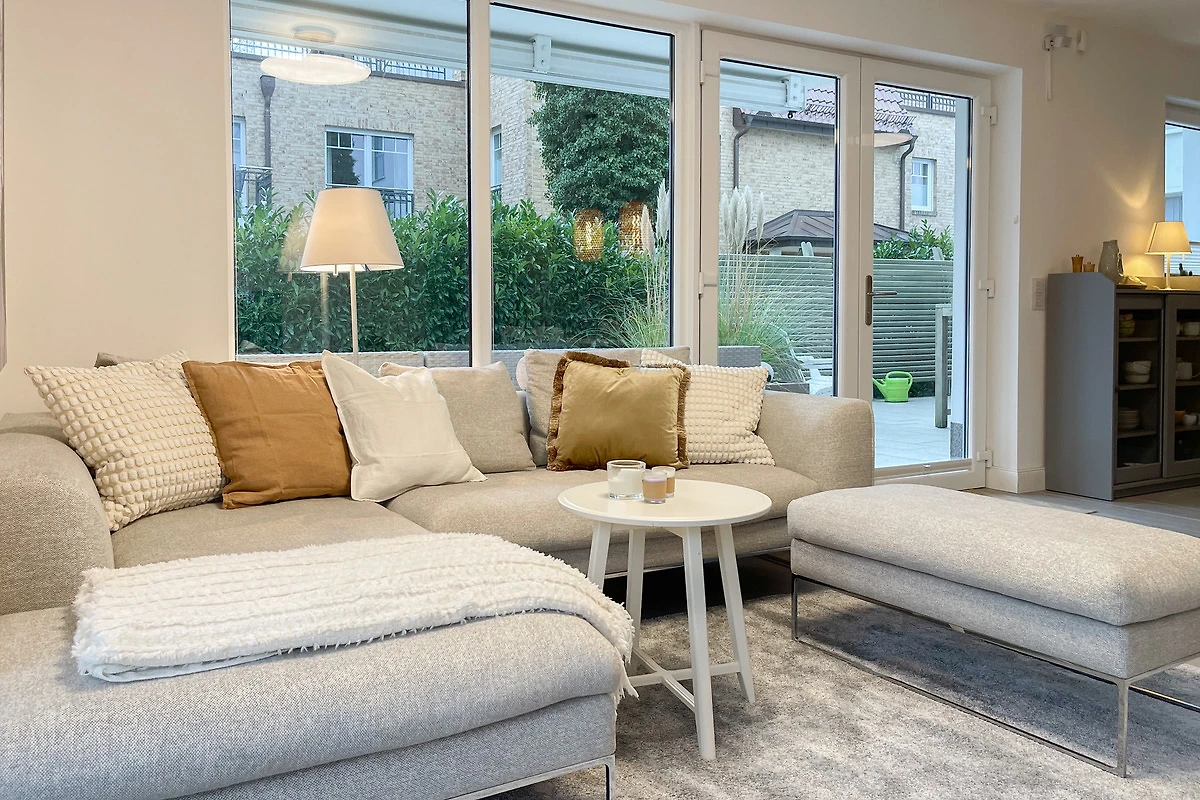 Ein absolutes Highlight dieser Wohnung ist die grosse Terrasse in Südost-Ausrichtung mit gemütlichen Loungemöbeln, Markise und Blick bis auf die Ostsee. Die Terrassentür lässt sich mit dem Hausschlüssel öffnen und dient als privater Eingangsbereich, sodass Sie direkt über die eigene Terrasse und durch den Garten mit wenigen Schritten am Strand sind. Die Ferienwohnung ist äusserst grosszügig geschnitten, gut ausgestattet und geschmackvoll eingerichtet, sodass ein hoher Wohnstandard in einem schönen Ambiente gewährleistet ist. Bodentiefe Fenster sorgen für helle und sonnige Räumlichkeiten und ermöglichen einen schönen Blick bis auf die Ostsee. Alle Fenster sind mit elektrischen Aussenjalousien versehen und die Fussbodenheizung sorgt für ein angenehmes Raumklima. Es erwartet Sie ein grosszügiger Wohnbereich, eingerichtet mit einem gemütlichen Sofa, TV, WLAN und Sonos Anlage. Die offene Luxusküche mit Insel und angrenzendem Essbereich ist bestens ausgestattet und macht Lust auf gemeinsames Kochen.[nbsp] Es stehen zwei separate Schlafzimmer mit Doppelbetten (180x200) und TV zur Verfügung.[nbsp] Das Bad ist sehr hochwertig mit Walk IN Dusche und integrierter Waschmaschine und Trockner. Ein separates Gäste WC ist ebenfalls vorhanden. Das Haus am Meer verfügt über einen Fahrstuhl und eine Tiefgarage (Einfahrtshöhe 2 m), in der ein fester Stellplatz reserviert ist. Ein Fahrradkeller ist vorhanden.