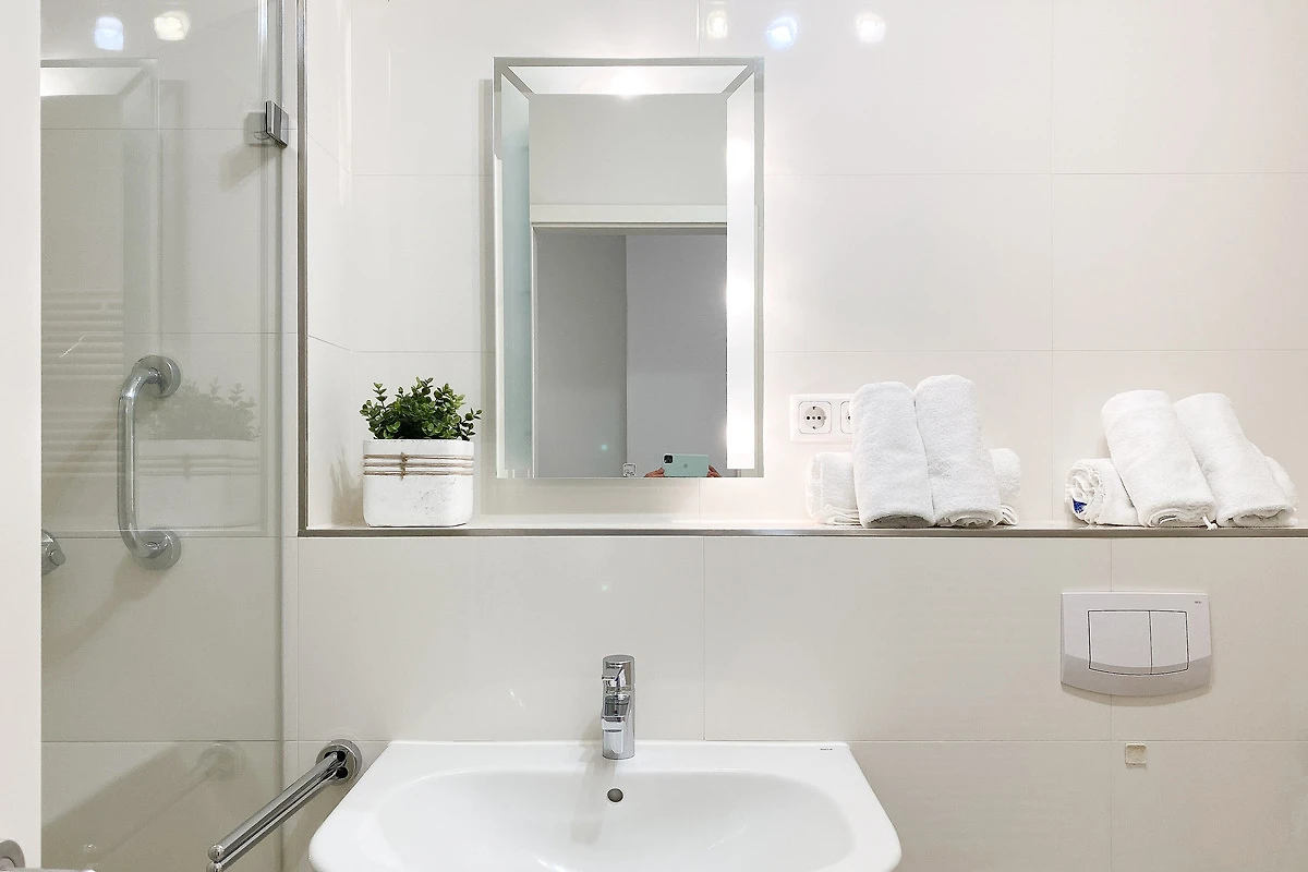 Ein fester PKW Stellplatz und ein Fahrradkeller befinden sich in der hauseigenen Tiefgarage (Einfahrtshöhe 2 m). Ein Fahrstuhl ist selbstverständlich vorhanden. Waschmaschine und Trockner (Münzgeräte) stehen zur gemeinschaftlichen Nutzung zur Verfügung.