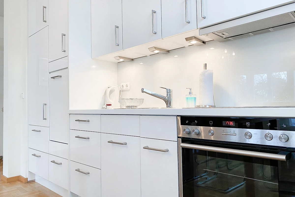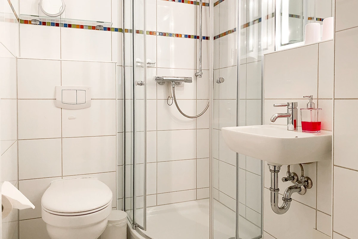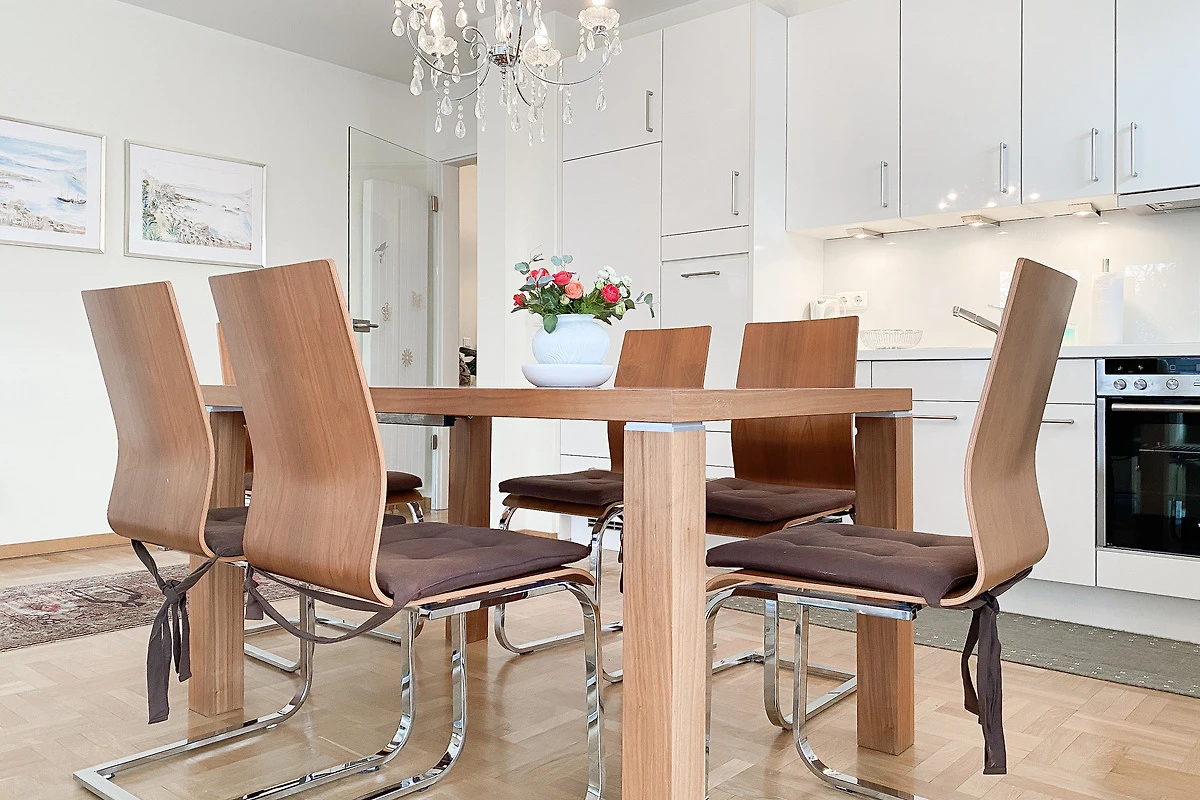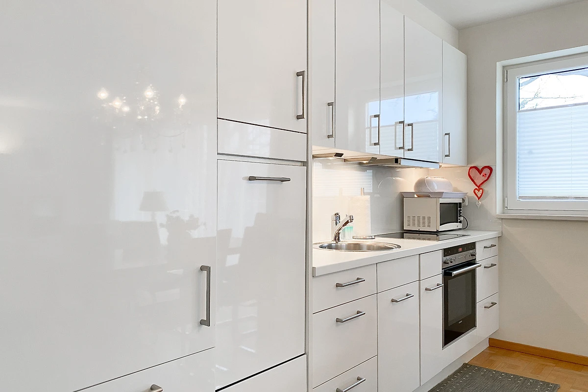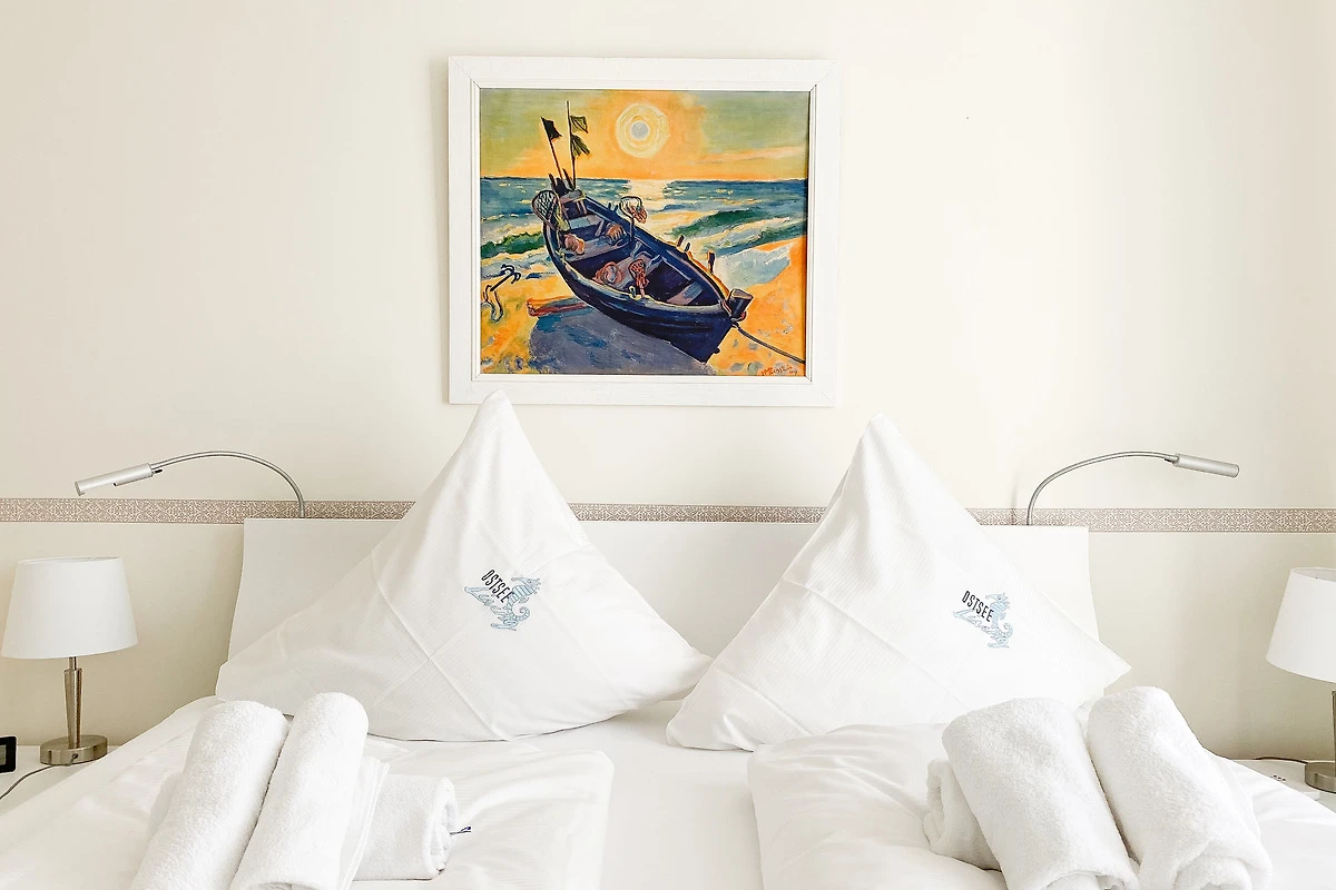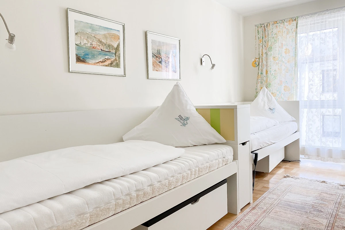 Die komfortable Wohnung im 2. Obergeschoss bietet mit 2 separaten Schlafzimmern, ausgestattet mit Doppelbett (180x200) mit elektrisch verstellbaren Rahmen und zwei Einzelbetten (90x200)[nbsp][nbsp]sowie 2 separaten Duschbädern ausreichend Platz für 4 Personen. In einem der Bäder ist zusätzlich eine Waschmaschine untergebracht. Es gibt eine offene, moderne Einbauküche mit Induktionsherd, Backofen, Mikrowelle, Geschirrspüler und einen grosszügigen Essbereich für 6 Personen. Der anschliessende Wohnbereich ist mit einer Ledergarnitur und einem Elektrokamin ausgestattet und eröffnet einen wunderschönen Ausblick über den gegenüberliegenden Park, teilweise durch das Grün bis zur Ostsee. Im Erker befindet sich ein gemütlicher Lesesessel. Auf dem vorgelagerten Balkon lässt sich wunderbar die Abendsonne bei einem Sundowner geniessen. Ein kostenloser Internetzugang über WLAN steht zur Verfügung.