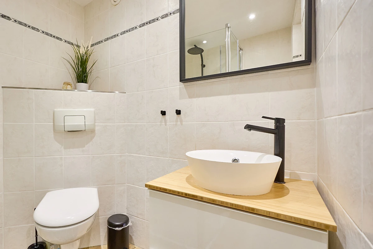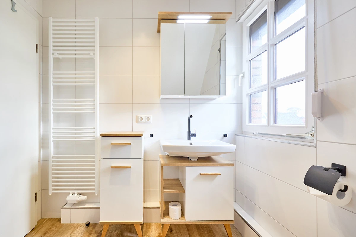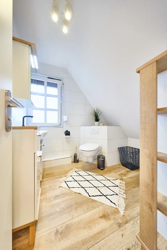 Zweites Sanitärbereich mit WC und Waschtisch sowie einem Fenster