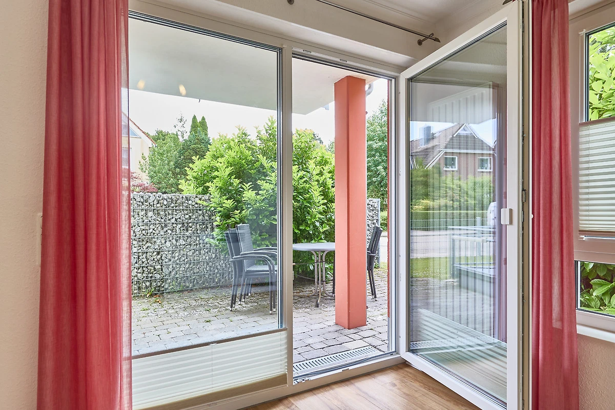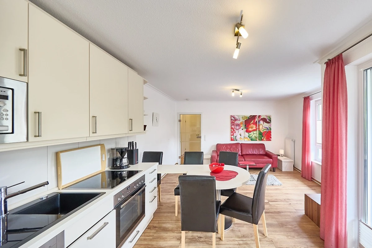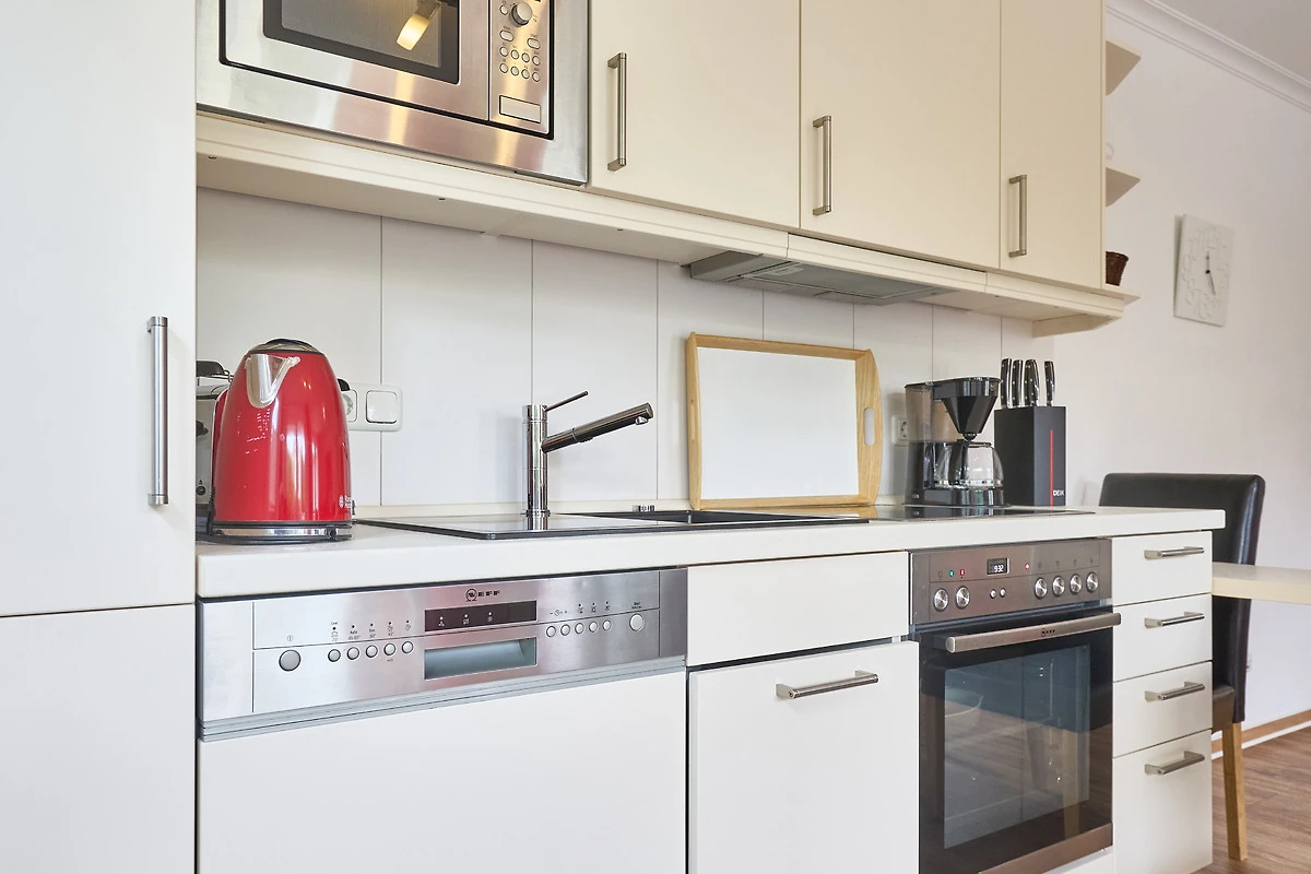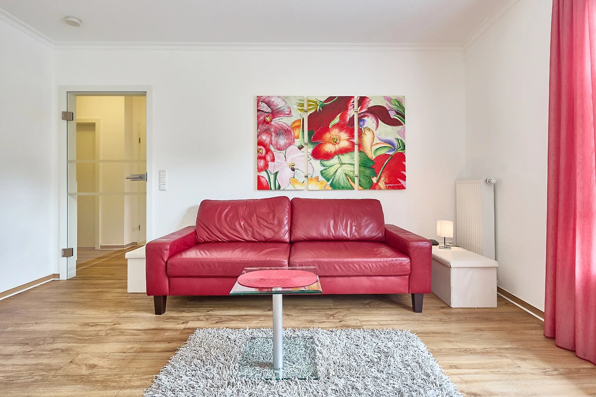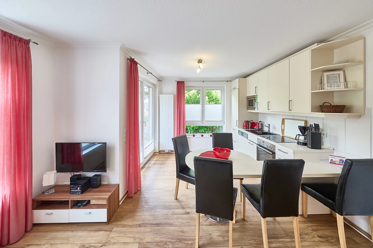 Die Wohnung liegt in einer ruhigen Sackgasse und dennoch nur wenige Gehminuten vom Strand, dem Wehrberg sowie dem Thalassozentrum ahoi! entfernt – eine Lage, die Erholung und kurze Wege ideal verbindet.