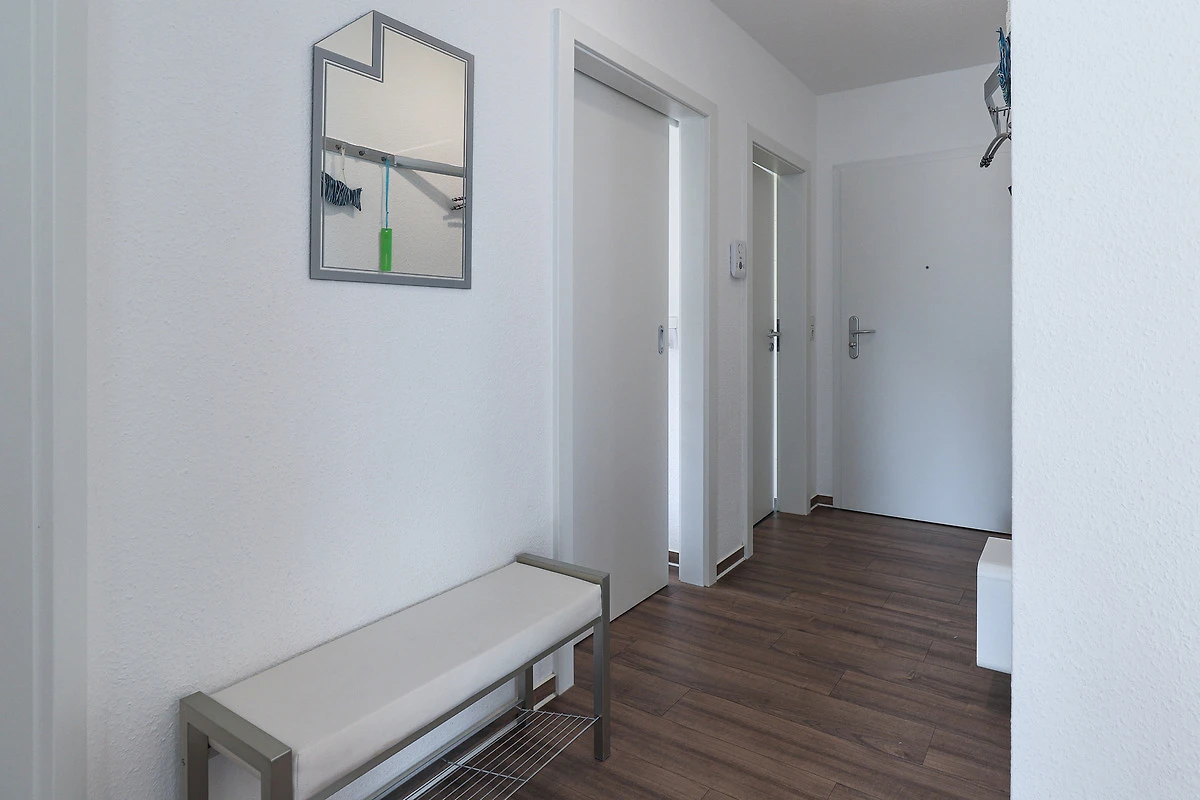 Willkommen in der Ferienwohnung Vosshörn 26 – Wohnung 4. Diese grosszügige 4-Raum-Ferienwohnung bietet auf zwei Ebenen viel Platz und Komfort für bis zu 6 Personen, ergänzt durch zwei weitere Schlafmöglichkeiten im Untergeschoss. Der durchdachte Grundriss eignet sich besonders gut für Familien, mehrere Generationen oder Gäste, die Wert auf Freiraum und Rückzugsmöglichkeiten legen.