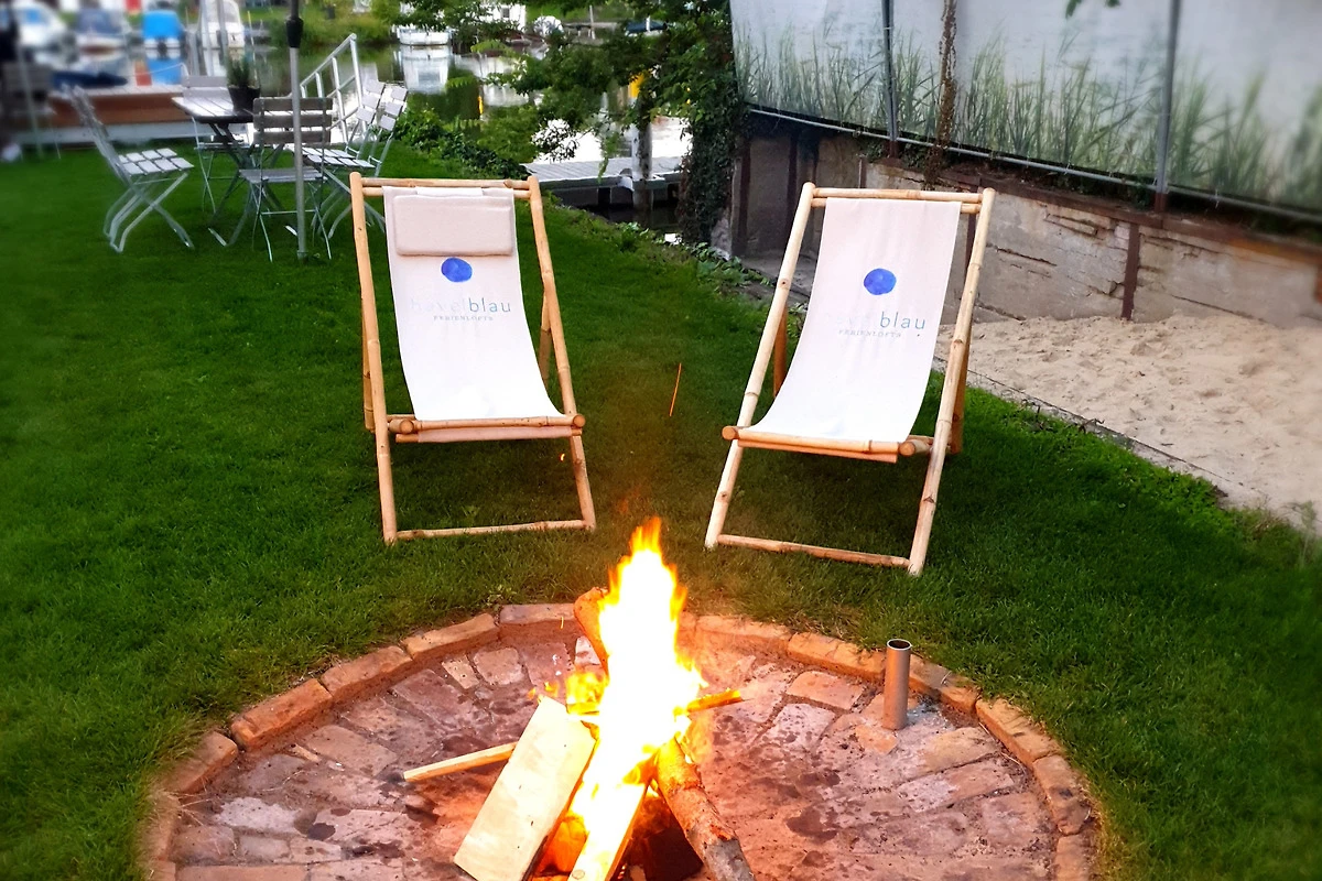 Zu dieser Ferienwohnung gehört ein individueller, mit Hecken umpflanzter Terrassenbereich. Die bayerisch rustikalen Biergartentische und -stühle laden zu gemütlichen Stunden an der frischen Havelluft ein.