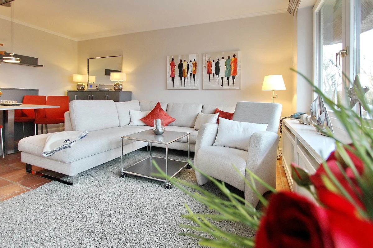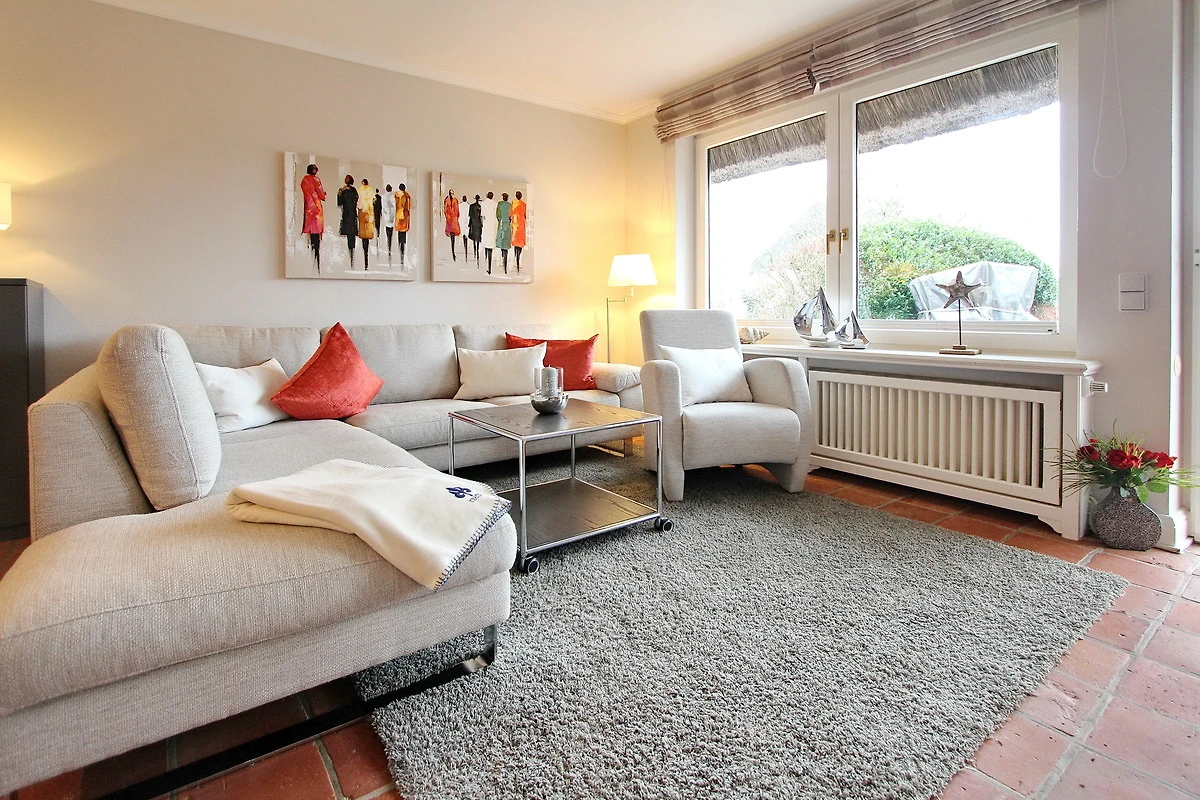 Traumhaft schön gelegene 3-Zimmer-Wohnung im Hausteil-Charakter in Keitum unter Reet - es befindet sich am Ende einer kleinen Privatstrasse nördlich der Keitumer Kirche. Das Hausteil hat eine Grösse von ca. 70 m² und ist in Erdgeschoss und Obergeschoss aufgeteilt. Eine grosszügige Terrasse zur Westseite, voll möbliert, steht Ihnen zur alleinigen Nutzung zur Verfügung - von hier aus können Sie jederzeit den tollen Sonnenuntergang geniessen.