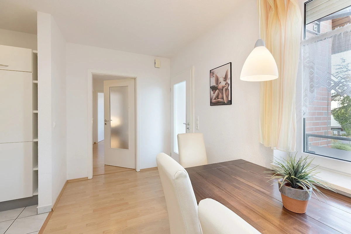 Balkon in südliche Richtung. PKW-Stellplatz am Haus. Fahrrad-Abstellraum im Haus. Waschmaschine und Trockner gegen Gebühr im Haus vorhanden.
