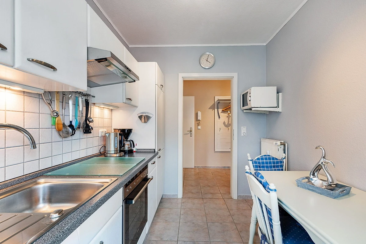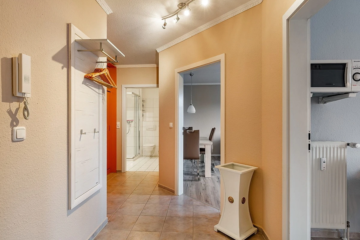 Balkon in nord-westliche Richtung (Sonne ab nachmittags). Waschmaschine und Trockner gegen Gebühr im Haus. Kostenloser WLAN-Anschluss. Fahrradkeller und PKW-Stellplatz in der Tiefgarage (Einfahrt: 1,90m Hoch) . Die Wohnung erreichen Sie von dort barrierefrei über den Fahrstuhl.