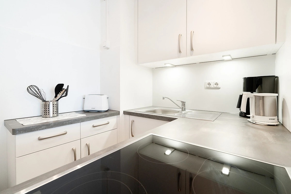 Kostenloses W-Lan. Balkon in westliche Richtung, Tiefgaragen-Stellplatz[nbsp] (max. 1,95m Höhe), Wäschetrockner und Waschmaschine gegen Gebühr im Haus.