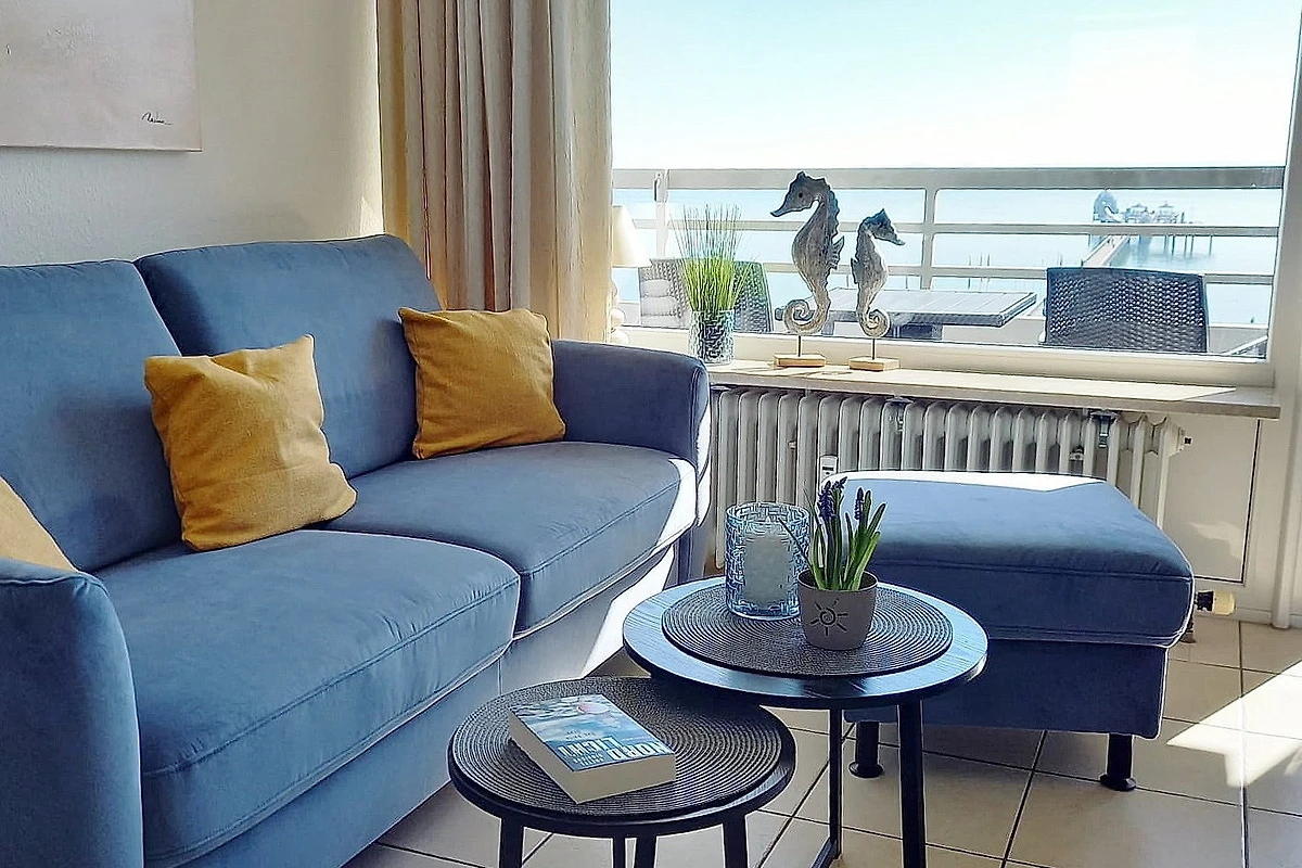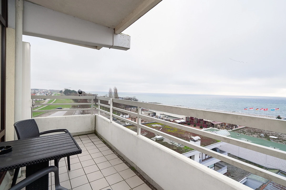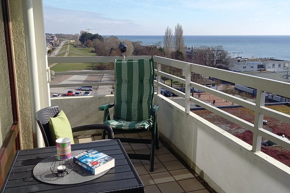 Balkon in südliche Richtung mit Blick auf das Meer und die Grömitzer Seebrücke. Eigener Tiefgaragen-Stellplatz (max. Höhe 1,90 m), Waschmaschine und Trockner gegen Gebühr.