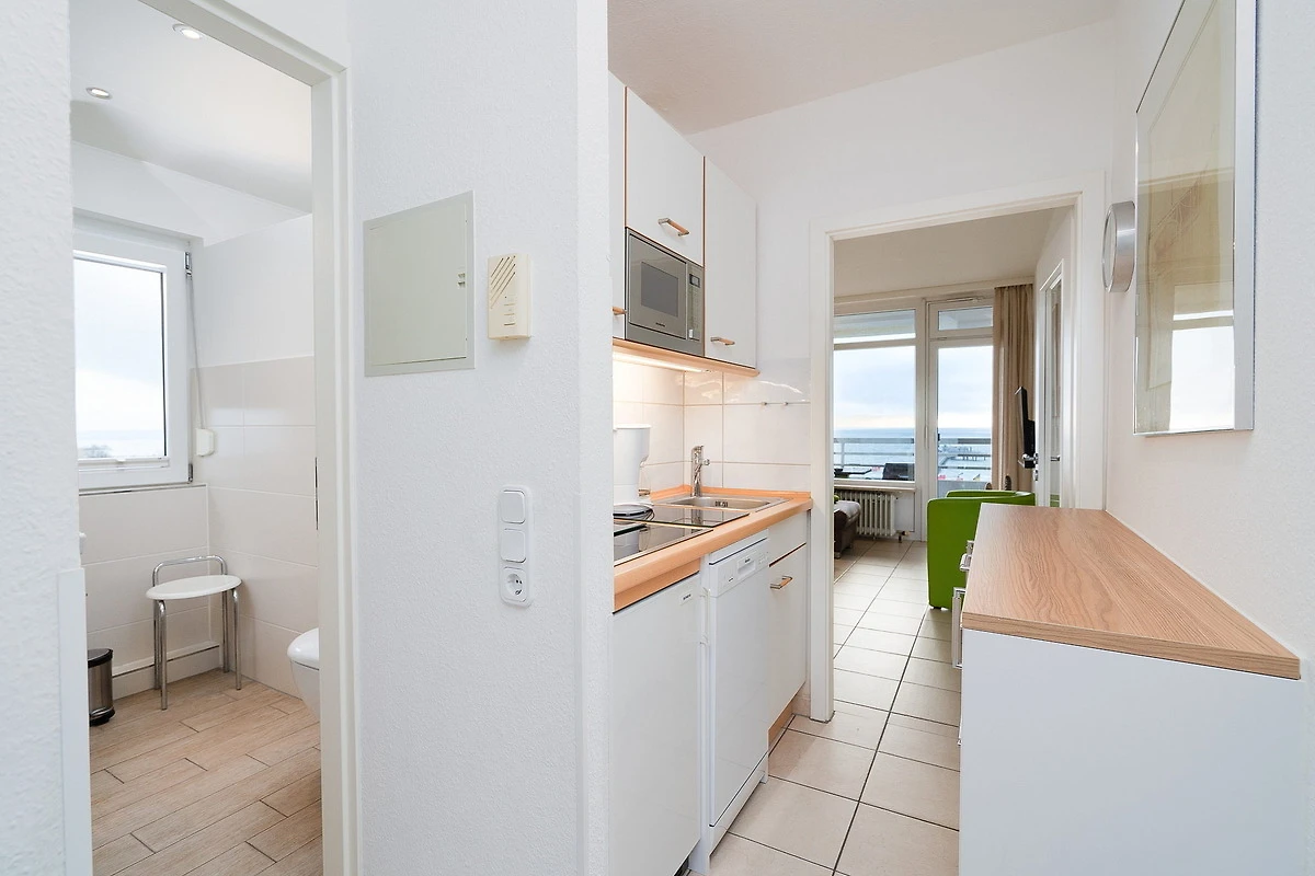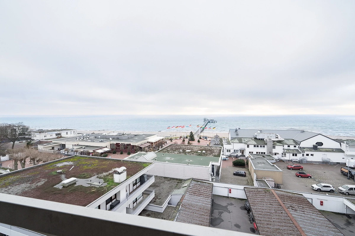 Die Wohnung befindet sich im 7. OG im Grömitz-Center 2 (Fahrstuhl vorhanden, es führen 4 Stufen zur Wohnung)