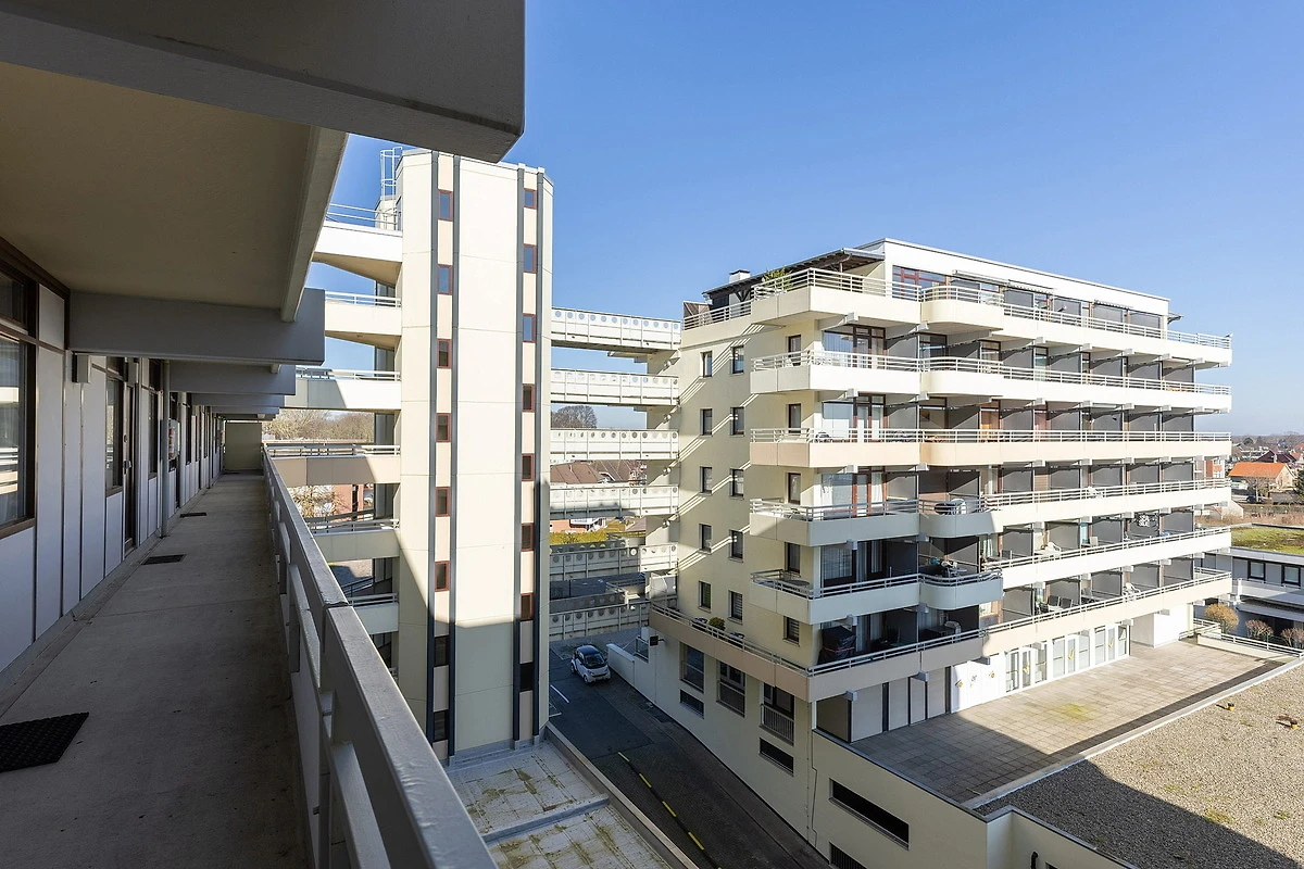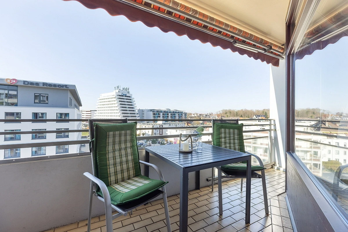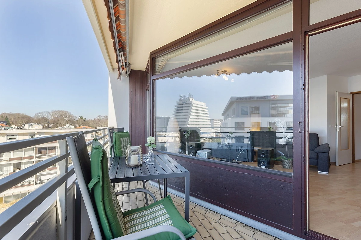 Die Wohnung befindet sich im 6. Stock im Grömitz-Center 1. Ein Aufzug ist in unmittelbarer Nähe vom Parkplatz vorhanden.