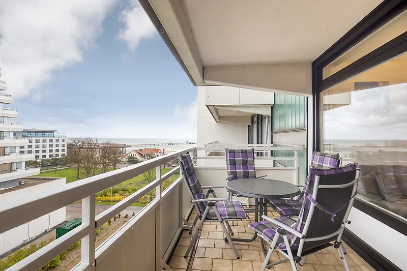 Die Wohnung liegt im 6. OG. Vom Balkon Blick auf die Ostsee.