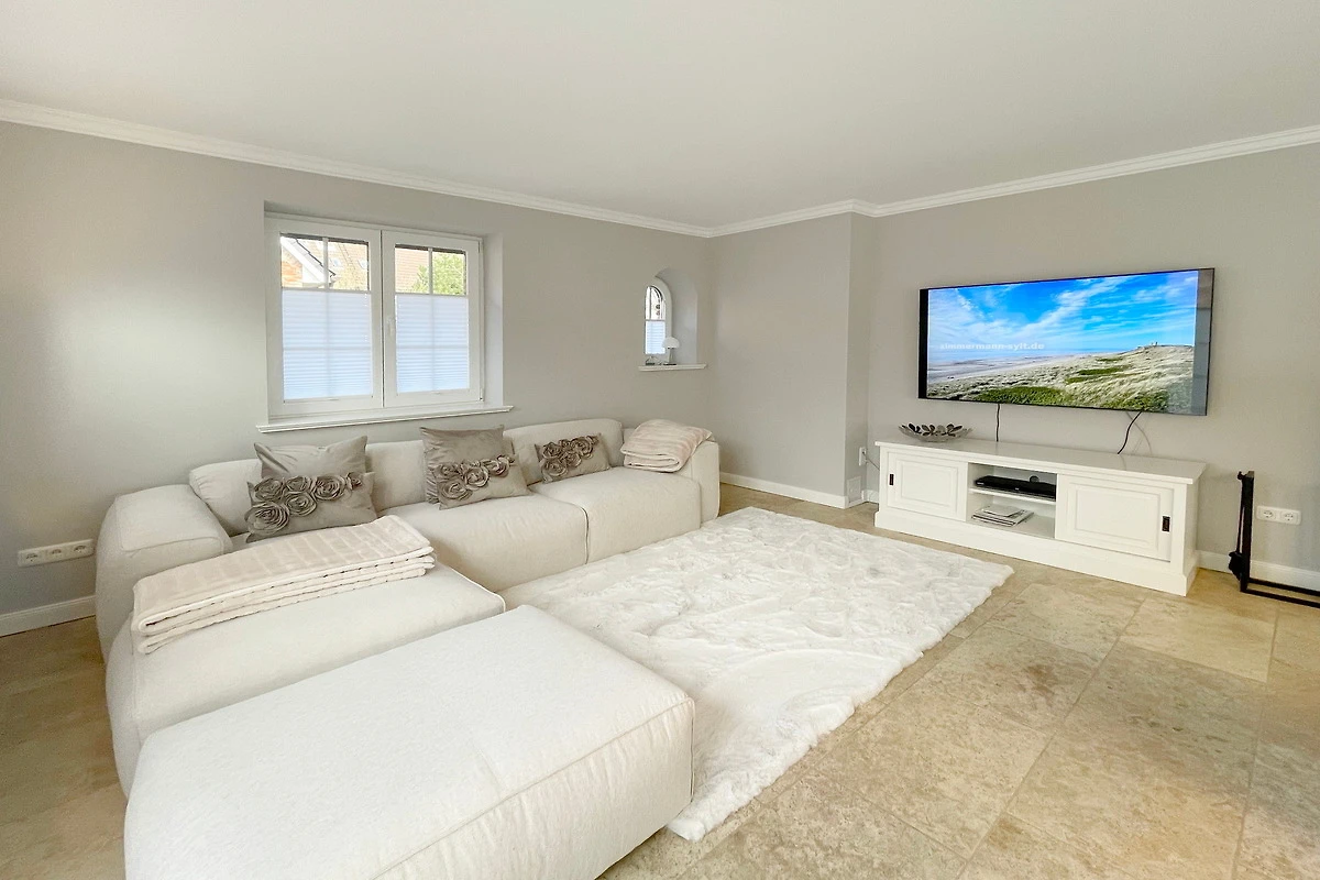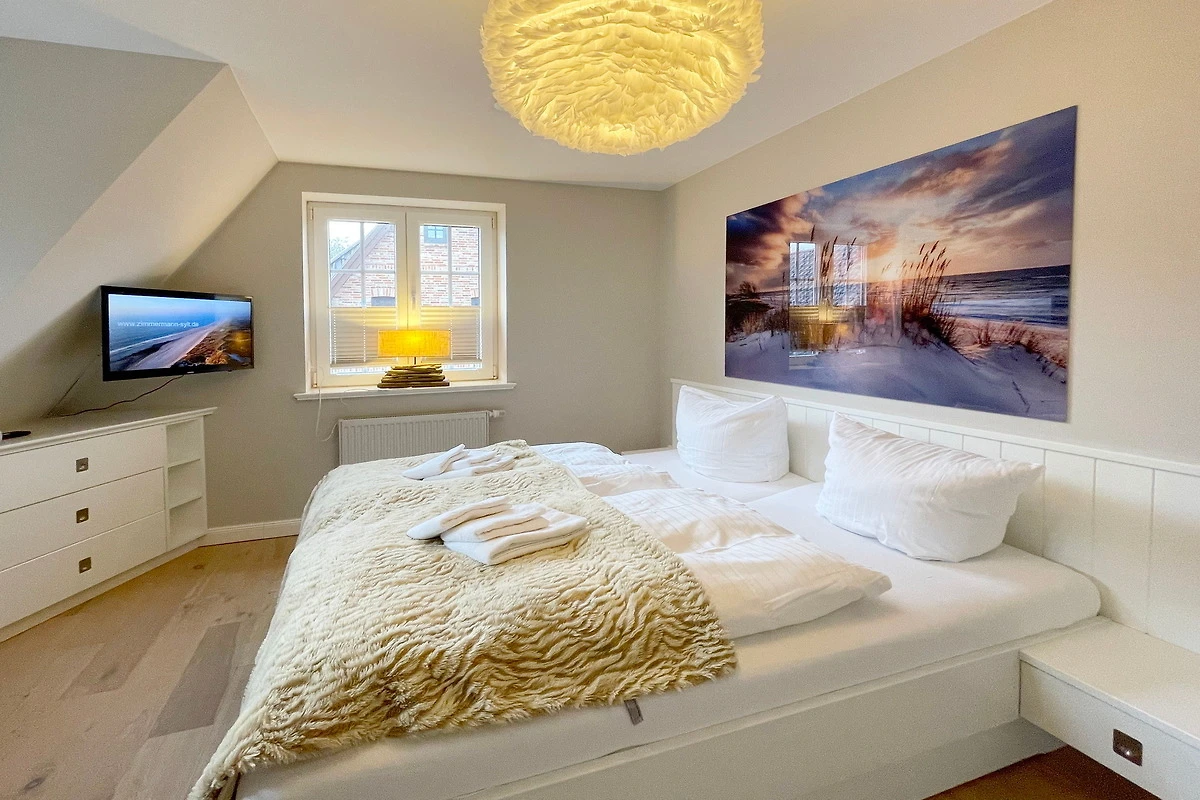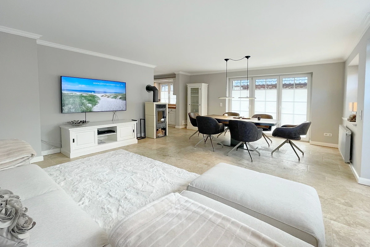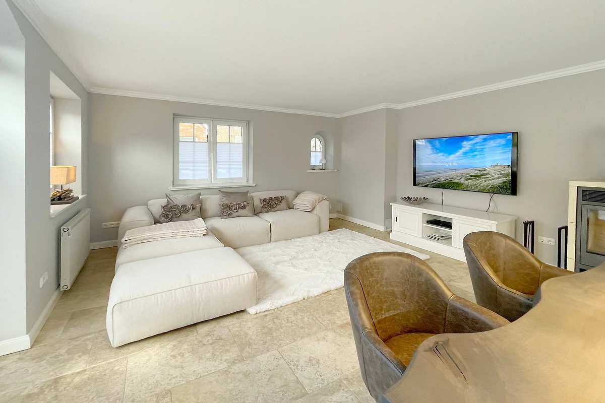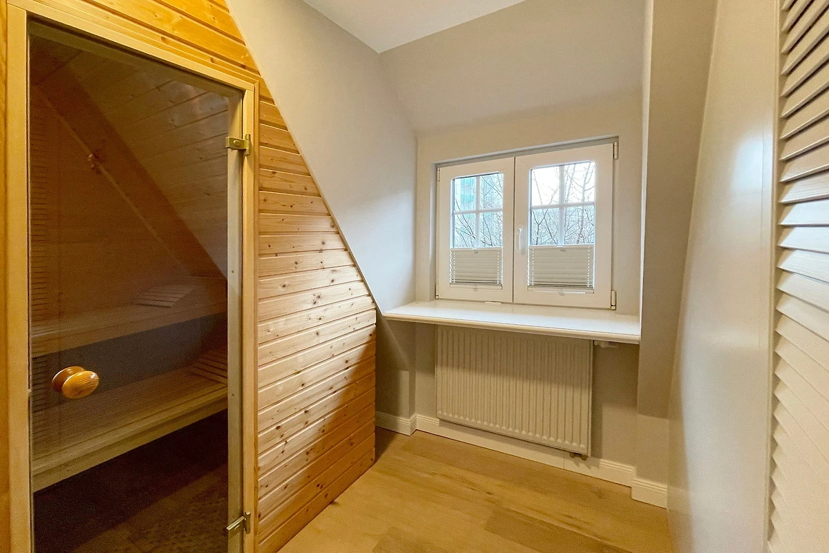 Das exklusive Ferienhaus Ada hat im Frühjahr 2023 ein "fresh up" bekommen und befindet sich bester Strandlage im Süden Westerlands am Wäldchen. Natursteinböden, Holzparkett, eine moderne Landhausküche gehören hier zum Standard. Das Haus verfügt über einen grossen Wohn-Essbereich mit offener Küche und Kaminofen, grosses Smart-TV, Blue-Ray-Player, Flur, 1x Duschbad mit WC, 2 Schlafzimmer mit Doppelbetten, Einbauschränken und jeweils mit zusätzlichem Smart-TV, Wellnesszimmer mit Sauna, Wannenbad mit WC und Waschmaschine-Trockner-Kombi, Zimmersafe, Ein Schlafzimmer mit 2 Einzelbetten.