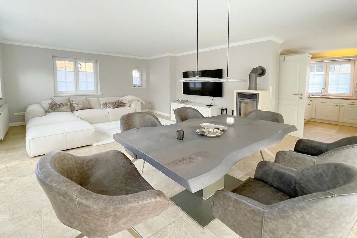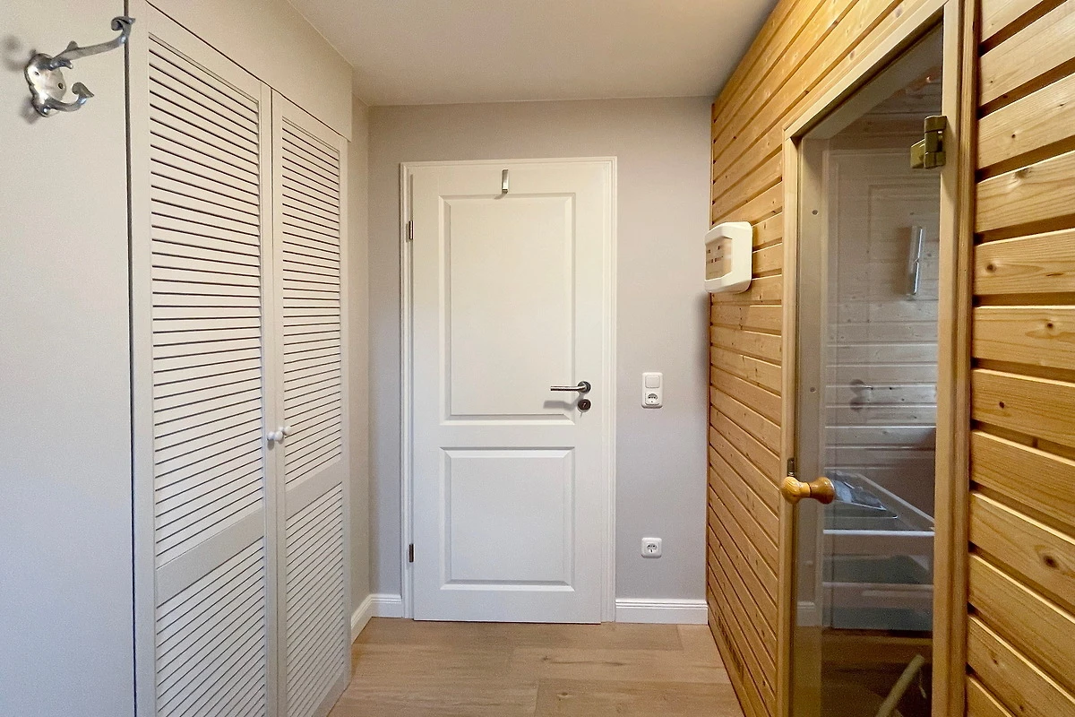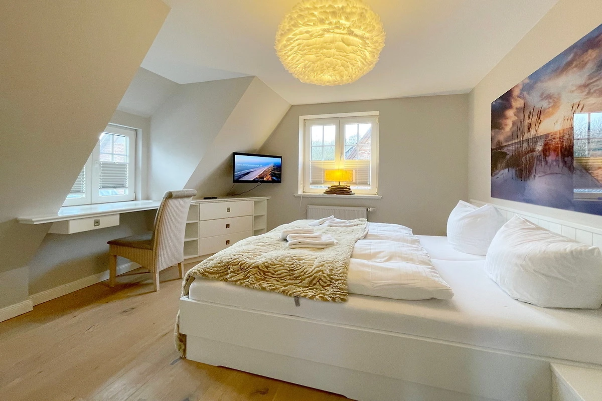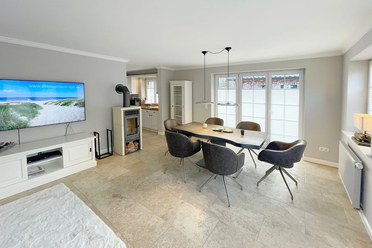 Das exklusive Ferienhaus Ada hat im Frühjahr 2023 ein "fresh up" bekommen und befindet sich bester Strandlage im Süden Westerlands am Wäldchen. Natursteinböden, Holzparkett, eine moderne Landhausküche gehören hier zum Standard. Das Haus verfügt über einen grossen Wohn-Essbereich mit offener Küche und Kaminofen, grosses Smart-TV, Blue-Ray-Player, Flur, 1x Duschbad mit WC, 2 Schlafzimmer mit Doppelbetten, Einbauschränken und jeweils mit zusätzlichem Smart-TV, Wellnesszimmer mit Sauna, Wannenbad mit WC und Waschmaschine-Trockner-Kombi, Zimmersafe, Ein Schlafzimmer mit 2 Einzelbetten.