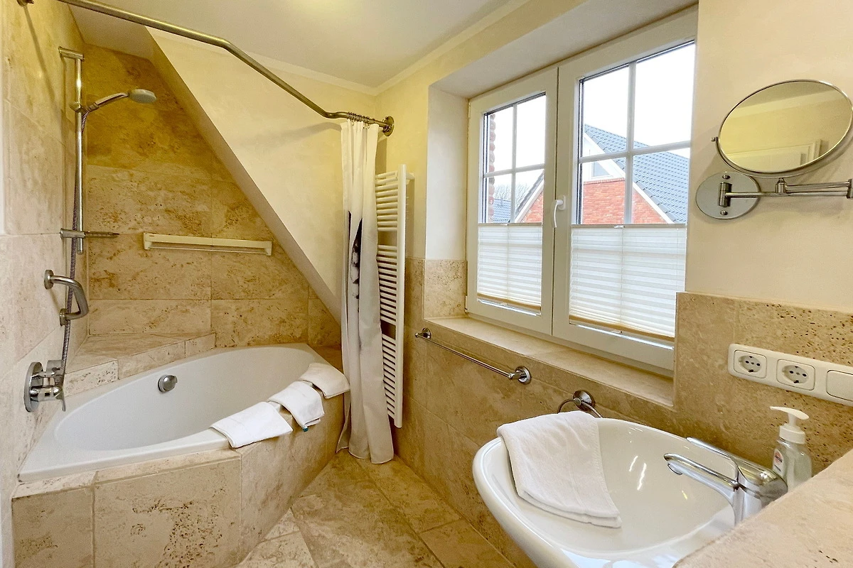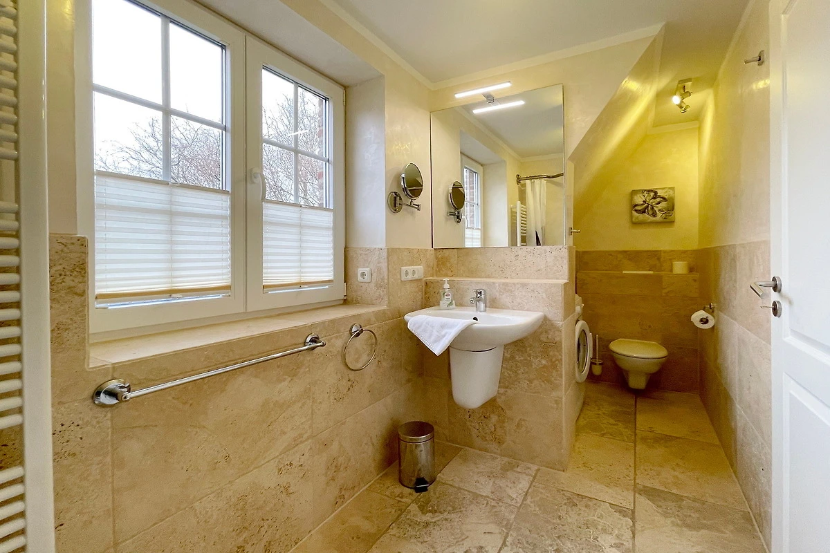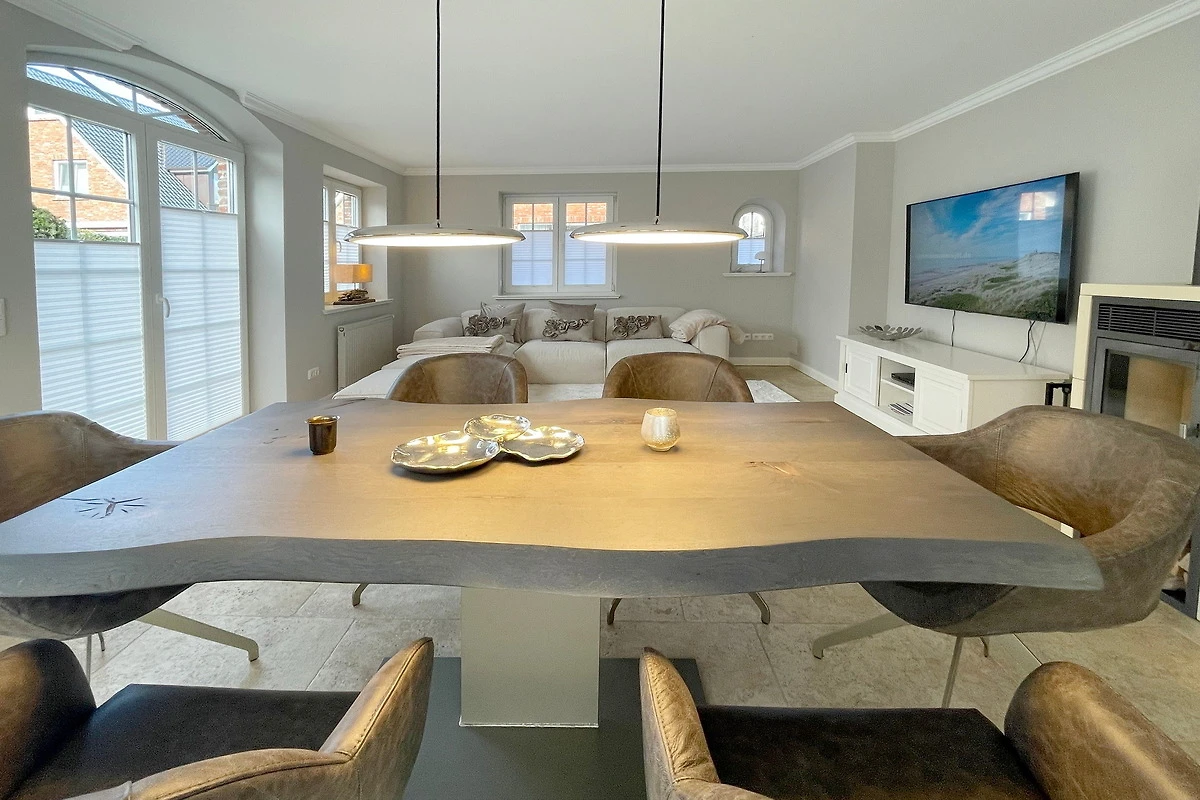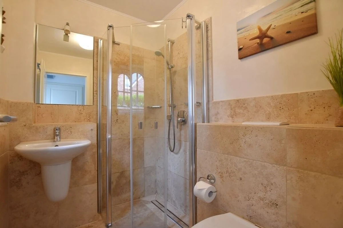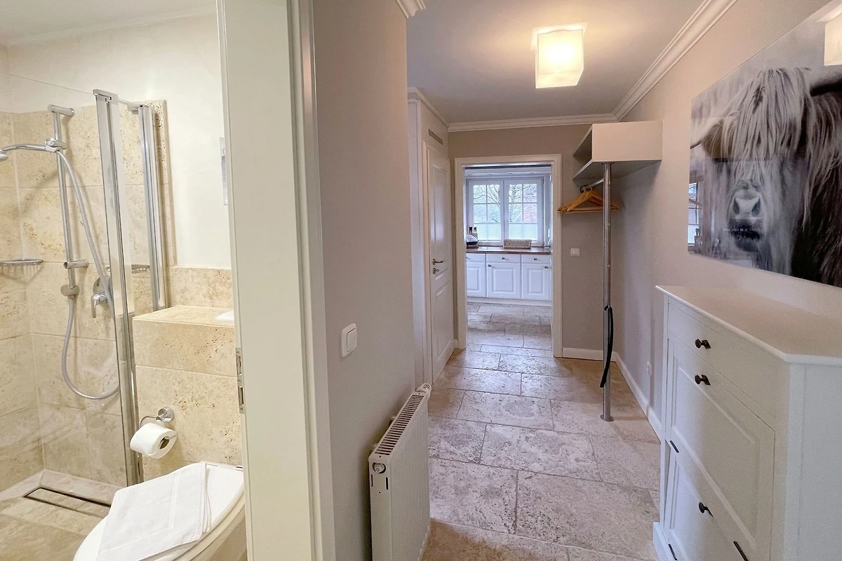 Das exklusive Ferienhaus Ada hat im Frühjahr 2023 ein "fresh up" bekommen und befindet sich bester Strandlage im Süden Westerlands am Wäldchen. Natursteinböden, Holzparkett, eine moderne Landhausküche gehören hier zum Standard. Das Haus verfügt über einen grossen Wohn-Essbereich mit offener Küche und Kaminofen, grosses Smart-TV, Blue-Ray-Player, Flur, 1x Duschbad mit WC, 2 Schlafzimmer mit Doppelbetten, Einbauschränken und jeweils mit zusätzlichem Smart-TV, Wellnesszimmer mit Sauna, Wannenbad mit WC und Waschmaschine-Trockner-Kombi, Zimmersafe, Ein Schlafzimmer mit 2 Einzelbetten.