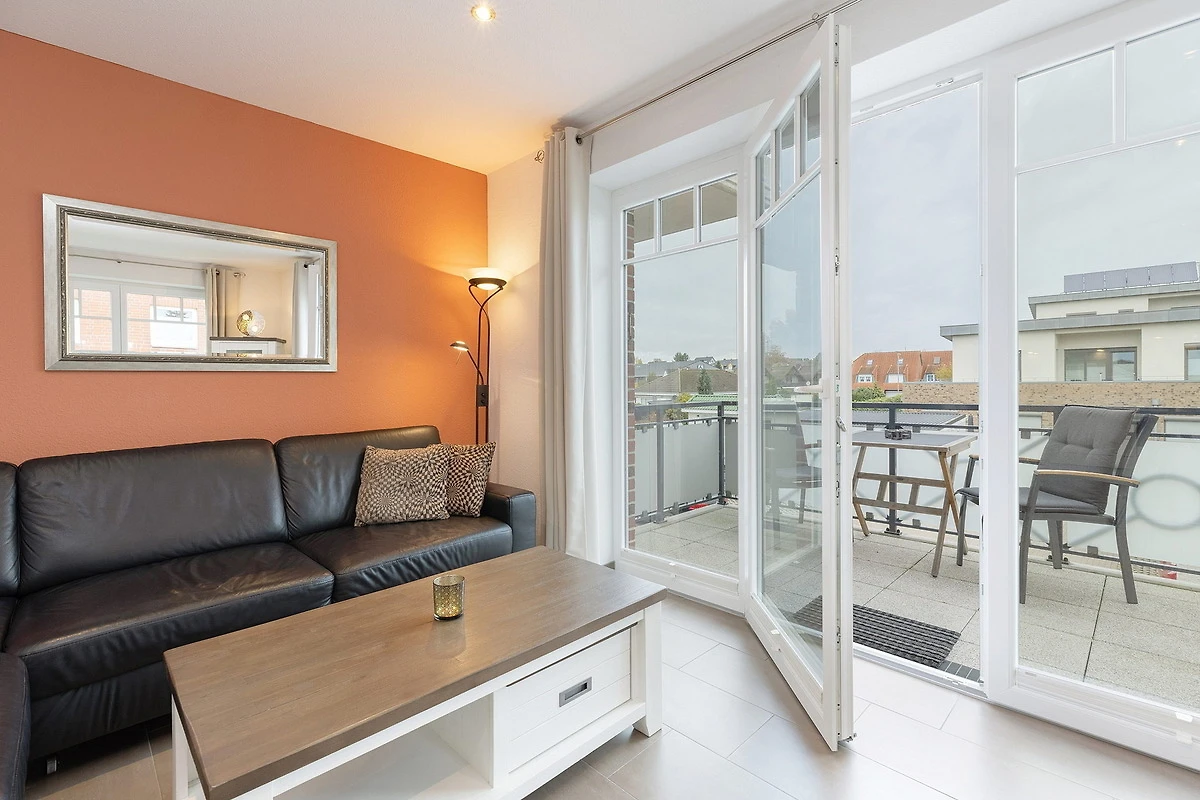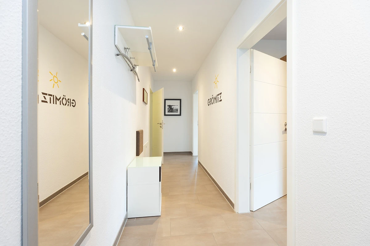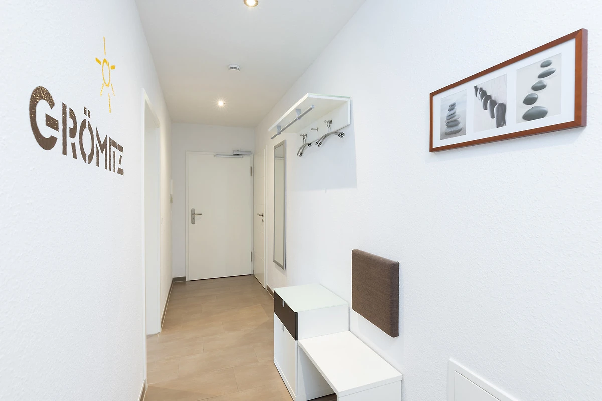 Das moderne Wohnhaus befindet sich in zentraler Lage von Grömitz nur wenige Gehminuten vom Strand entfernt. Alle Wohnungen sind barrierefrei durch einen Aufzug erreichbar. Die Parkplätze befinden sich hinter dem Gebäude.