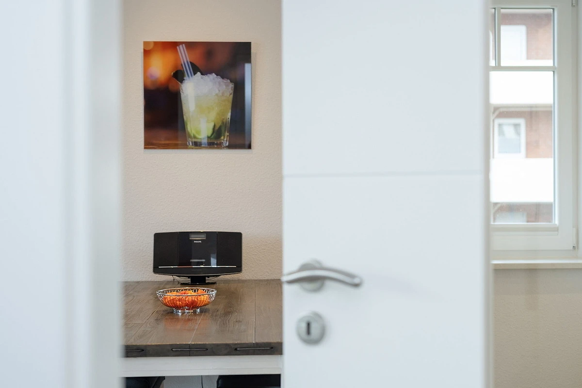 PKW-Stellplatz hinter dem Haus, Balkon in nördliche Richtung, zur Wohnung gehörige Waschmaschine im Keller, kostenloses W-LAN.
