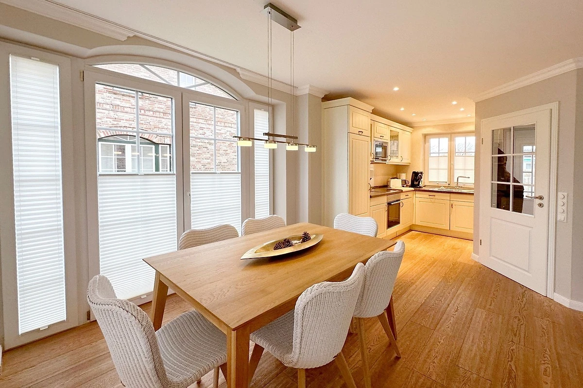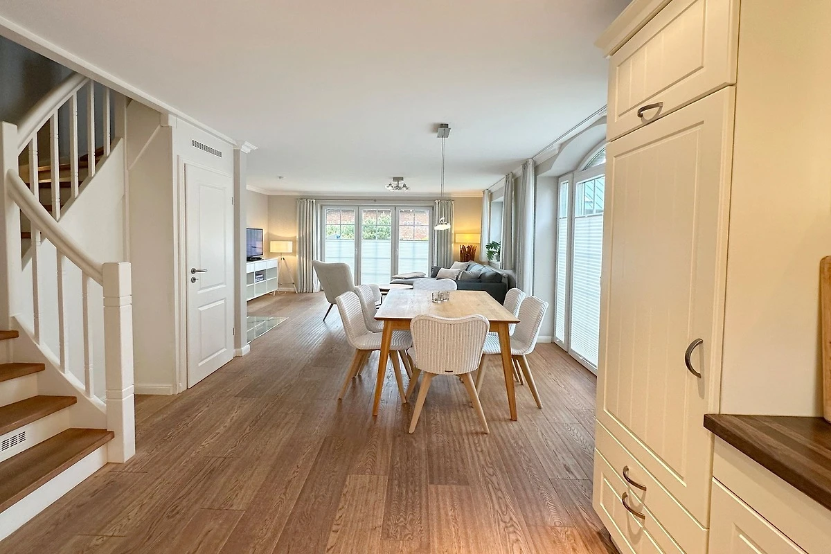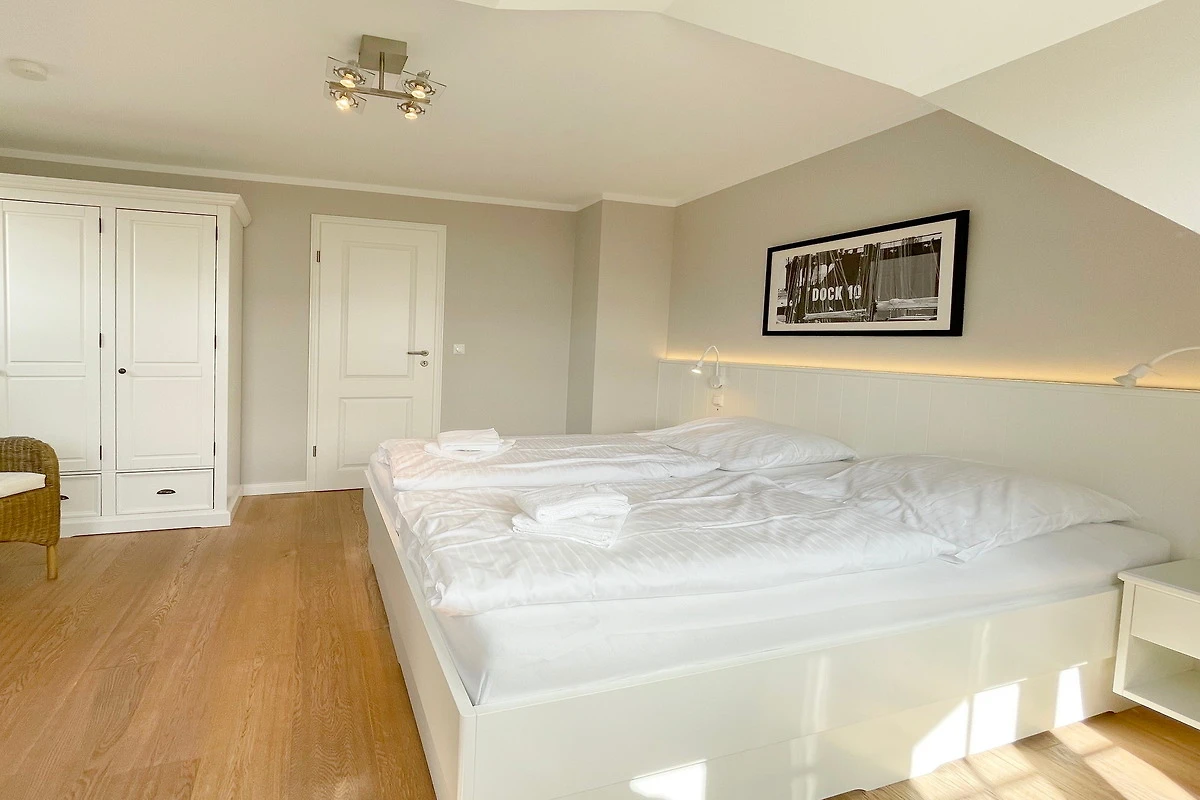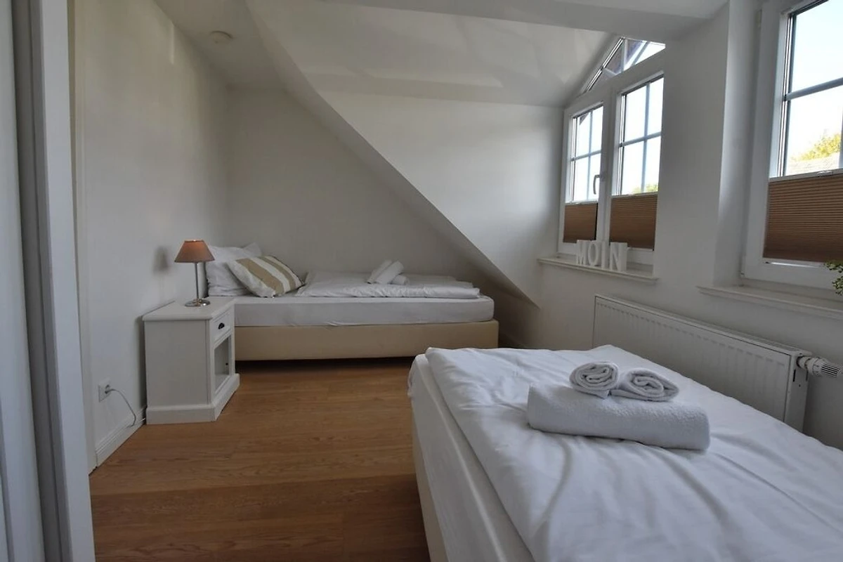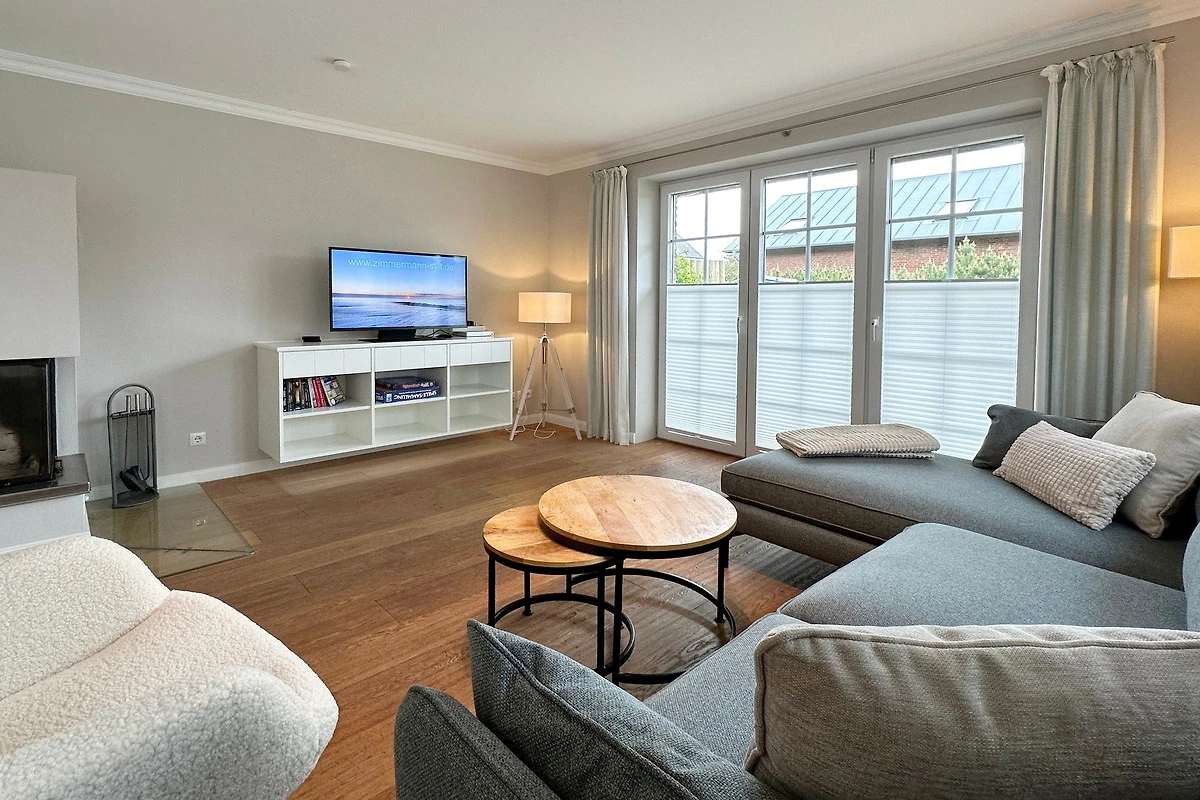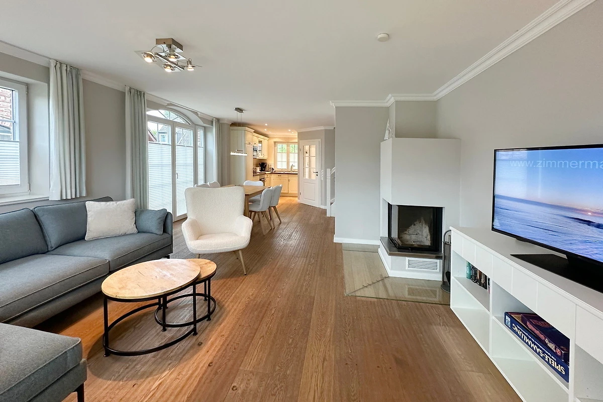 Das hier angebotene Ferienhaus[nbsp] verfügt über eine Terrasse sowie einen Garten, die beide in südlicher Ausrichtung liegen. Das Erdgeschoss des Hauses bietet ein Wohnzimmer mit gemütlicher Sitzgruppe und einem Kamin, eine Essecke, einen Fernseher sowie eine offene und gut ausgestattete Küche. Ausserdem ist hier ein Duschbad vorhanden. Im Obergeschoss befinden sich ein grosses Schlafzimmer mit einem Doppelbett und einem zweiten Fernseher sowie ein weiteres Schlafzimmer mit zwei getrennten Betten. Zusätzlich gibt es hier ein Wannenbad mit Duschmöglichkeit. Im Spitzboden des Hauses befindet sich ein weiteres Zimmer. Der Mindestaufenthalt während der Sommerferien beträgt 14 Übernachtungen, bei weniger Übernachtungen ist eine Anfrage möglich. An Sonn- und Feiertagen ist keine Abreisemöglichkeit gegeben. Gerne können wir Sie telefonisch unter der Nummer 04651 32973 beraten.