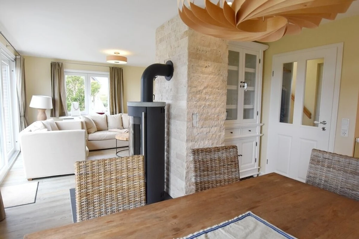 Einzelhaus in Randlage bei den Tinnumer Wiesen. "Klein aber fein" beschreibt dieses moderne und zeitgemäss ausgestattete Ferienhaus für 4 Personen. Im EG befindet sich das helle freundliche Wohnzimmer mit Kaminofen, Flatscreen-TV übergehend zum Essbereich und die moderne Landhausküche. Von hier haben Sie Zugang zur Süd-Terrasse und zum Garten.