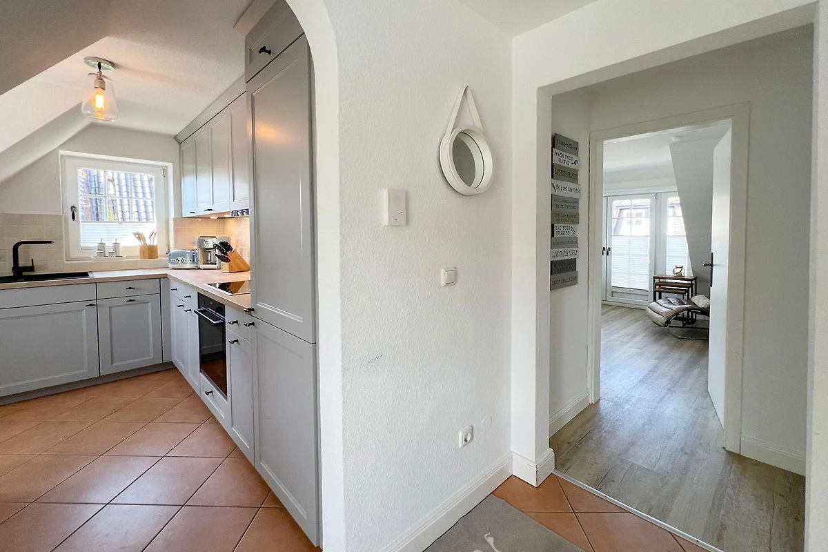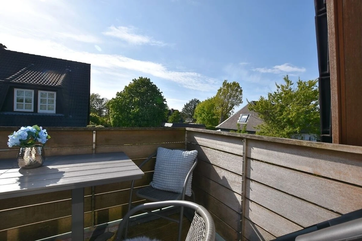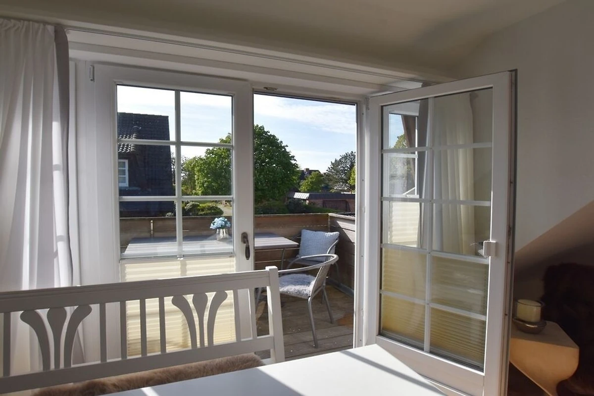 Die 4-Zimmer-Ferienwohnung mit West-Balkon befindet sich im Obergeschoss und Spitzboden des Hauses. Neben dem Elternschlafzimmer befinden sich 2 weitere kleine Schlafzimmer im SB für insgesamt 4 ( eventuell 5 ) Personen. Es gibt ein Wannenbad ( mit Duschmöglichkeit ) und ein Gäste-WC.
