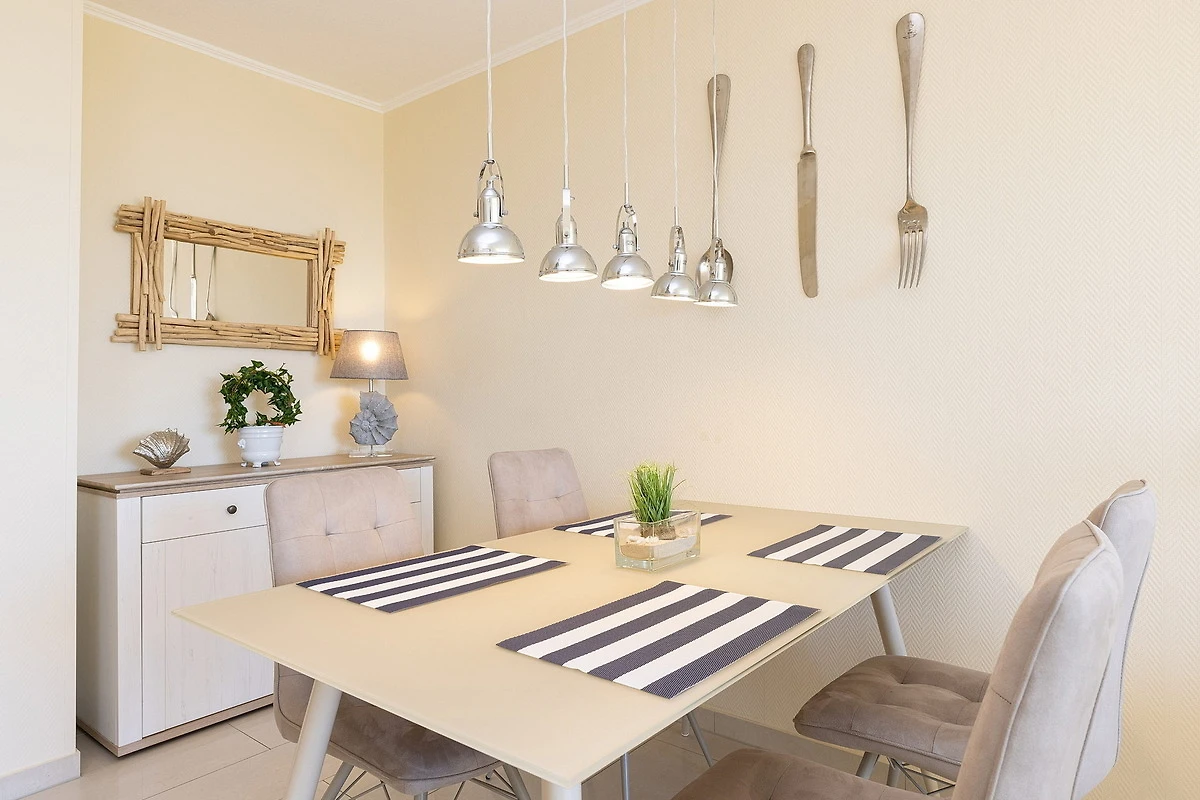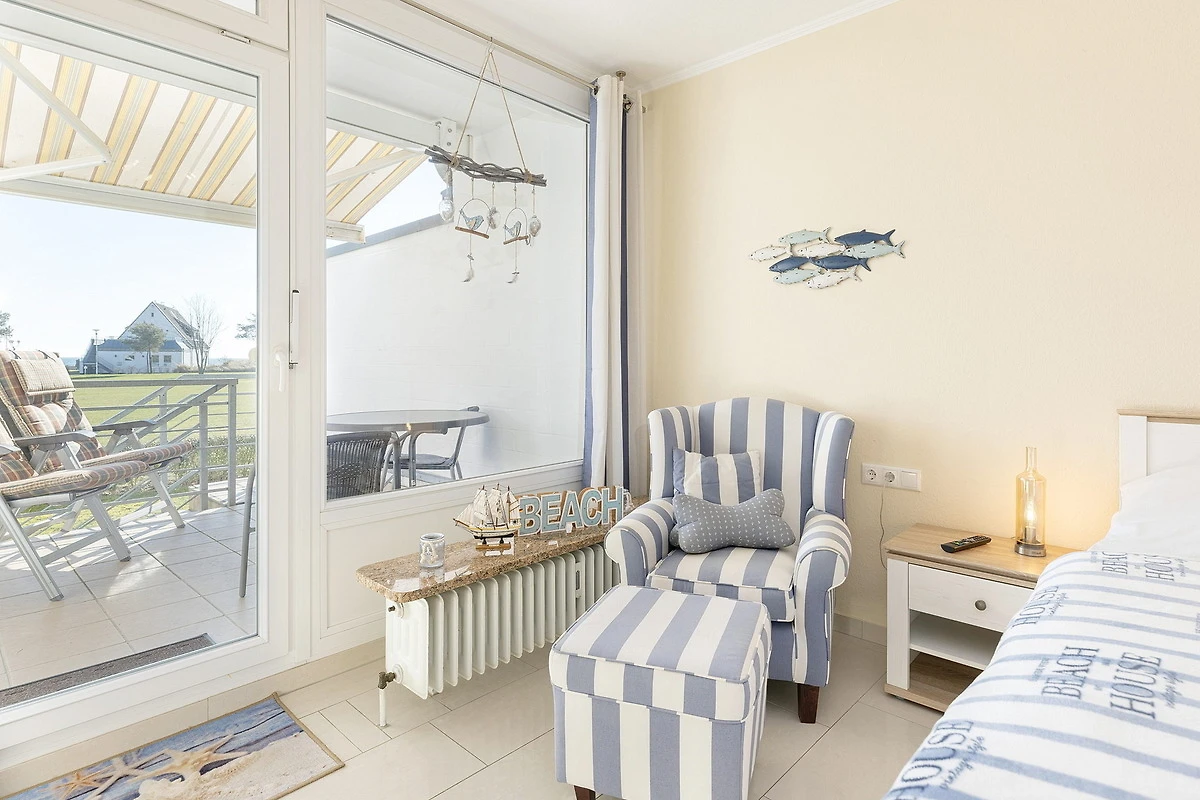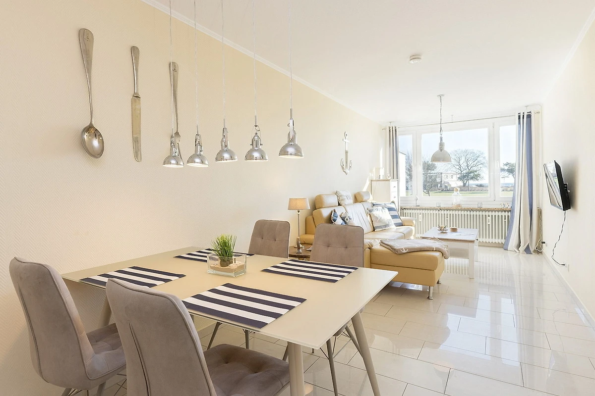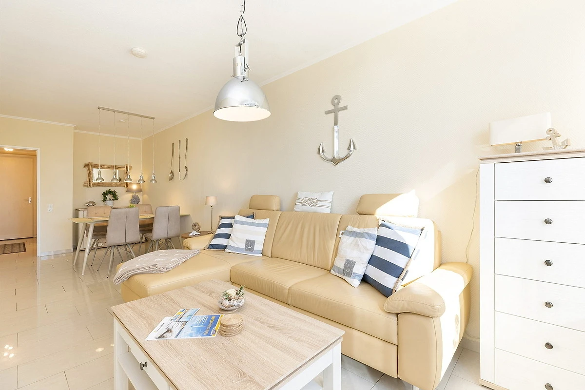 Sehr gepflegte Ferienanlage mit grosszügiger Rasenfläche in 1. Reihe, nur ca. 100m bis zur Promenade und vom Sandstrand (eigener Strandzugang) entfernt. Die Seebrücke erreichen Sie in ca. 2 Gehminuten, bis zum Yachthafen gehen Sie ca. 5 min. Im Haus befindet sich ein Fahrstuhl, der ebenerdig erreicht werden kann. Waschmaschine und Trockner stehen zur Verfügung (gegen Gebühr)