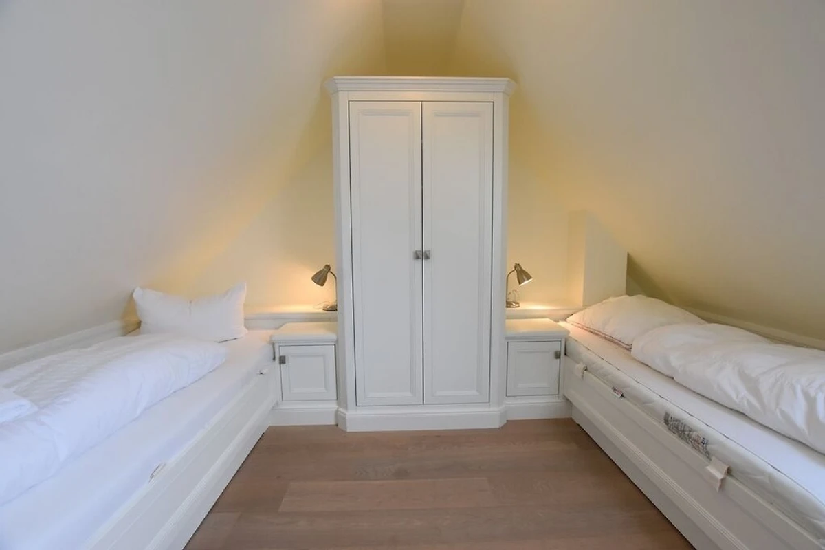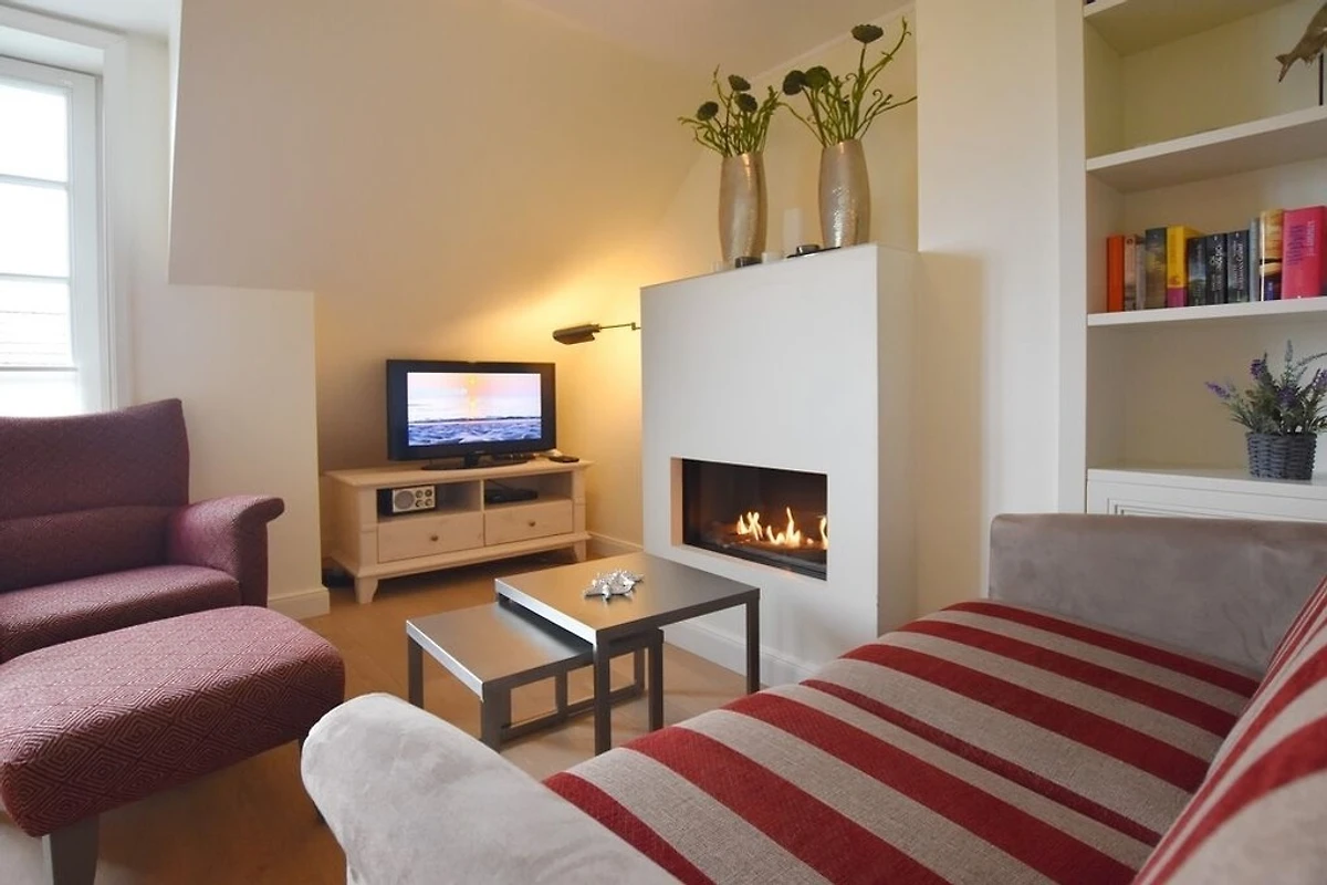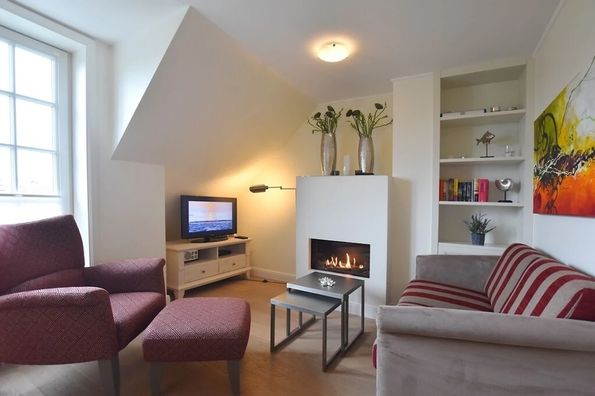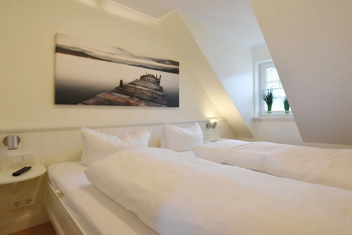 Die angebotene Ferienwohnung befindet sich im Norden von Westerland und besteht aus drei Zimmern. Im Obergeschoss steht Ihnen ein Wohnzimmer mit offener Küche, Gas-Kaminofen, Westloggia, ein separates Schlafzimmer und ein Duschbad/WC zur Verfügung. Zusätzlich gibt es im Spitzboden einen weiteren Raum mit zwei Einzelbetten. Zum Mietobjekt gehört ausserdem ein gemeinschaftlicher Wellnessbereich mit Sauna und Dampfbad.