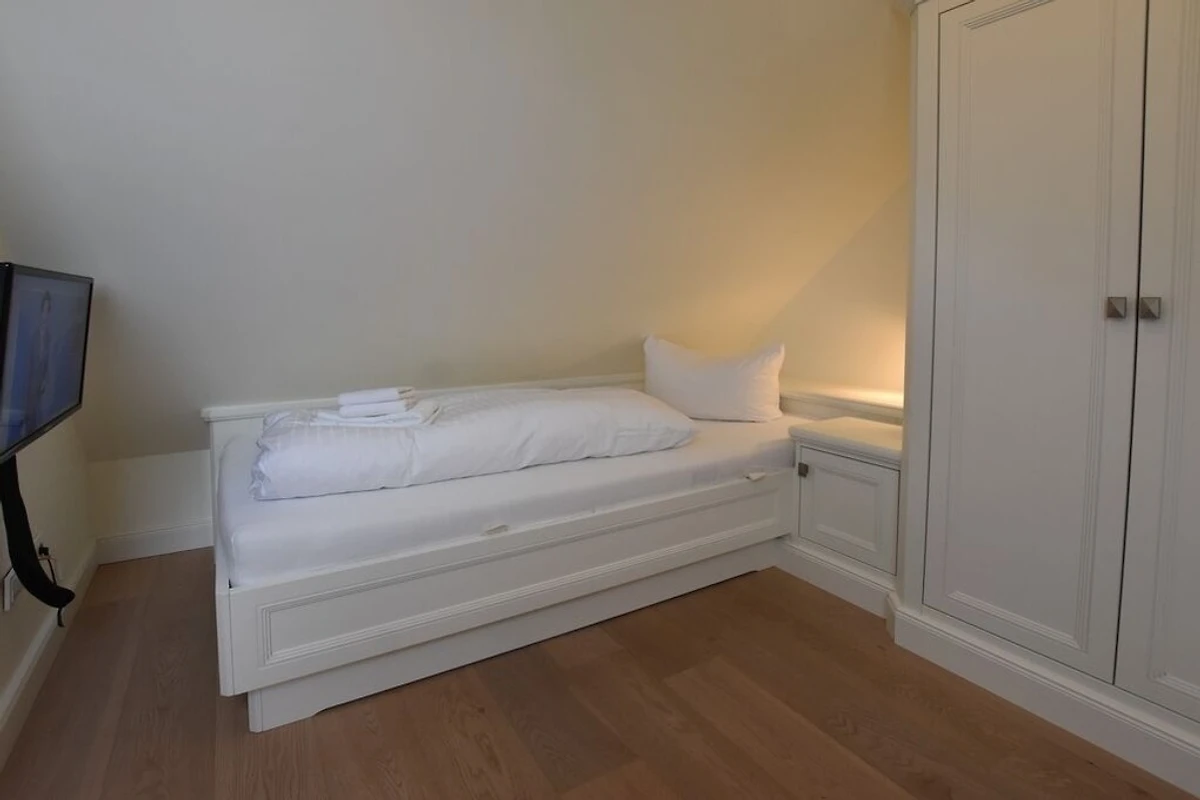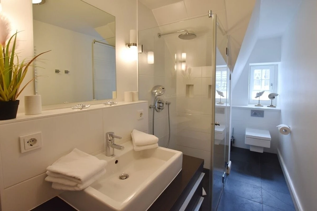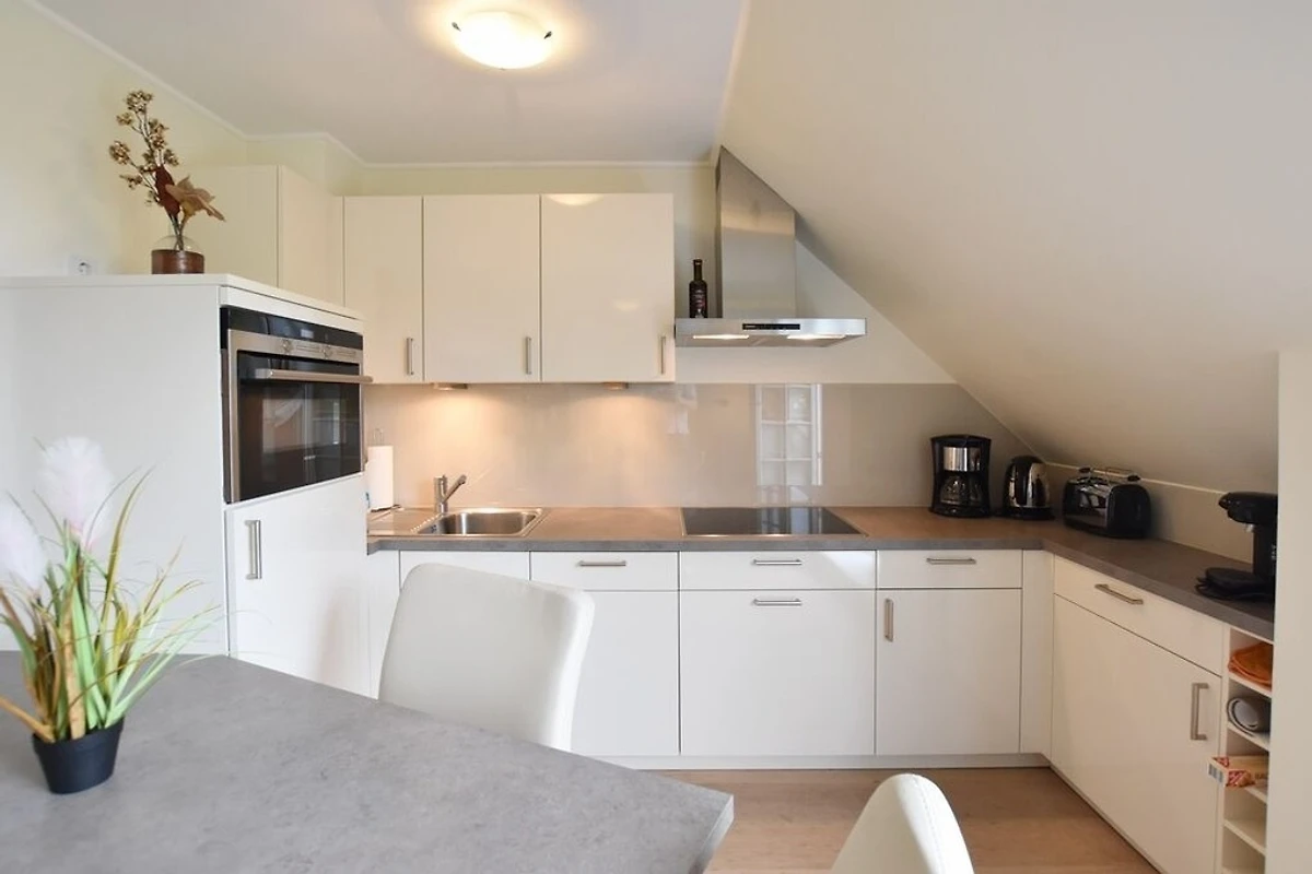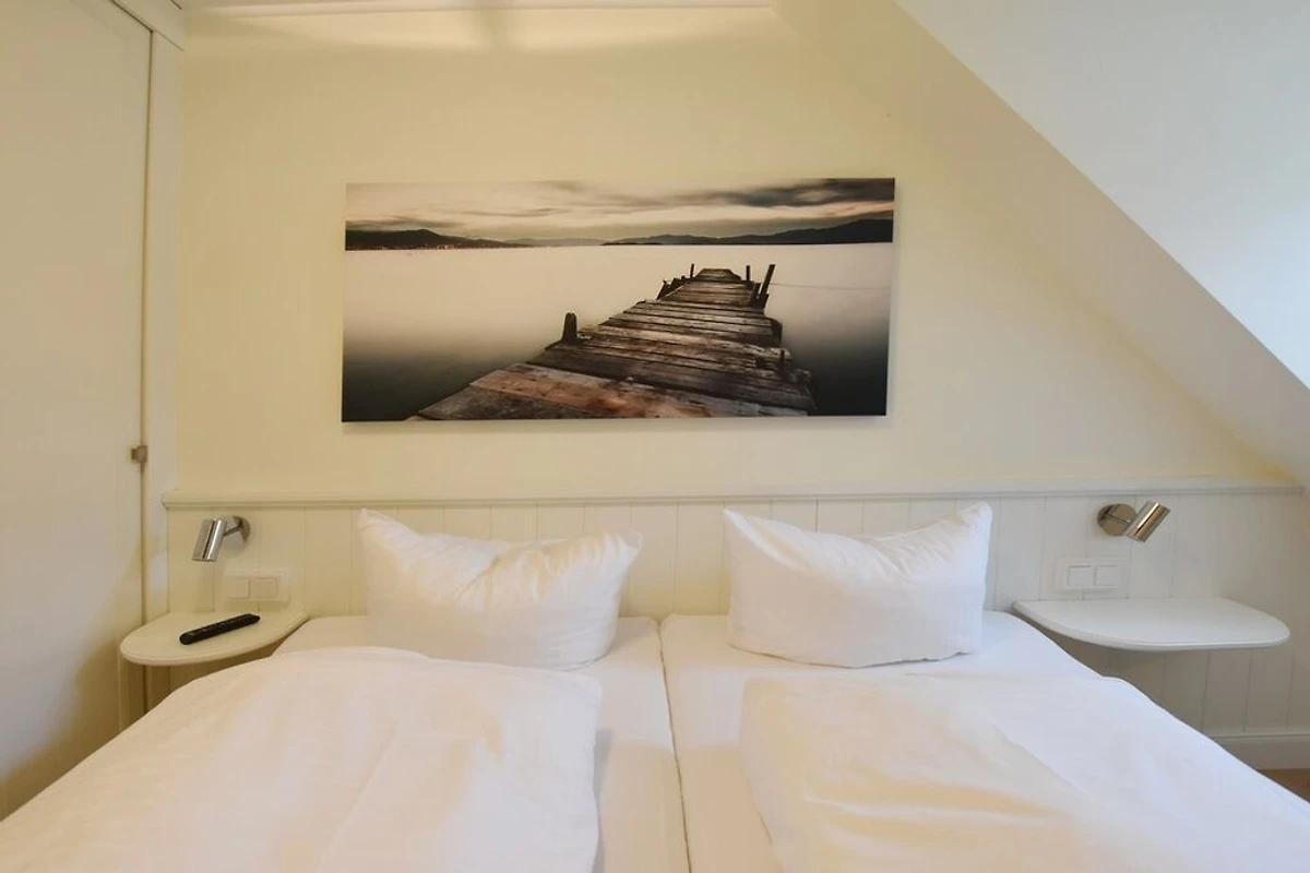 Die angebotene Ferienwohnung befindet sich im Norden von Westerland und besteht aus drei Zimmern. Im Obergeschoss steht Ihnen ein Wohnzimmer mit offener Küche, Gas-Kaminofen, Westloggia, ein separates Schlafzimmer und ein Duschbad/WC zur Verfügung. Zusätzlich gibt es im Spitzboden einen weiteren Raum mit zwei Einzelbetten. Zum Mietobjekt gehört ausserdem ein gemeinschaftlicher Wellnessbereich mit Sauna und Dampfbad.