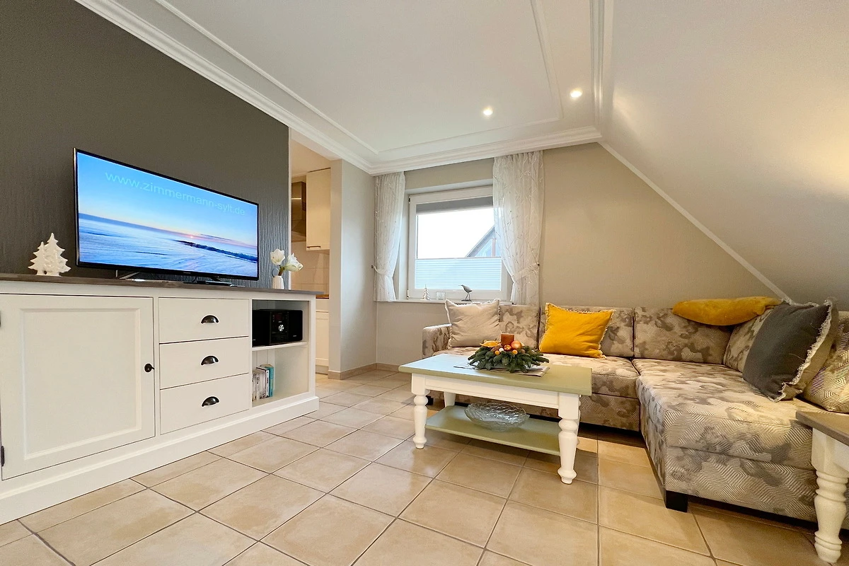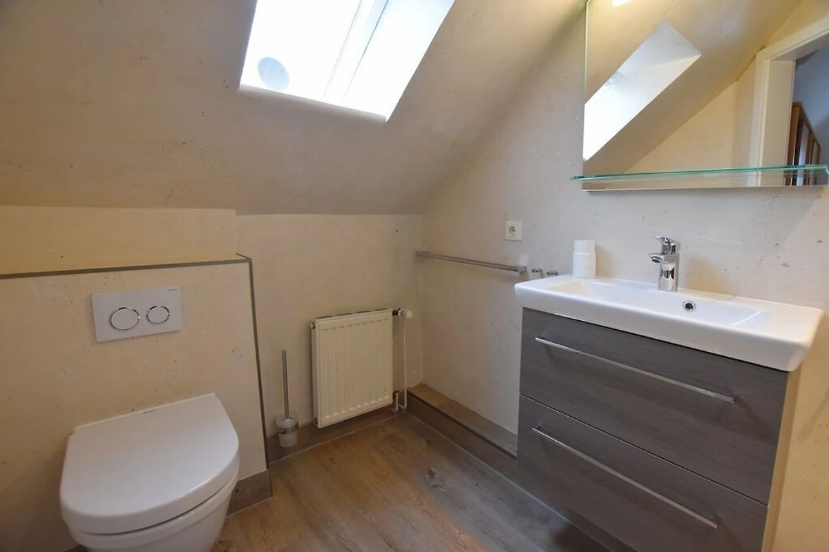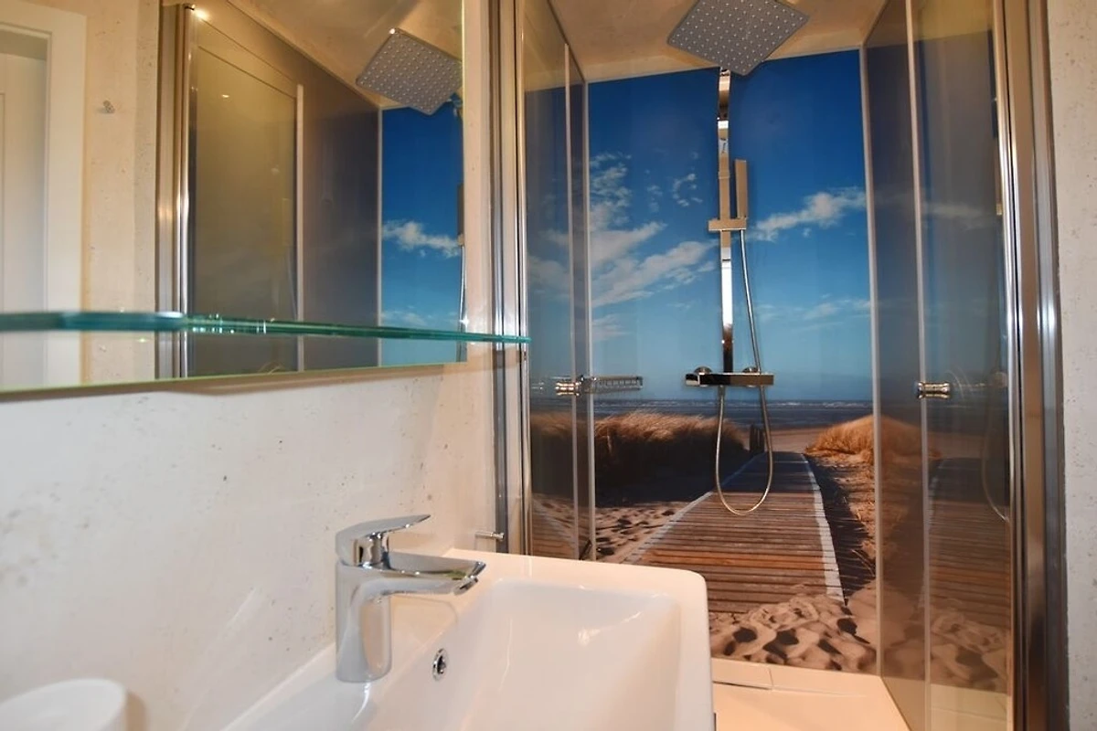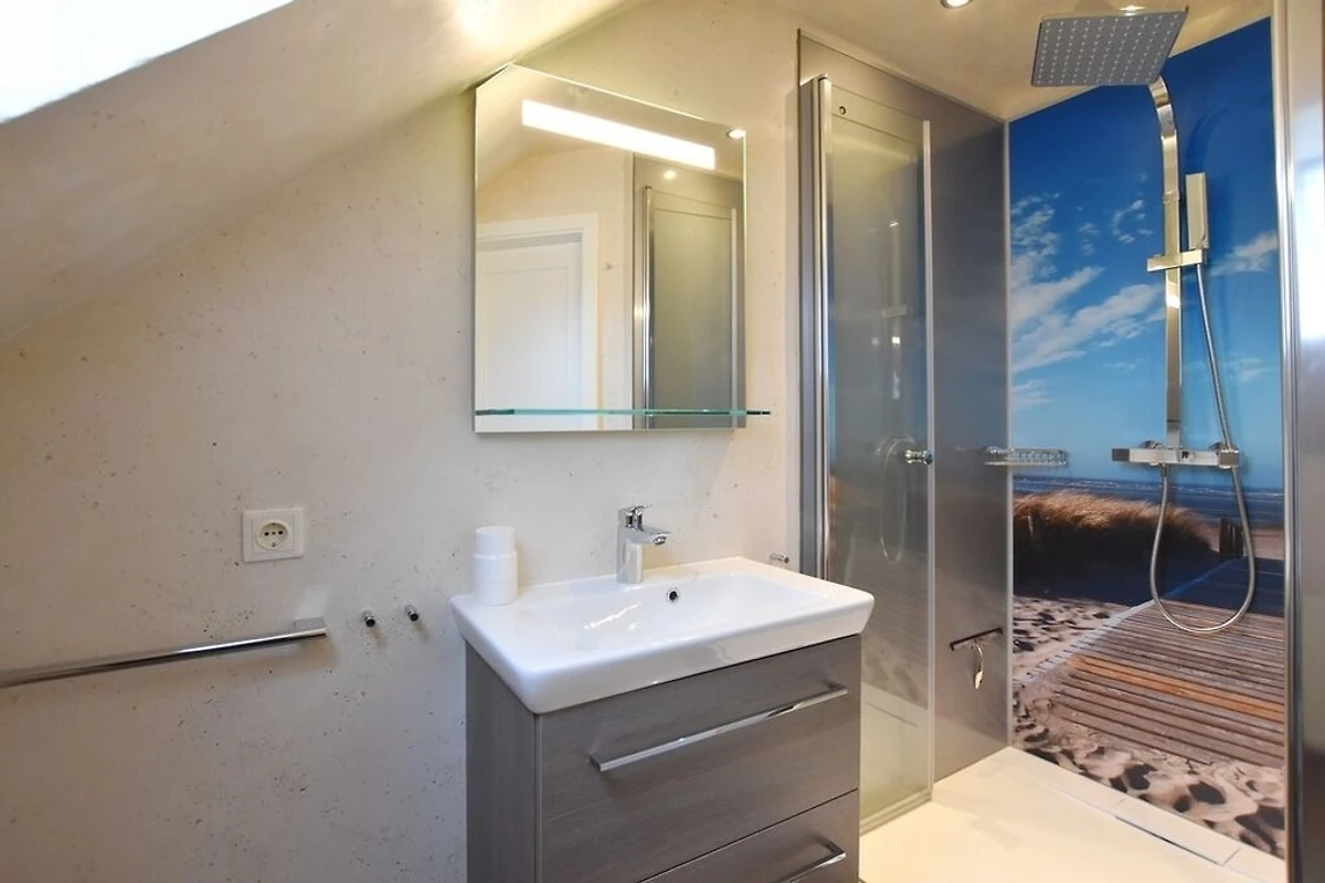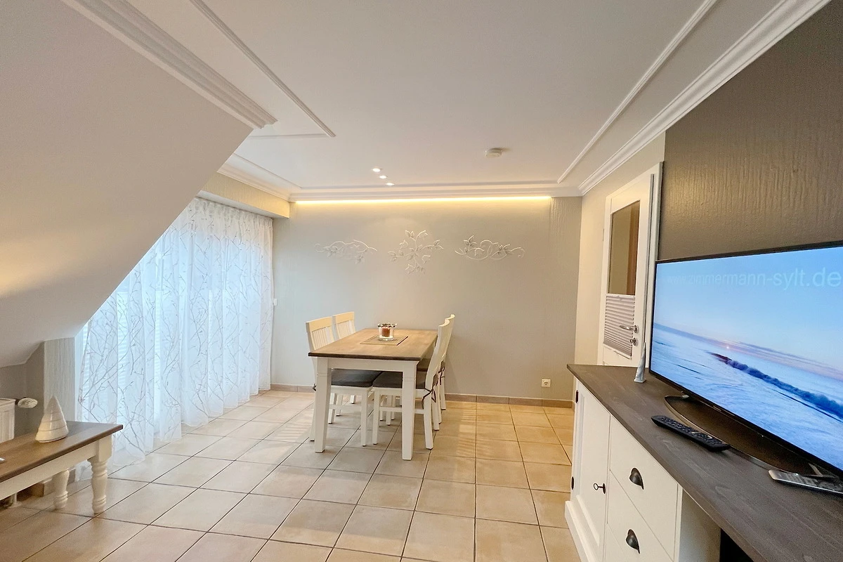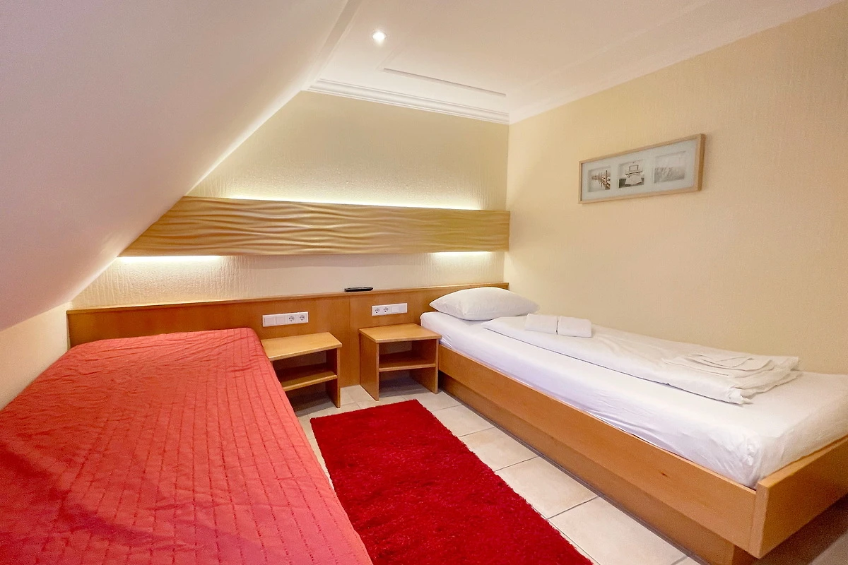 3 Zimmerwohnung mit Balkon (OG und DG), Wohnzimmer mit gemütlicher Sitzgruppe und Essecke, offene Küche mit Cerankochfeld, und Geschirrspüler, Flatscreen-TV, 2 Schlafzimmer für je 2 Personen mit jeweils eigenem Badezimmer mit Dusche WC und Waschbecken, im UG befinden sich für die Gäste des Hauses Waschmaschine und Trockner gegen Gebühr. 1 PKW-Stellplatz. Gerne dürfen Sie hier ein gut erzogenes Haustier mitbringen. Dafür wird dann eine einmalige Haustiergebühr berechnet.